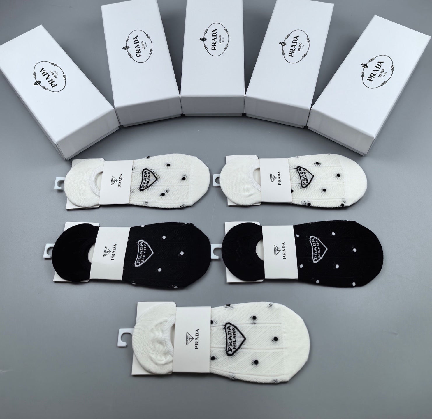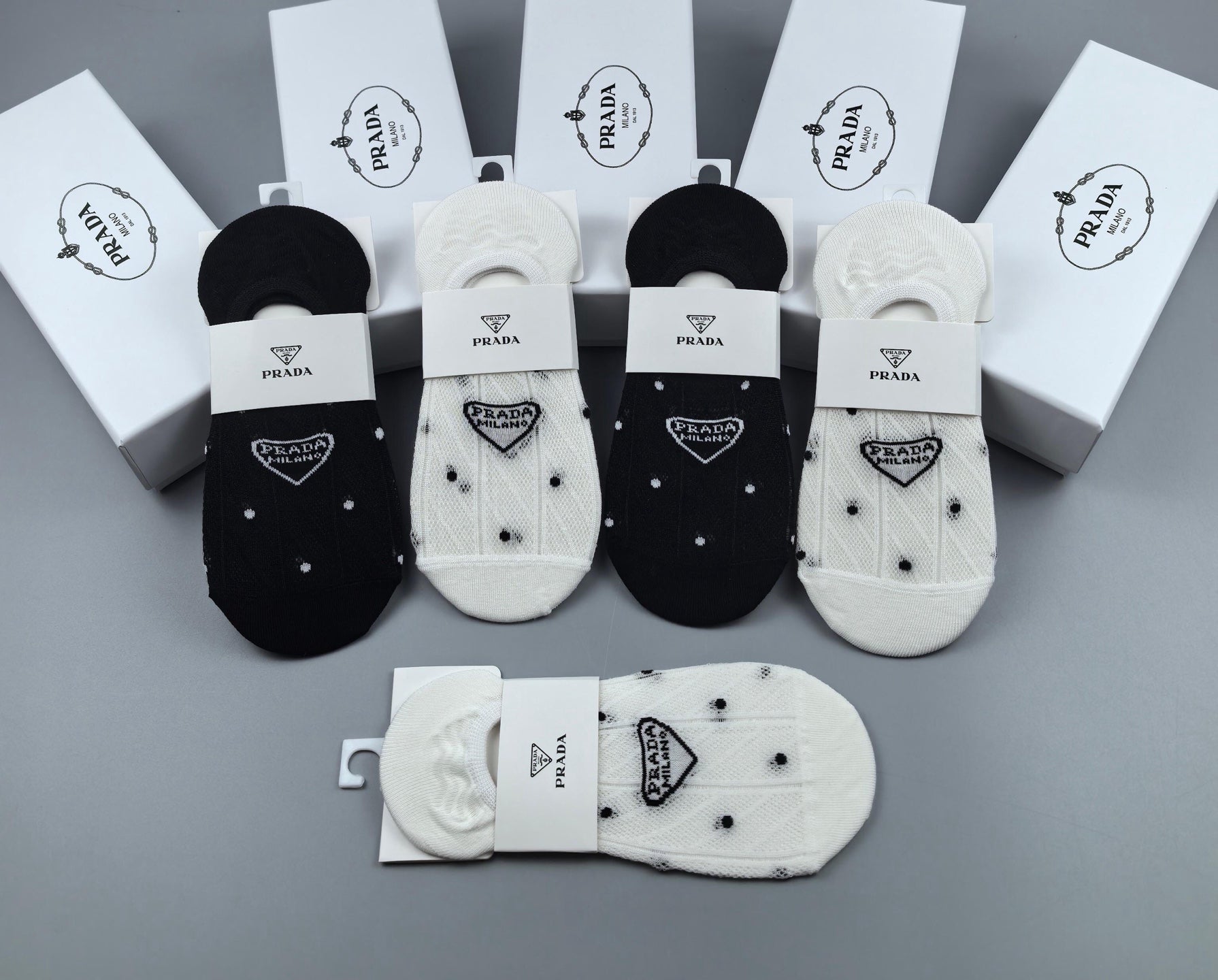 Prada Women's Invisible Cotton Socks - 5 Pairs with Jacquard Logo