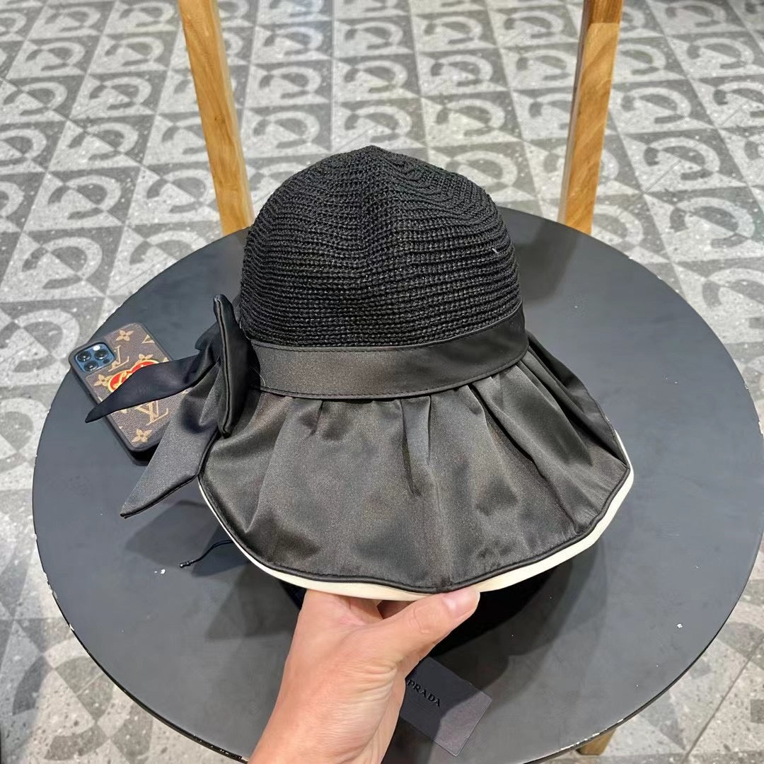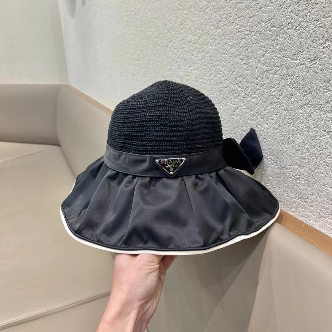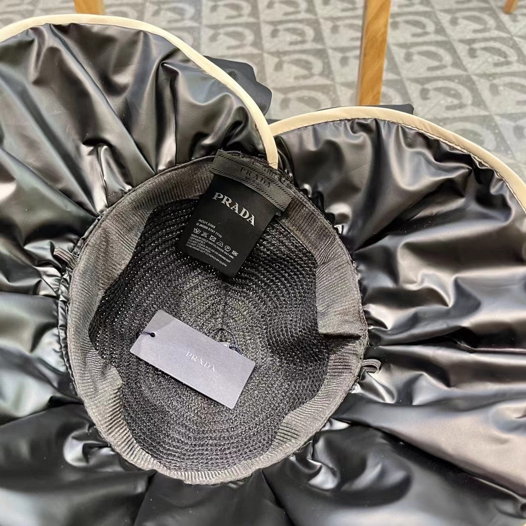 Elevate your summer style with the PRADA Women's Vinyl Sun Hat. Designed for travel and outdoor adventures, this chic hat offers exceptional UV protection while keeping you fashionable. Featuring a generous large brim and a stylish bow, it combines elegance with practicality, making it the perfect accessory for sunny days. Ideal for beach outings, picnics, and leisurely strolls, this fisherman hat is a must-have for your spring and summer wardrobe. Stay cool, protected, and on-trend with this luxurious addition to your collection.