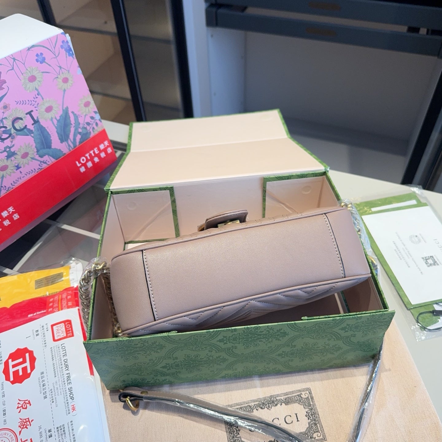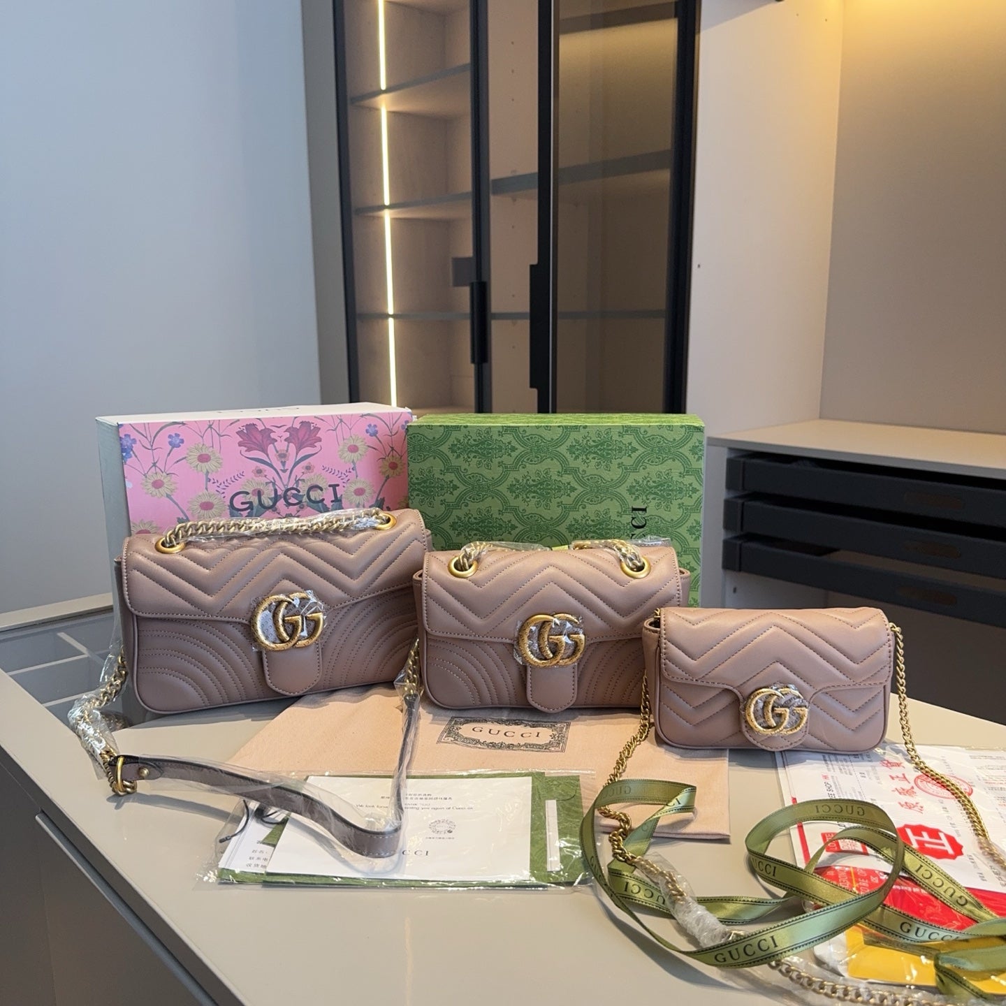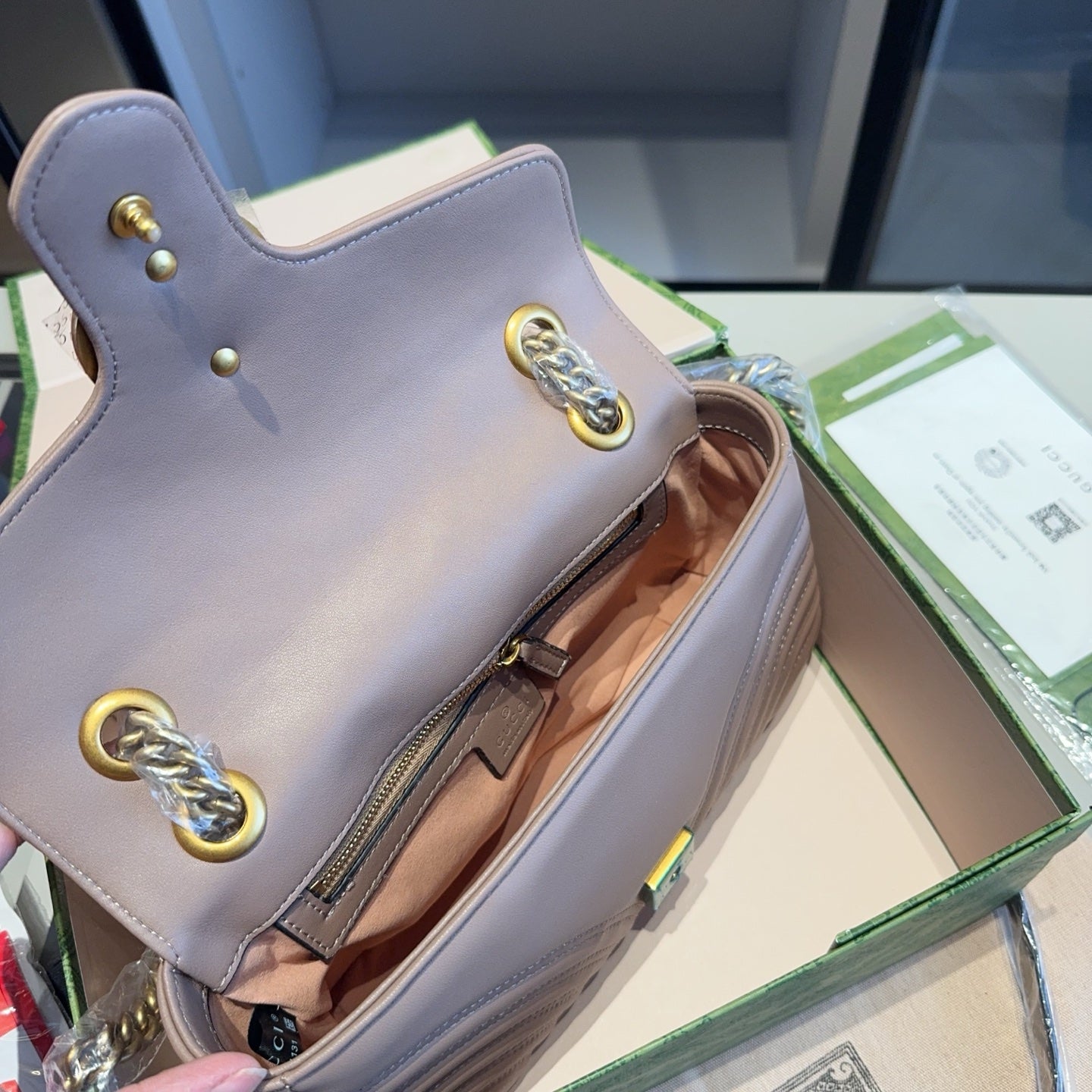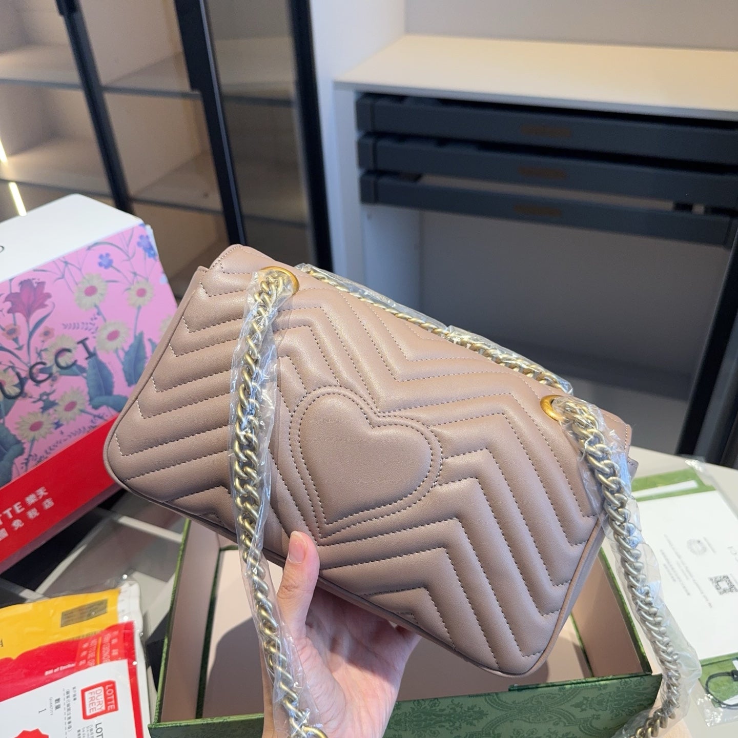 Introducing our Premium Cowhide Leather Marmont Wave Chain Bag in an elegant milk tea color. This beautiful bag is a top-tier replica of the sought-after Gucci Marmont design, favored by celebrities and fashion enthusiasts alike.