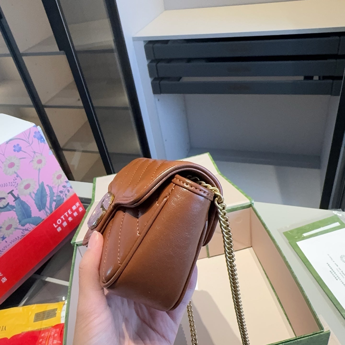 Introducing our Premium Cowhide Marmont Wave Chain Bag in a stunning caramel hue. Crafted from first-layer cow leather, this luxurious bag exemplifies elegance and sophistication. A favorite among celebrities, it features high-quality replica hardware and a classic logo that reflects timeless style.