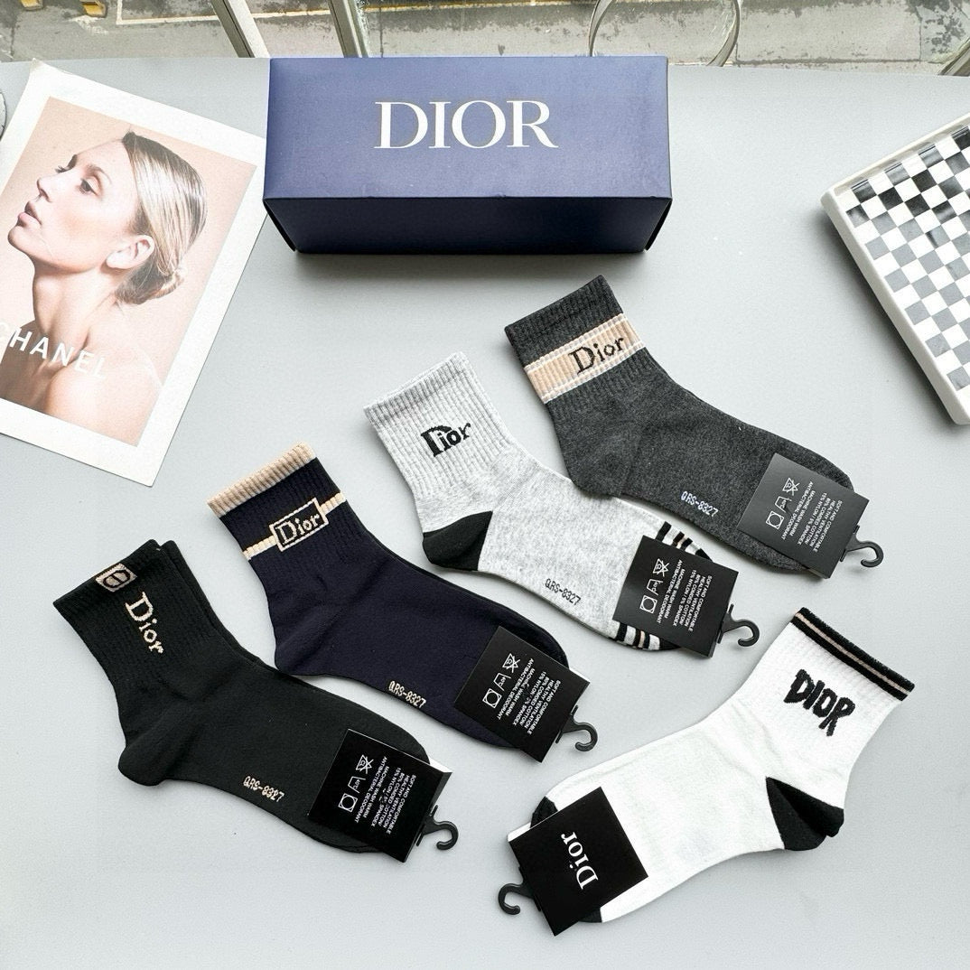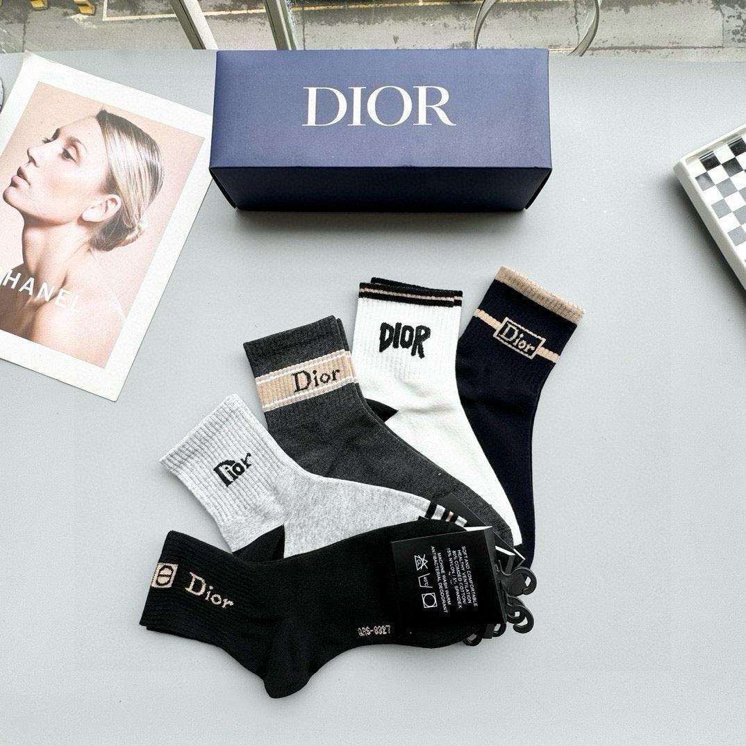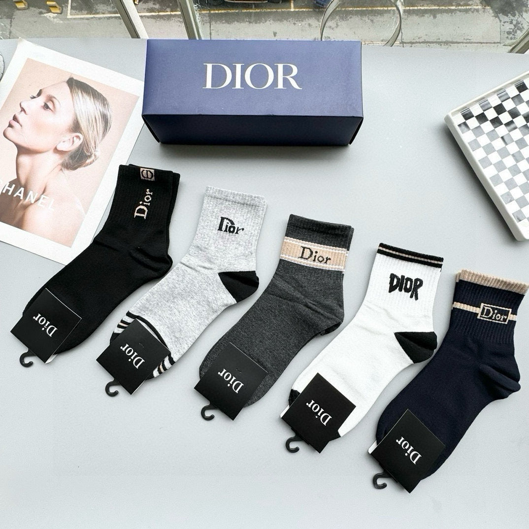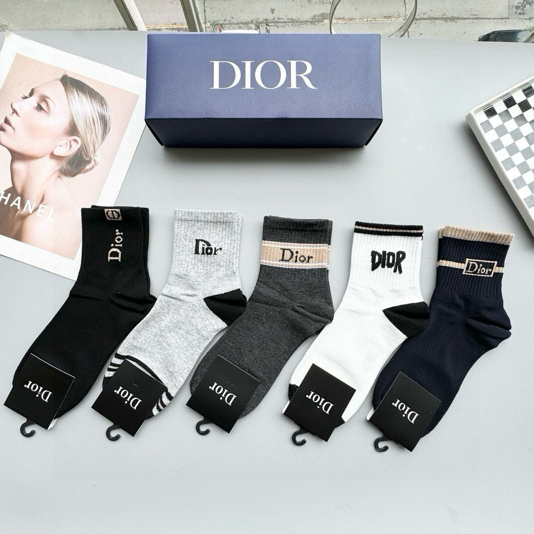 Premium Dior Mid-Calf Socks for Men and Women - 5 Pairs