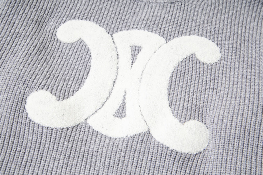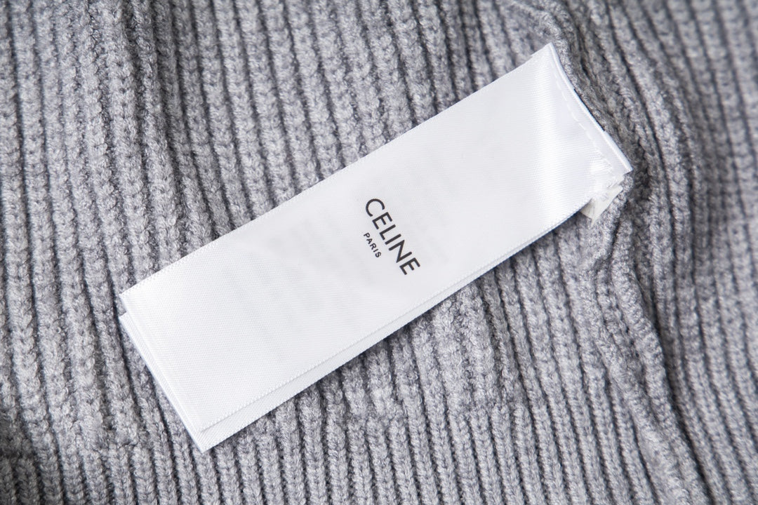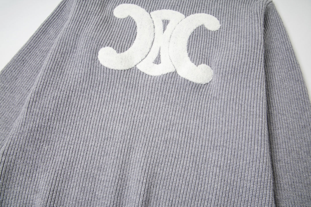 Elevate your wardrobe with the Premium Embroidered Celine Arc de Triomphe Towel Neck Sweater. This stylish top features a signature Arc de Triomphe logo, meticulously crafted using a unique towel embroidery technique for a luxurious finish.