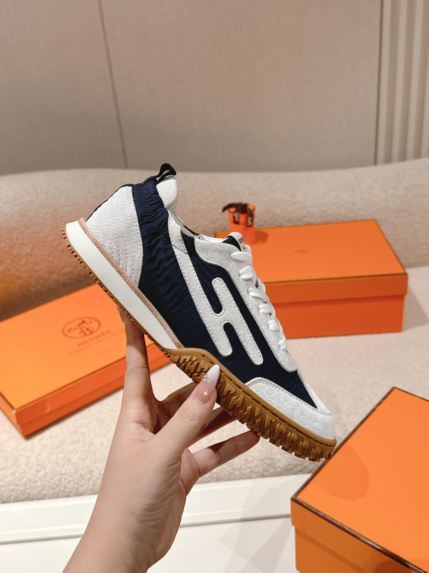 Premium Hermes Suede Casual Sneakers with Iconic Design