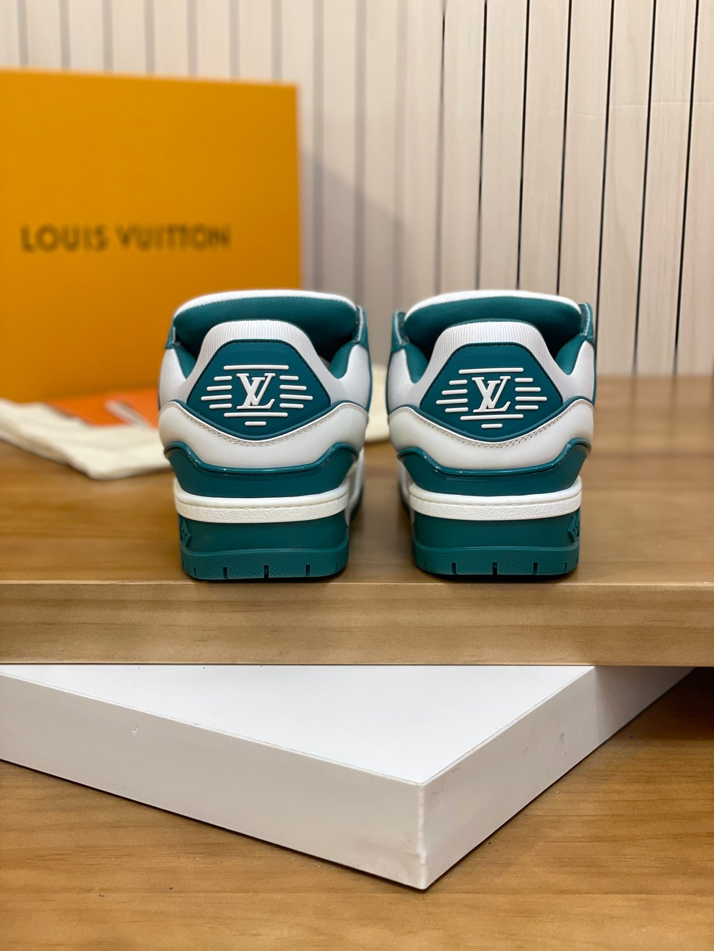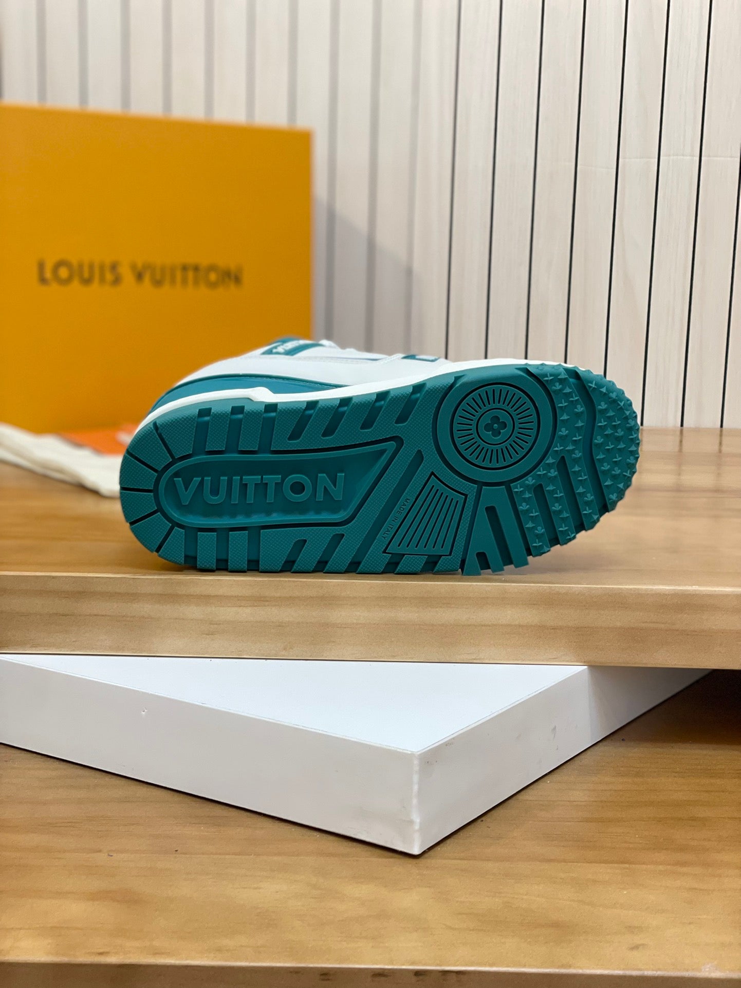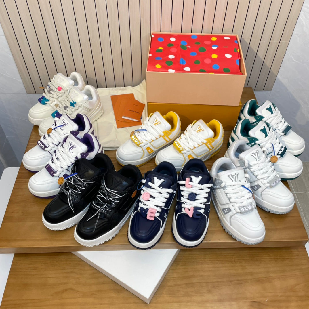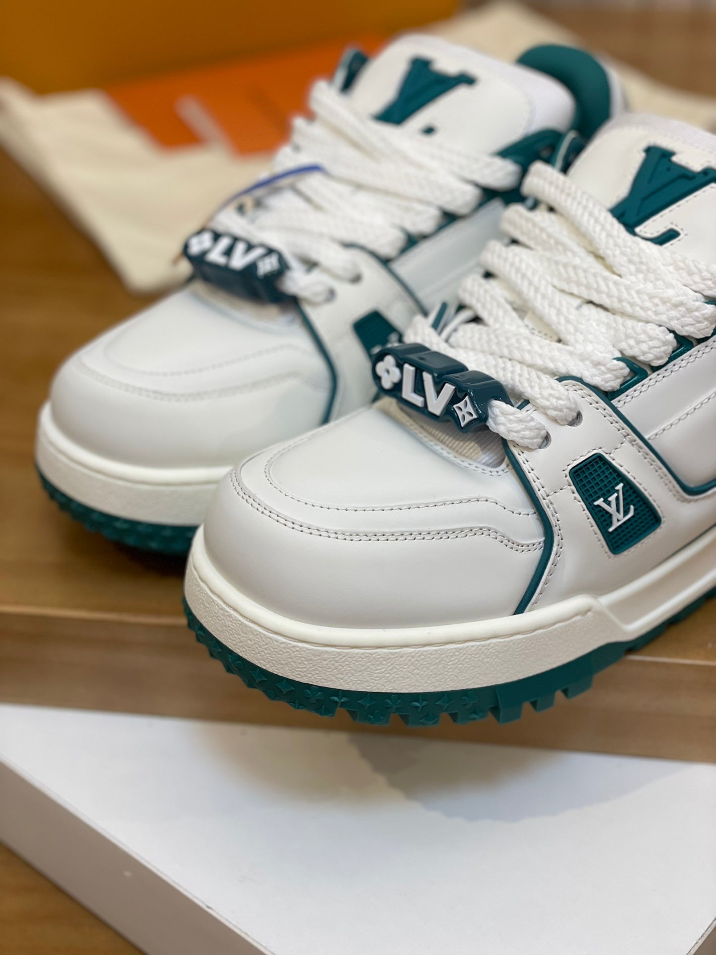 Featuring the latest upgraded version of the LV Trainer "Little Fatty," each pair boasts an exclusive mold with outstanding quality. The unique outsole is adorned with large star particles, setting them apart from thinner designs commonly available. Each jewelry-grade button, taking a month to perfect, is smooth and crafted with a crystal-clear texture for an elegant finish.