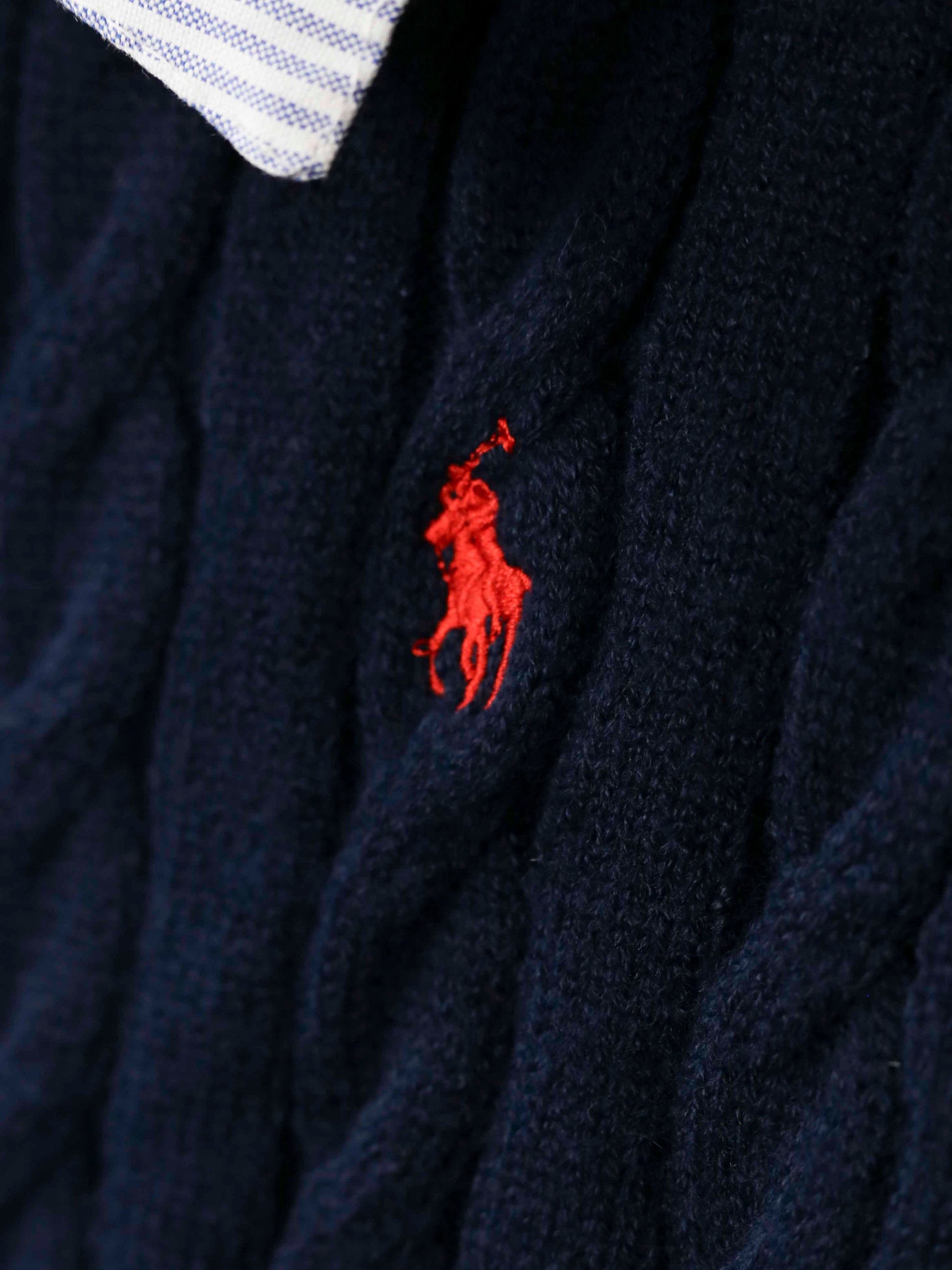 Ralph Lauren Pony Embroidered Twist Knit Sweater - Navy Blue