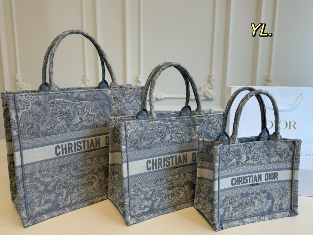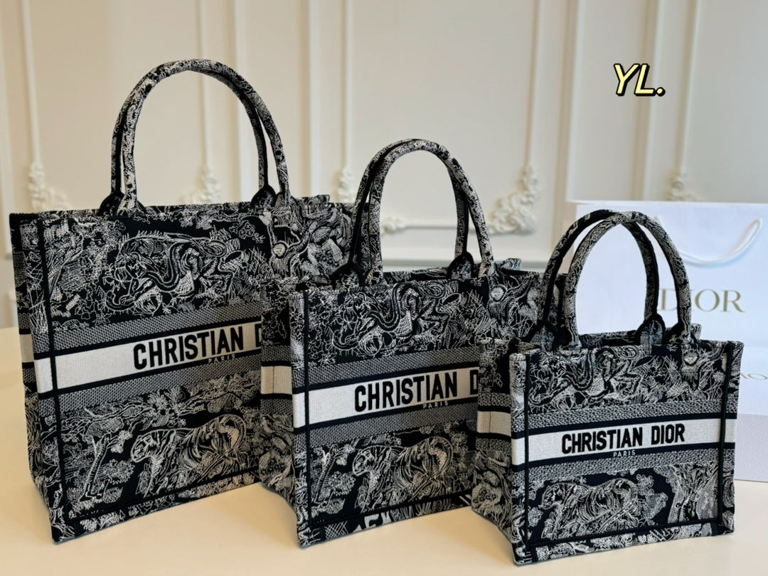 Introducing the Retro Dior Embroidered Canvas Tote Bag, available in three sizes: Large (42×34 cm), Medium (36×27 cm), and Small (26×21 cm). This chic tote features a classic floral embroidery design and iconic letters that evoke a timeless elegance. Its high-end retro aesthetic makes it a perfect accessory for any occasion - from business trips to daily commutes and even as a stylish mommy bag. Crafted for versatility and fashion, this tote bag is an essential addition to your wardrobe. Embrace sophistication with every outing!