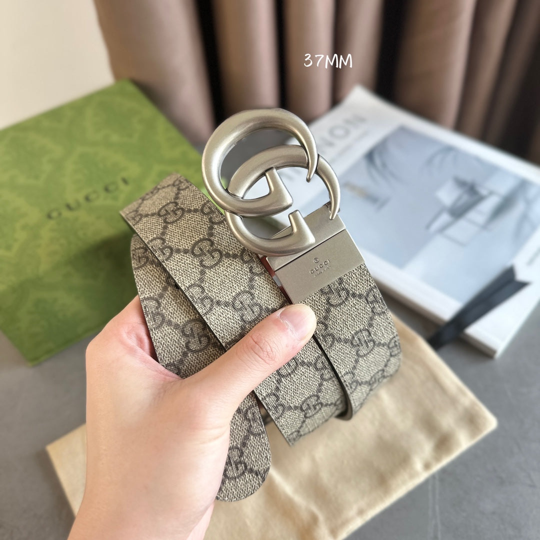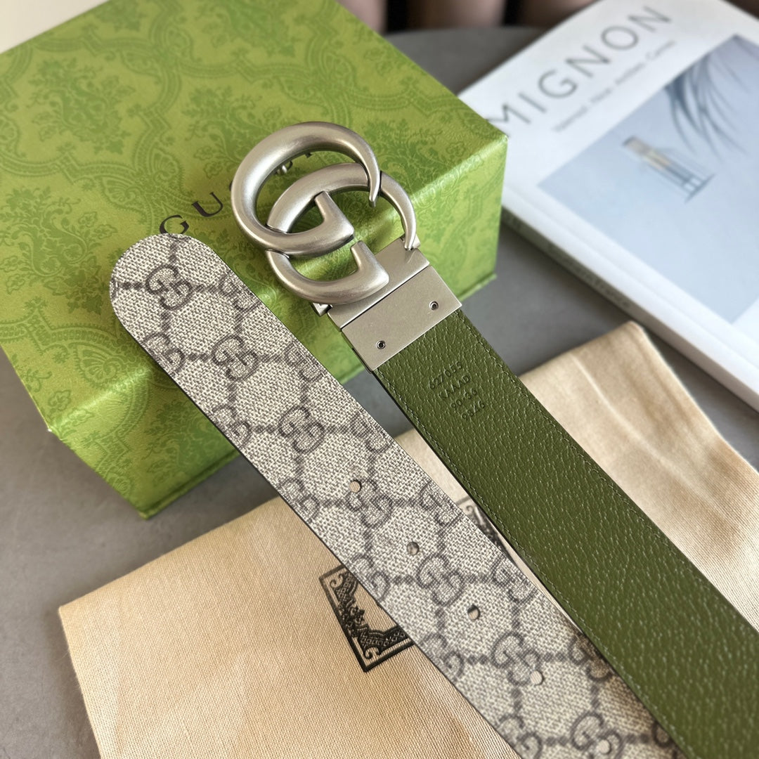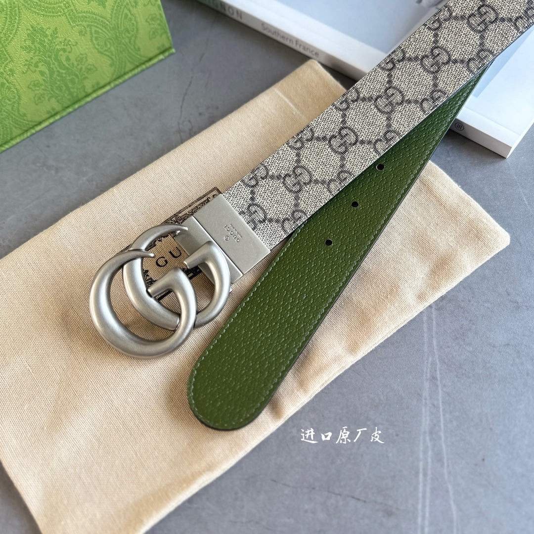 Discover the versatility of the latest gray canvas leather and gray pig grain leather belt by Gucci. Designed for dual functionality, this reversible belt features a stylish 3.8 cm width and a rotating Double G buckle, making it the perfect accessory for any outfit. Elevate your wardrobe with this chic and contemporary piece.