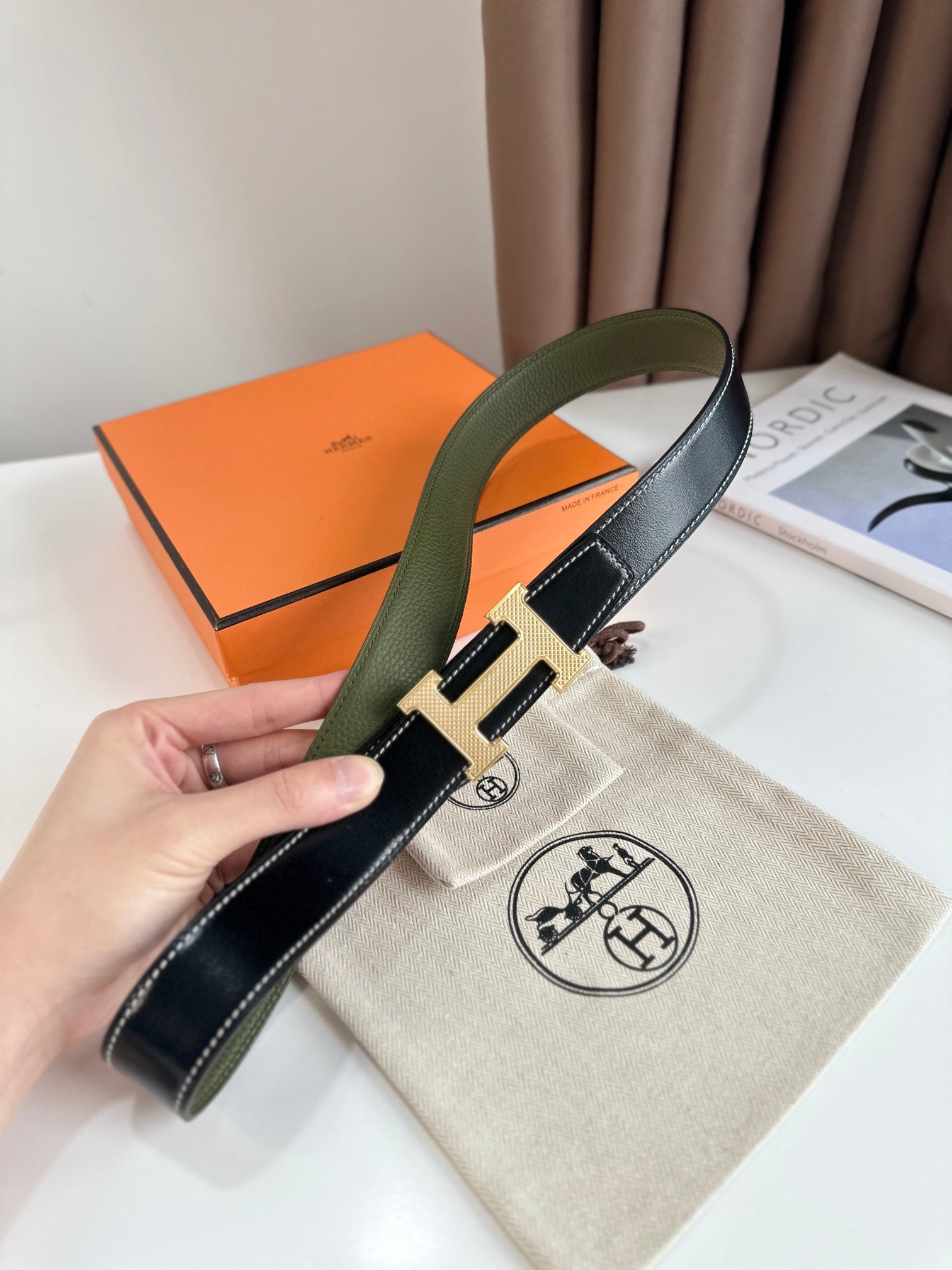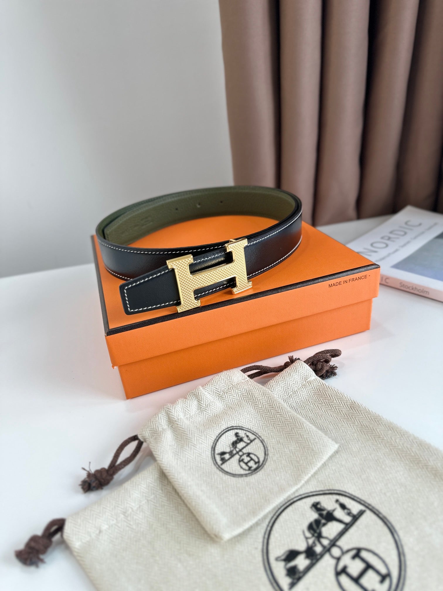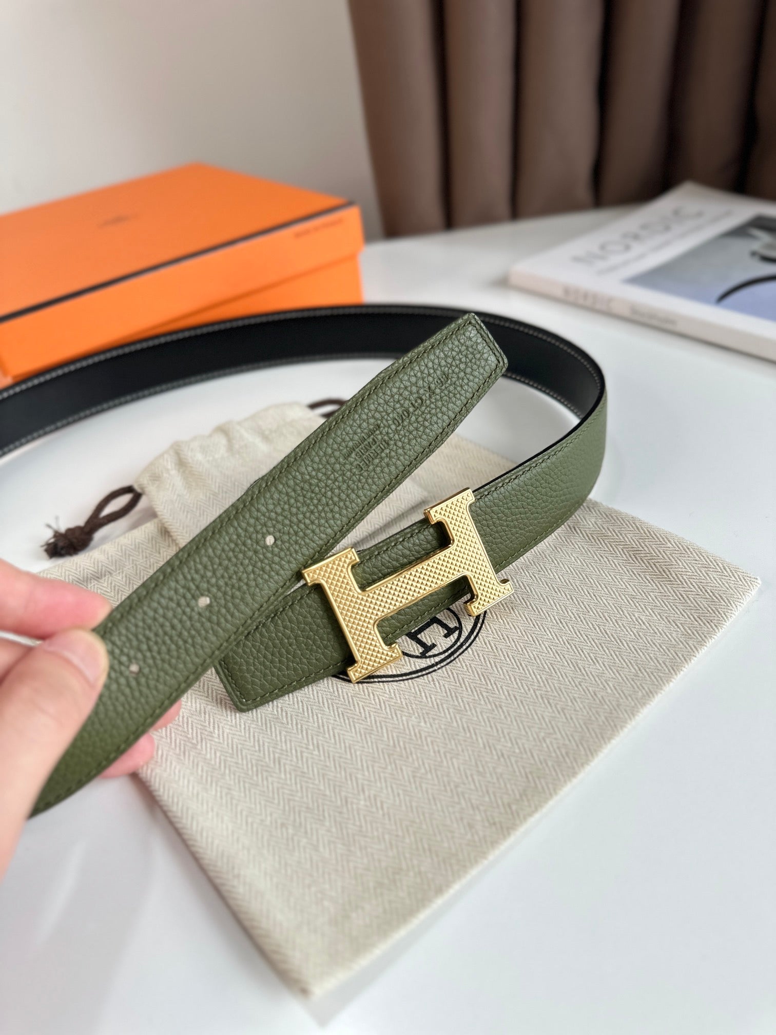 Elevate your style with our premium Reversible Leather Strap featuring a sophisticated H Buckle. This versatile accessory seamlessly transitions from casual to formal, providing two distinct looks in one. Crafted from high-quality leather, the strap promises durability, comfort, and a touch of elegance for any outfit. Perfect for everyday wear or special occasions, this belt is an essential addition to your wardrobe. Adjust easily for a personalized fit, and enjoy the luxurious feel and timeless design. Make a statement with both style and functionality.