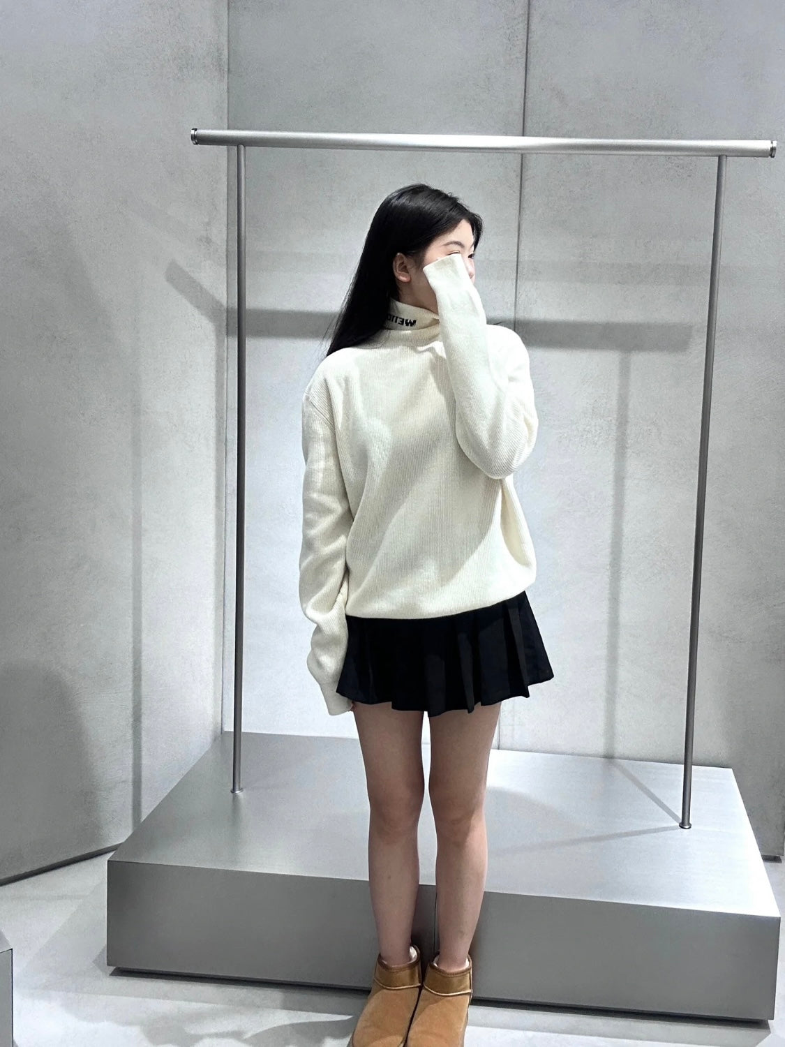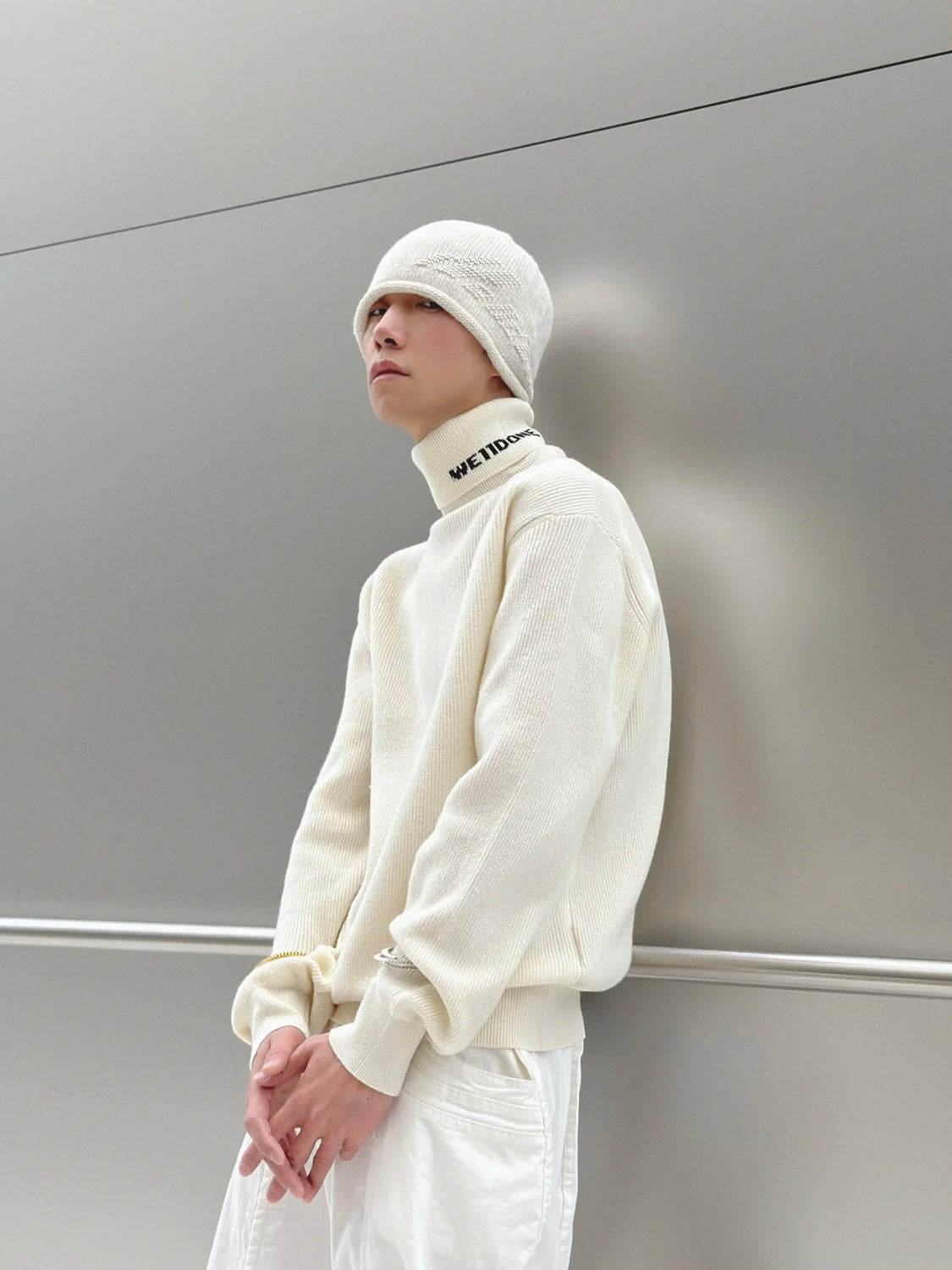 Elevate your winter wardrobe with the Simple Logo Jacquard Turtleneck Sweater from Sync Welldone. This chic and elegant piece features a classic turtleneck design, perfect for layering or wearing on its own. Crafted with care, the jacquard knit adds a sophisticated touch while providing warmth and comfort. Available in three versatile colors - black, white, and pickle green - this sweater is a must-have for any fashion-forward individual. Stay stylish and cozy this winter with our latest collection.