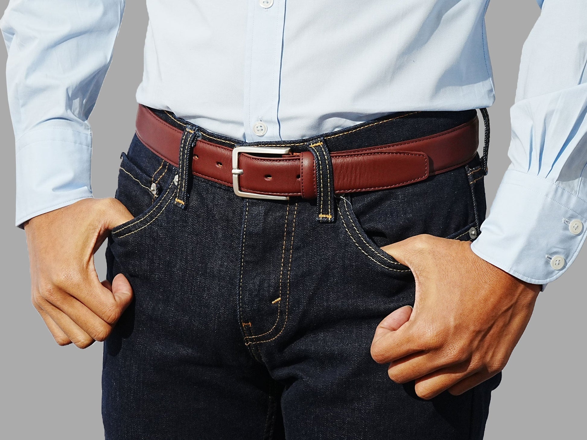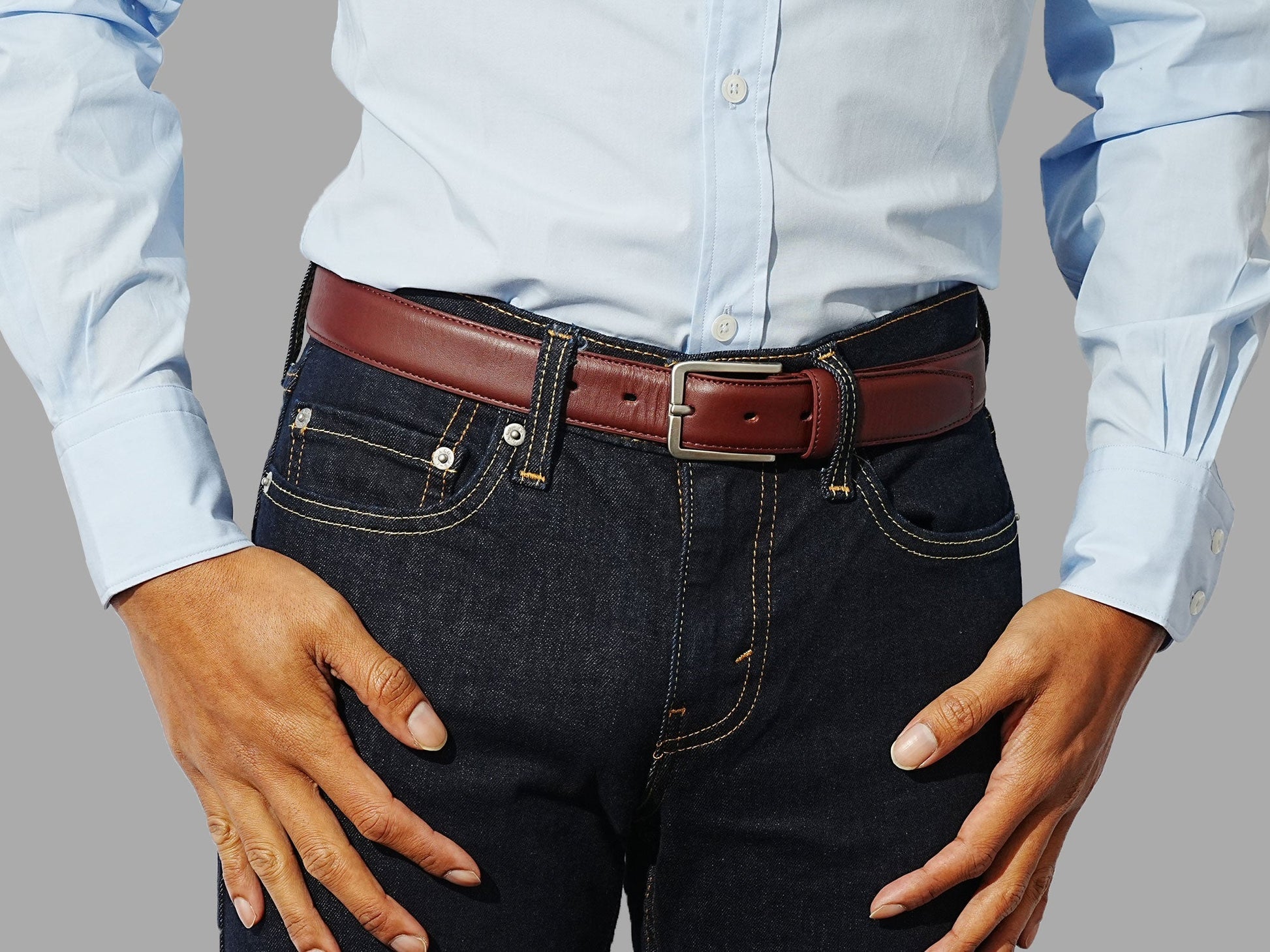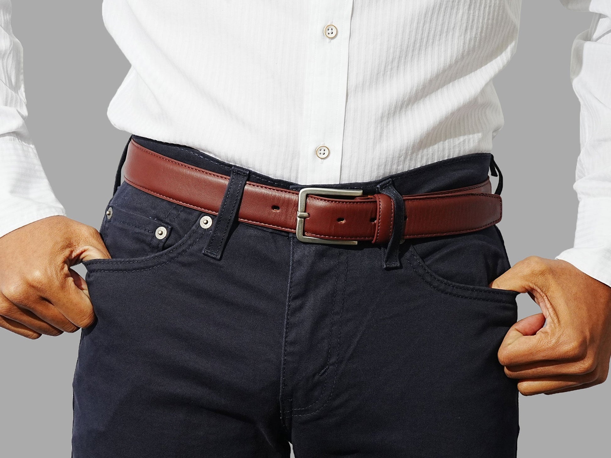 Crafted for daily wear, the Stalwart burgundy belt offers more than just a bold color. The unique, deep burgundy leather makes for an ideal alternative to classic shades, complementing a wide range of outfits with ease. It features full grain calfskin leather, providing durability that ensures it will be a staple in your wardrobe for years. Its inherent suppleness offers a personalized fit.