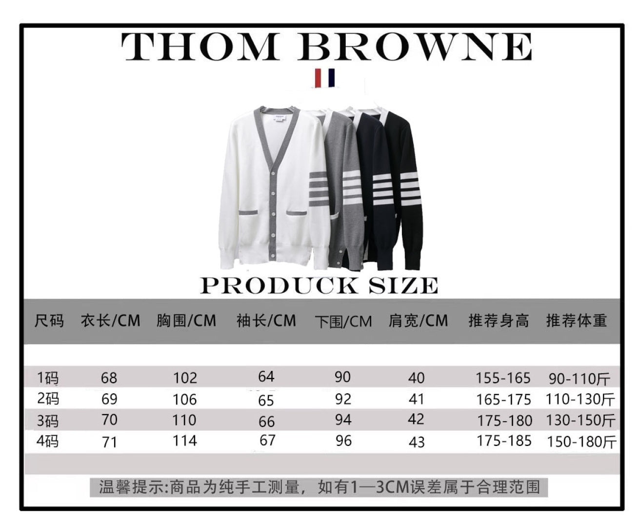 Choose from a chic palette of white, grey, navy, and black, and find your perfect fit with sizes ranging from 1 to 4. Each cardigan comes with complete packaging and tags, elegantly presented in a gift box, making it an ideal gift for yourself or a loved one. Experience the perfect blend of comfort and style with the TB M18 Four-Stripe Knit Cardigan.