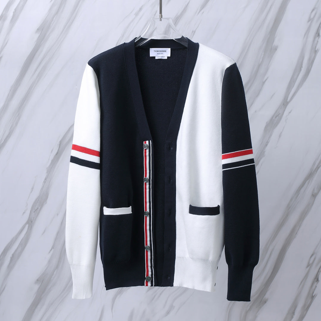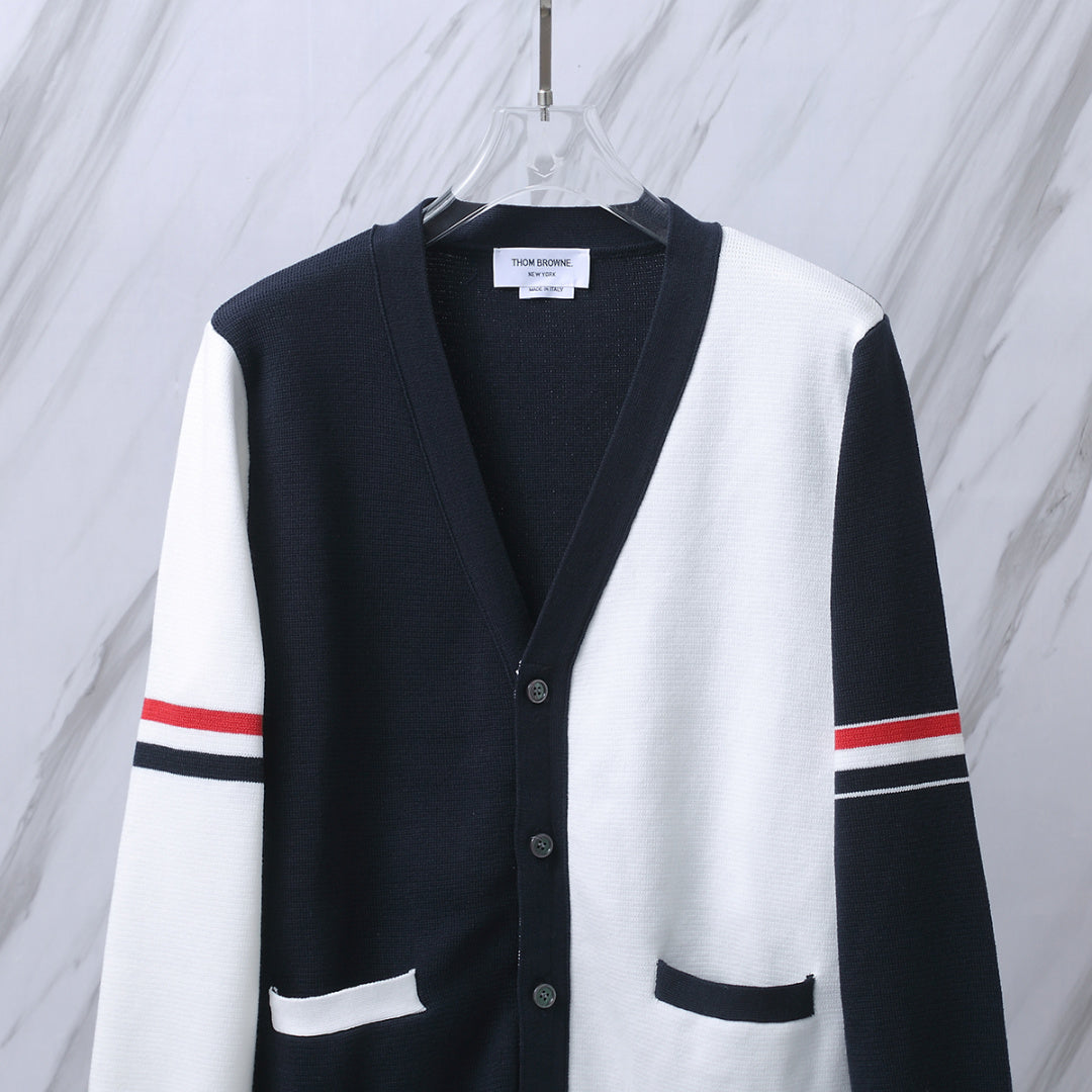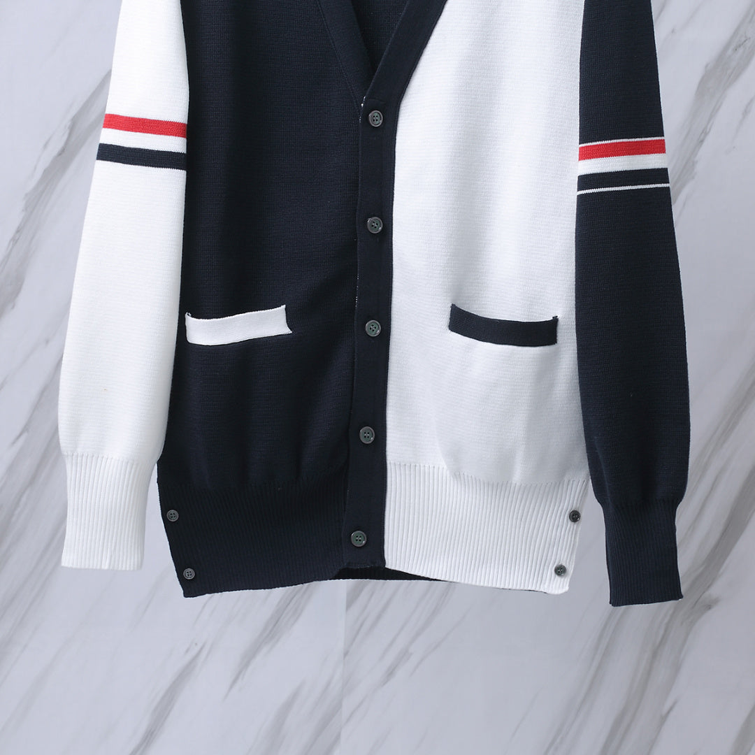 TB M33 Color-Blocked Wool Blend Cardigan - Unisex