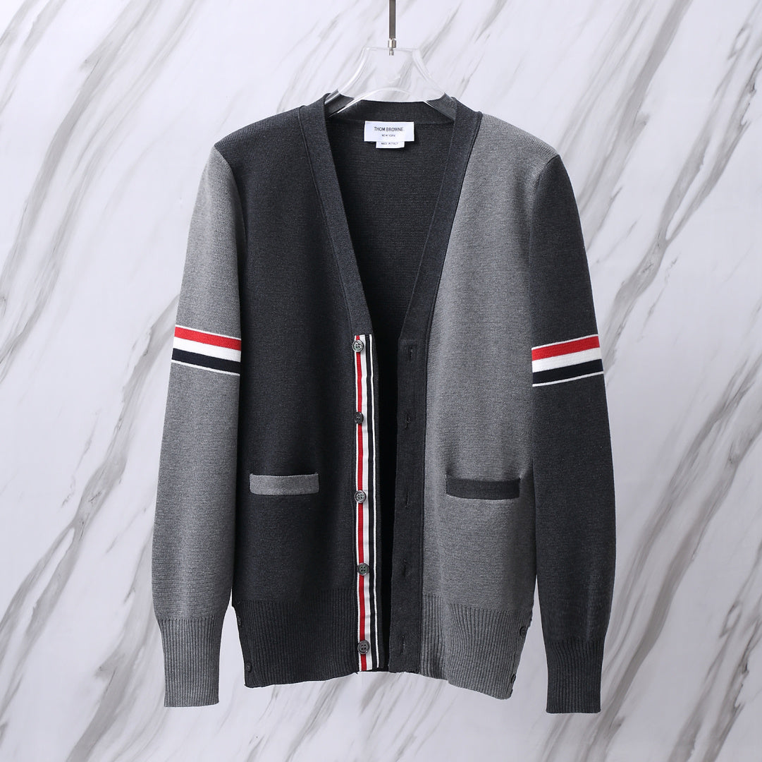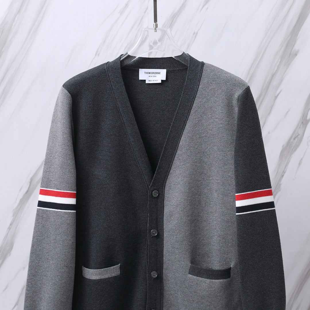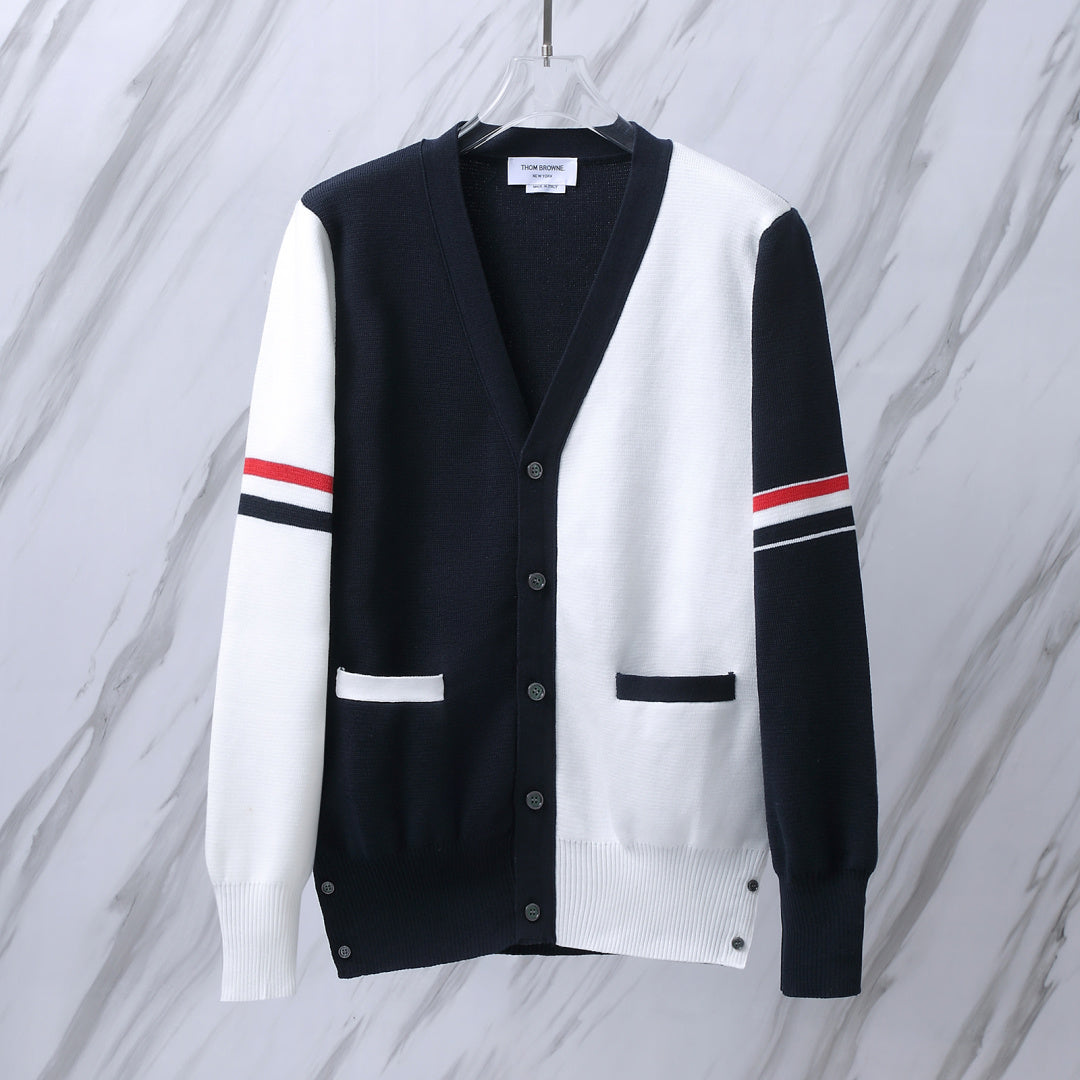 TB M33 Color-Blocked Wool Blend Cardigan - Unisex