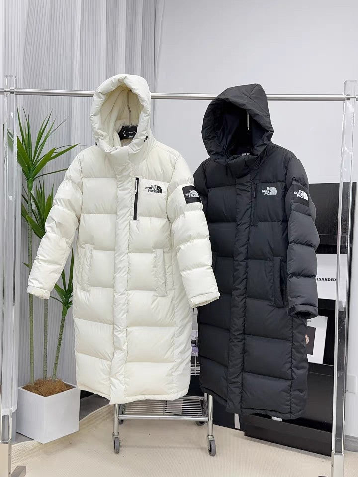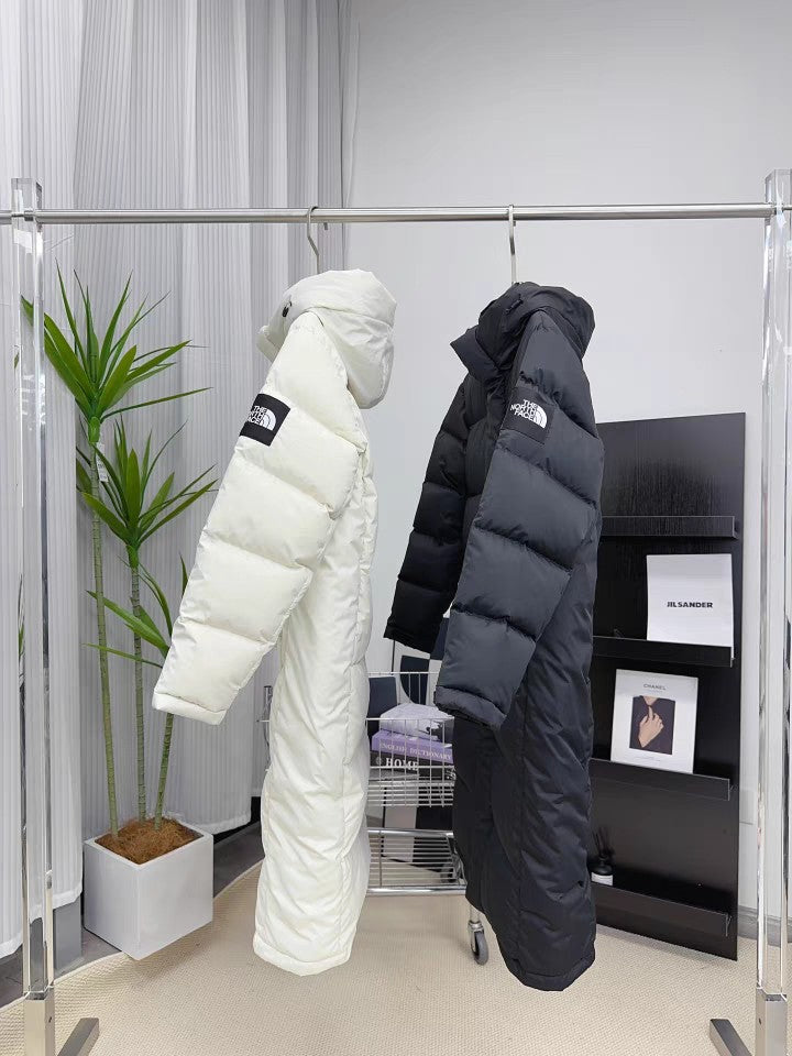 The North Face Long Down Jacket - High Version in White Gray and Black