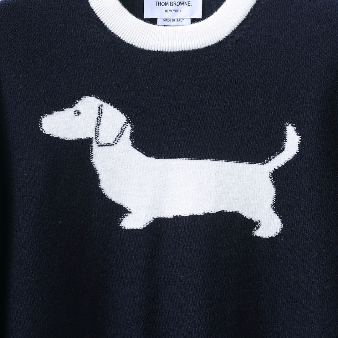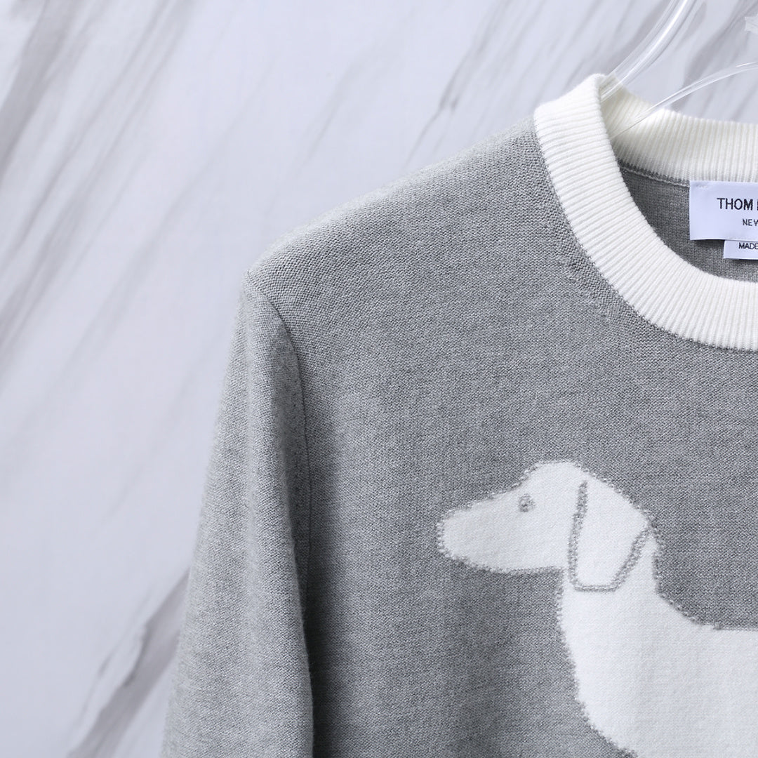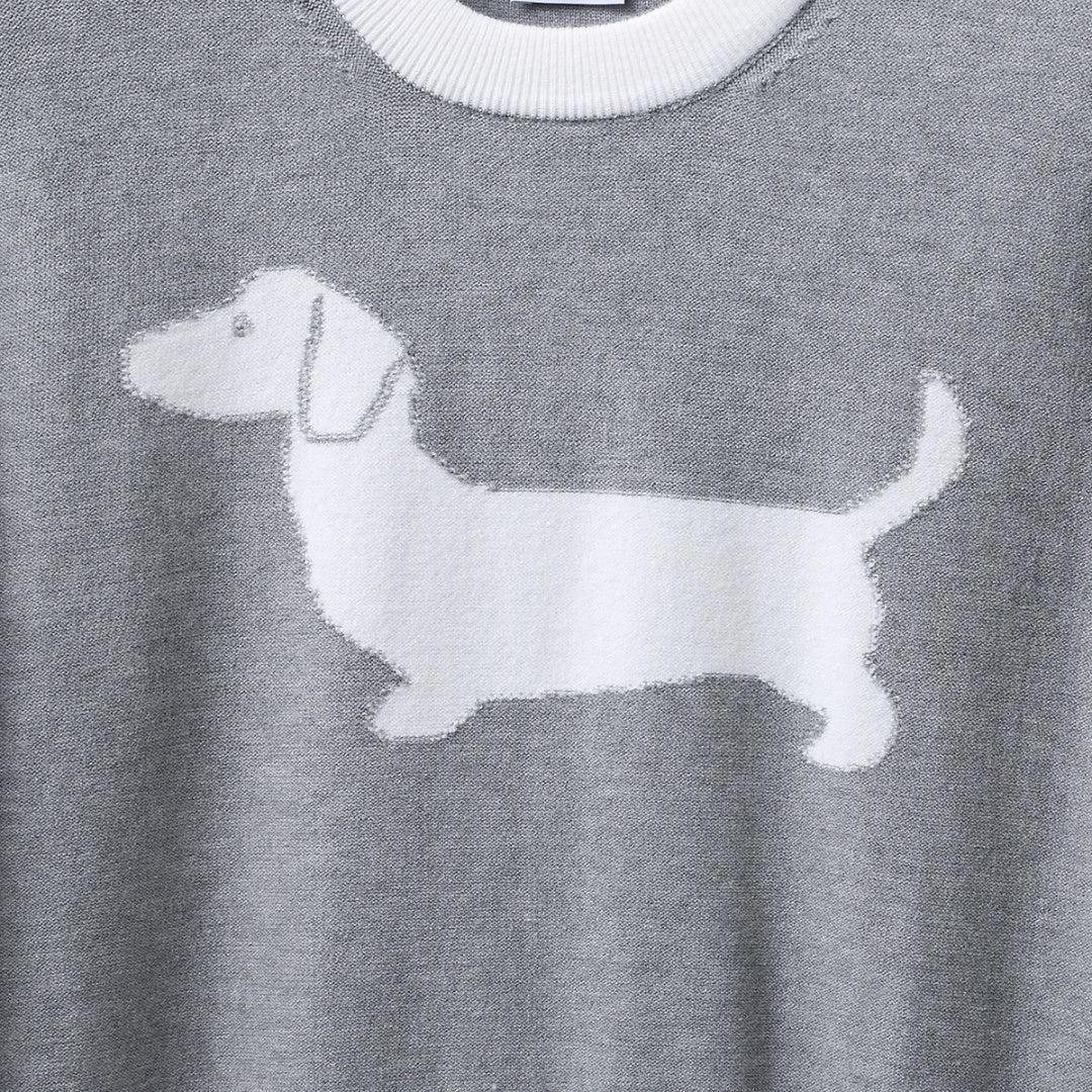 ** Thom Browne Knitted Puppy Pattern Crew Neck Sweater **