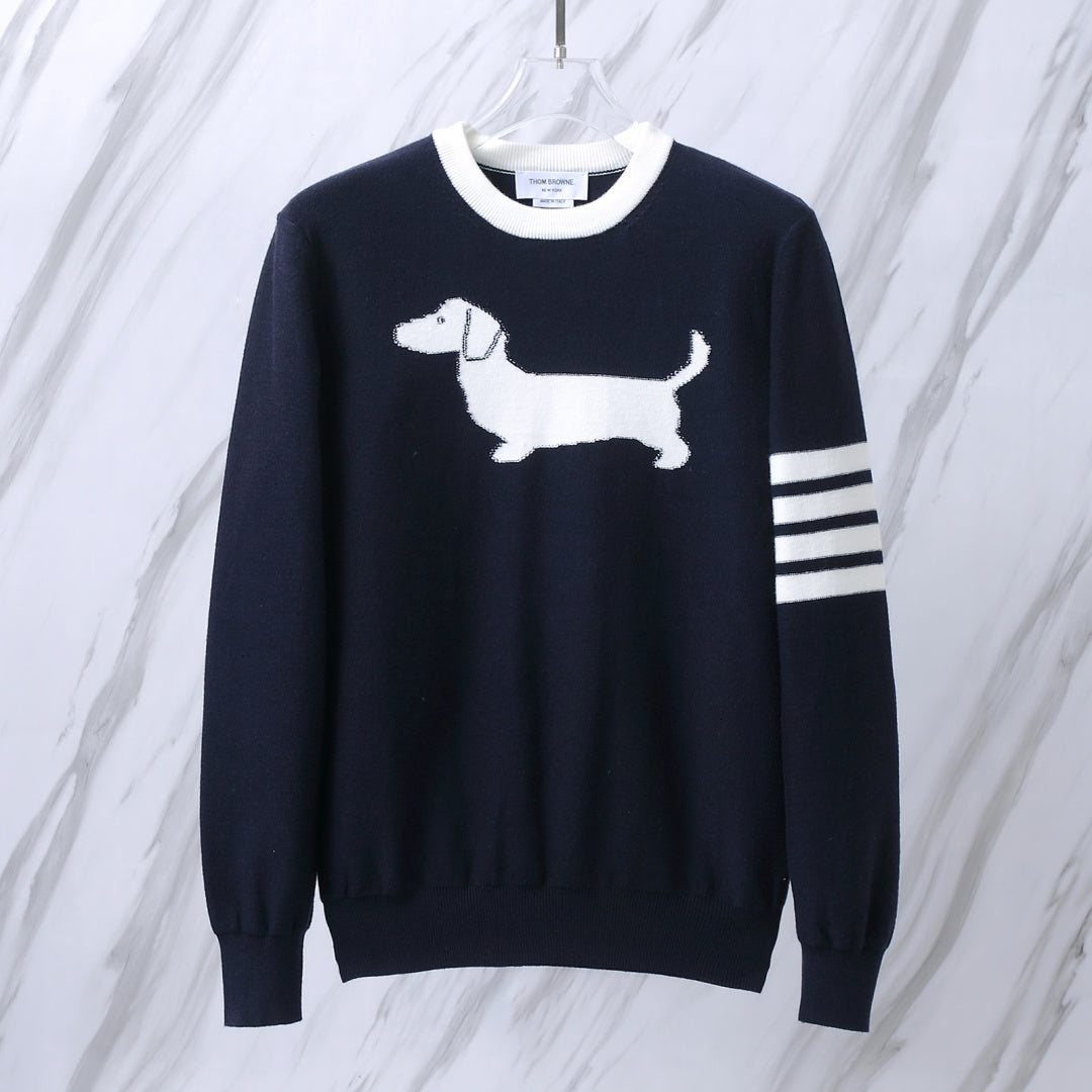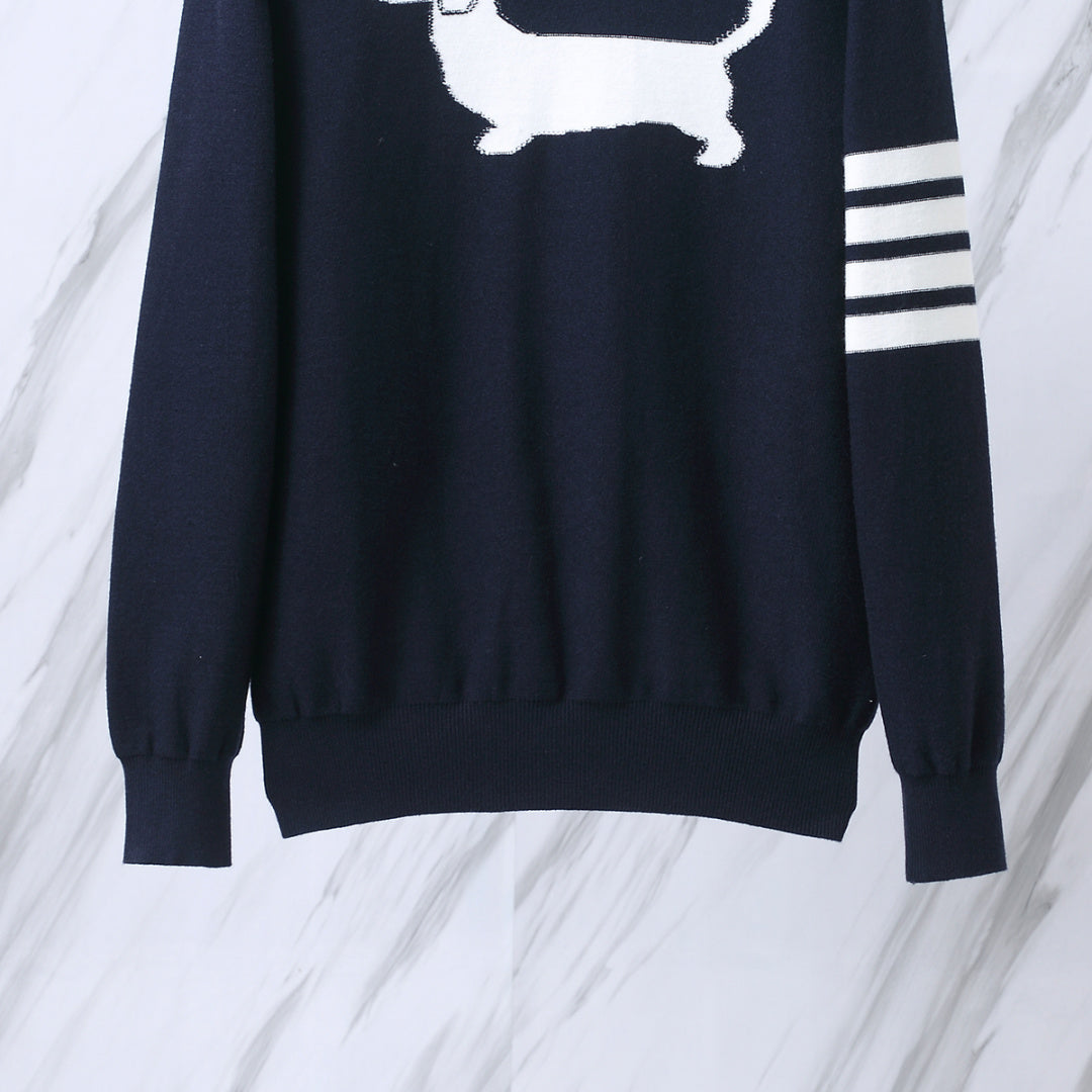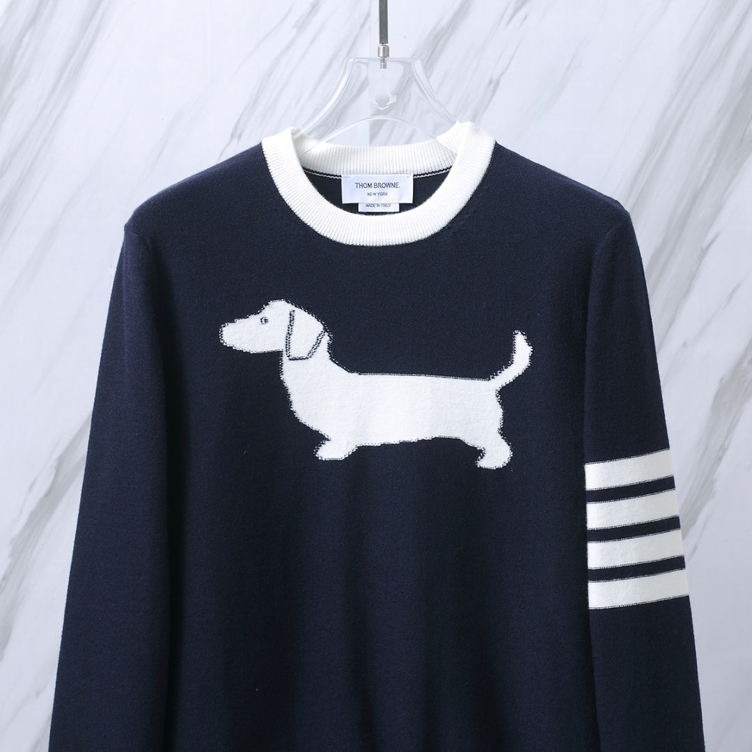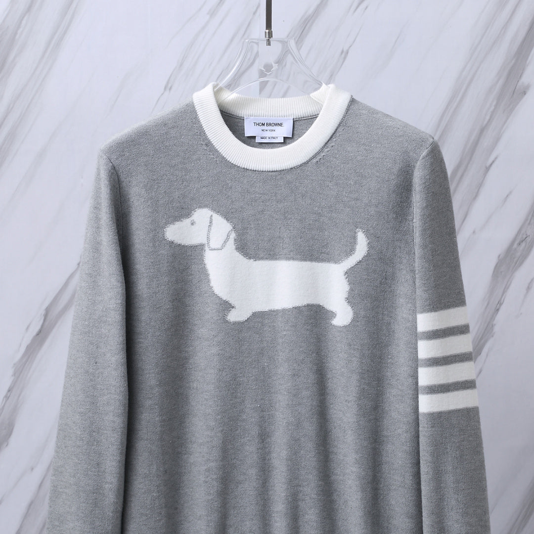 ** Thom Browne Knitted Puppy Pattern Crew Neck Sweater **