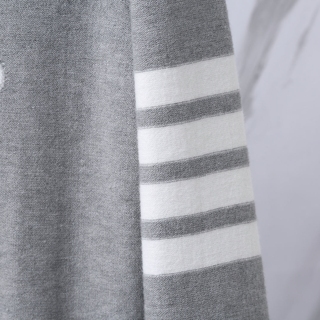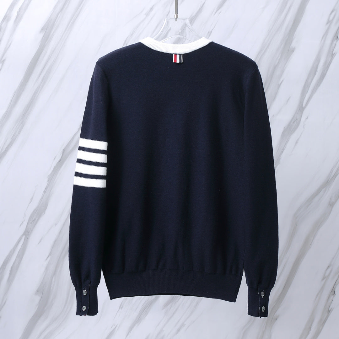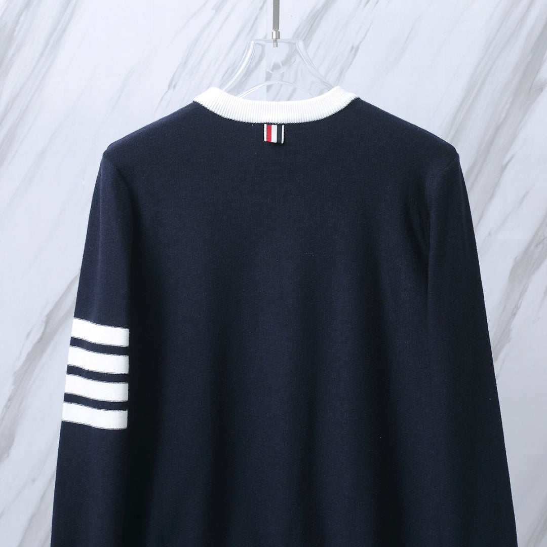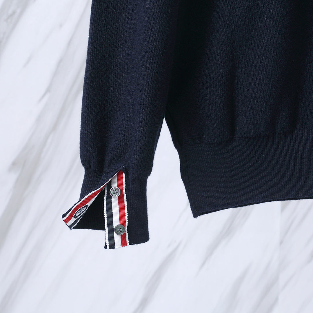 Elevate your wardrobe with the Thom Browne Knitted Puppy Pattern Crew Neck Sweater. Crafted from a luxurious wool blend, this stylish sweater features a unique four-stripe design and an adorable puppy motif. Produced with precision on advanced knitting machines from Japan, the tight stitch construction ensures durability and comfort.