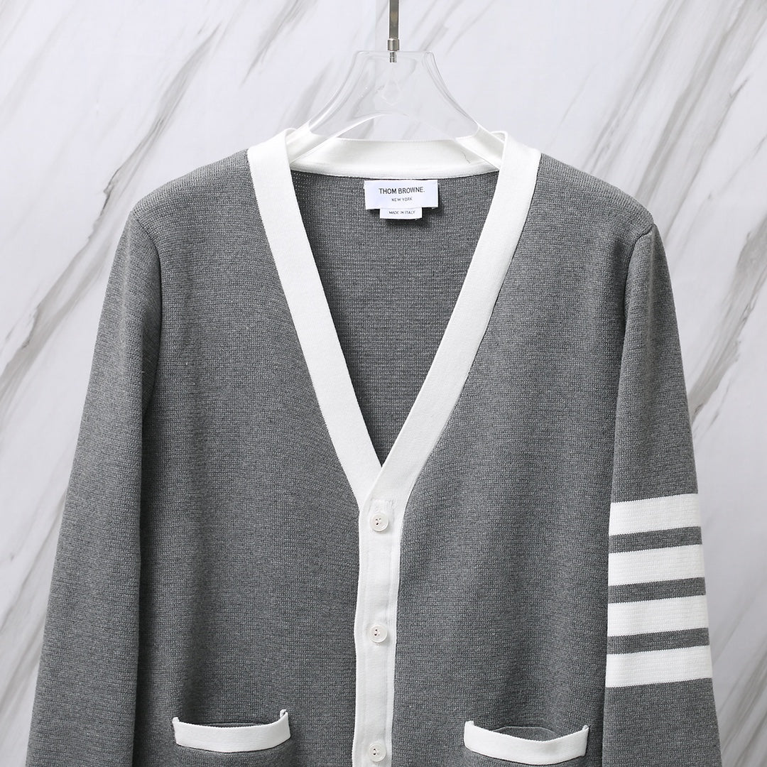 Indulge yourself with the timeless elegance of the Thom Browne TB M18 Knit Cardigan.