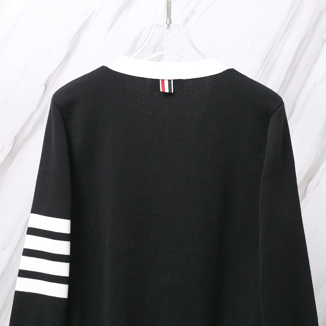Thom Browne TB M18 Contrasting Color Knitted Cardigan - Wool Blend Sweater