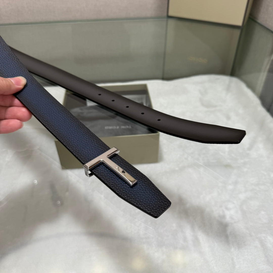 Discover the elegance of Tom Ford's latest double-sided belt, crafted from premium first-layer cowhide. This stylish accessory features a versatile 3.5-inch width and high-quality copper buckles, making it both sophisticated and practical. Perfect for enhancing any outfit, this belt effortlessly combines durability with a refined aesthetic. Elevate your wardrobe with this timeless piece.