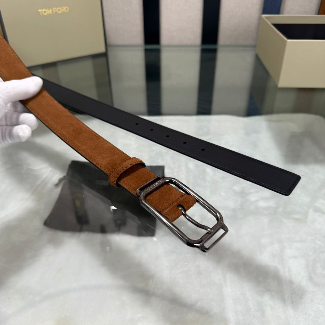 Tom Ford Double-Sided Cowhide Belt with Copper Buckles - 3.5" Wide