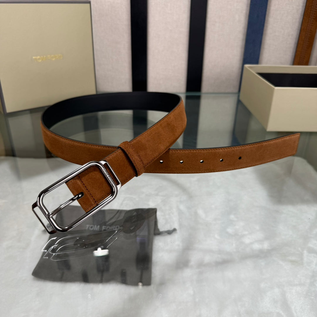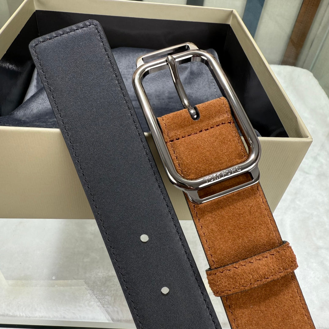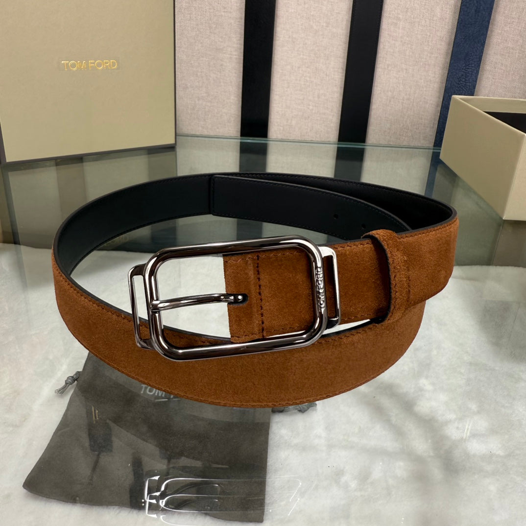Elevate your style with Tom Ford's latest double-sided belt, crafted from premium first-layer cowhide. Designed for versatility, this 3.5" wide belt features an elegant finish and durable copper buckles, making it both practical and sophisticated. Ideal for any occasion, this belt seamlessly blends luxury with everyday wear. Experience the perfect accessory to enhance your wardrobe.