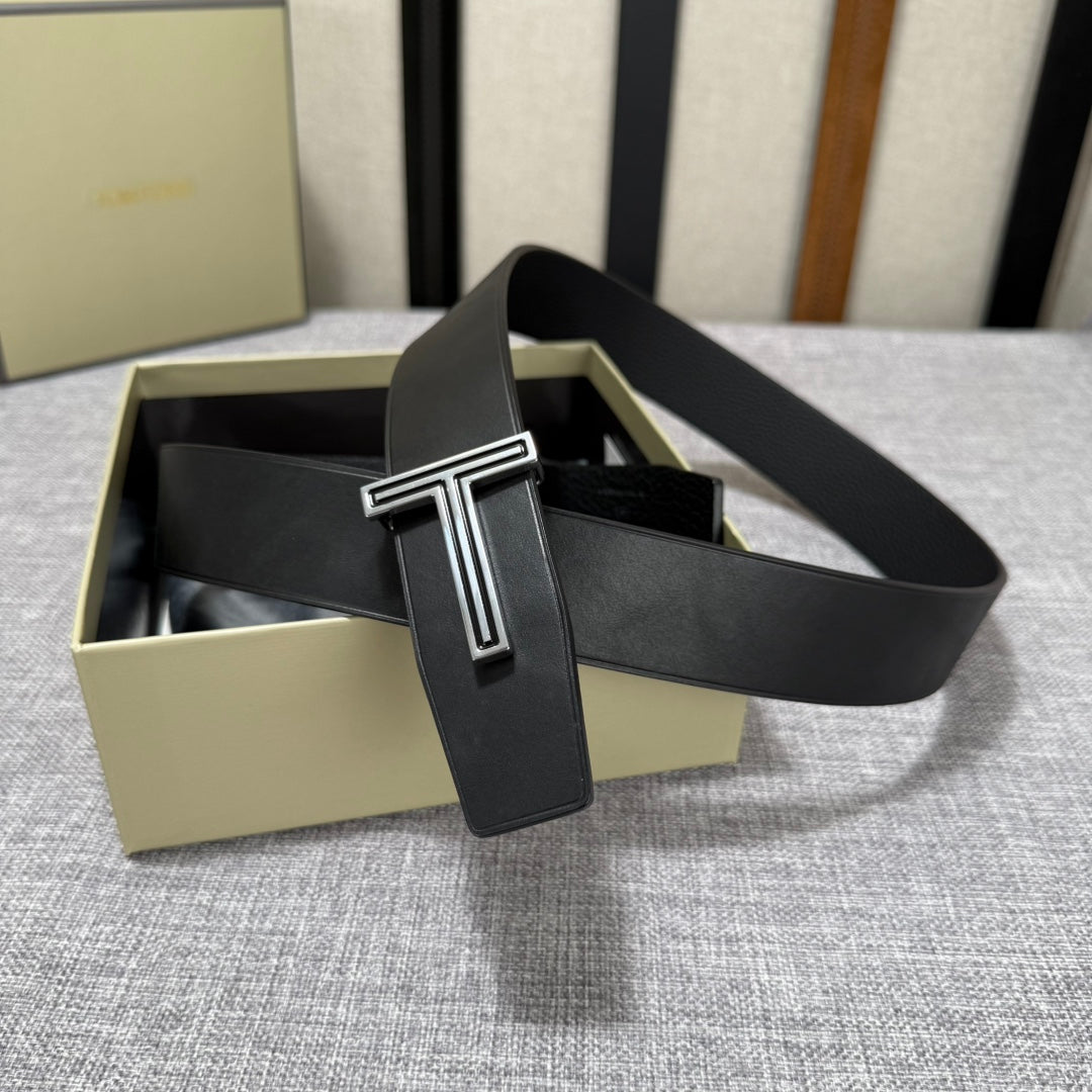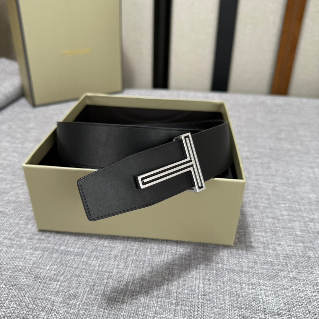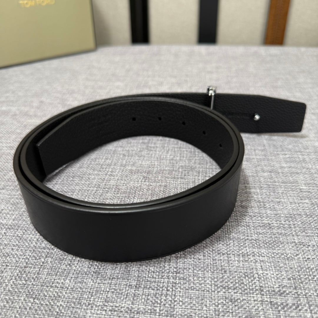 Discover the elegance of Tom Ford's latest double-sided belt, crafted from premium first-layer cowhide. With a versatile 3.8-inch width, this belt features durable copper buckles for a sophisticated touch. Combining style with functionality, it's the perfect accessory for any outfit. Elevate your wardrobe with this luxurious statement piece.