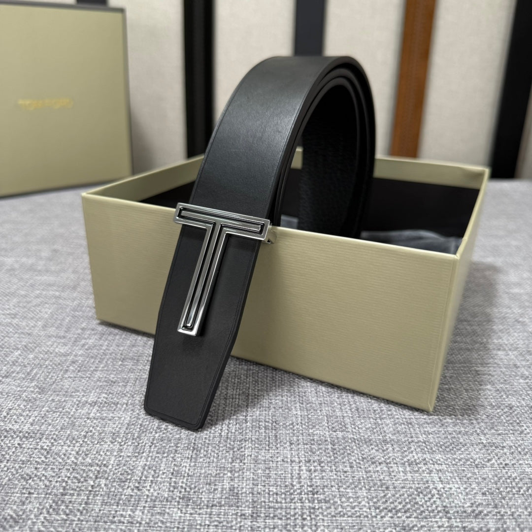 Tom Ford Double-Sided First-Layer Cowhide Belt - Elegant Design with Copper Buckles