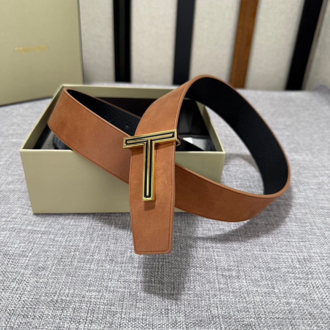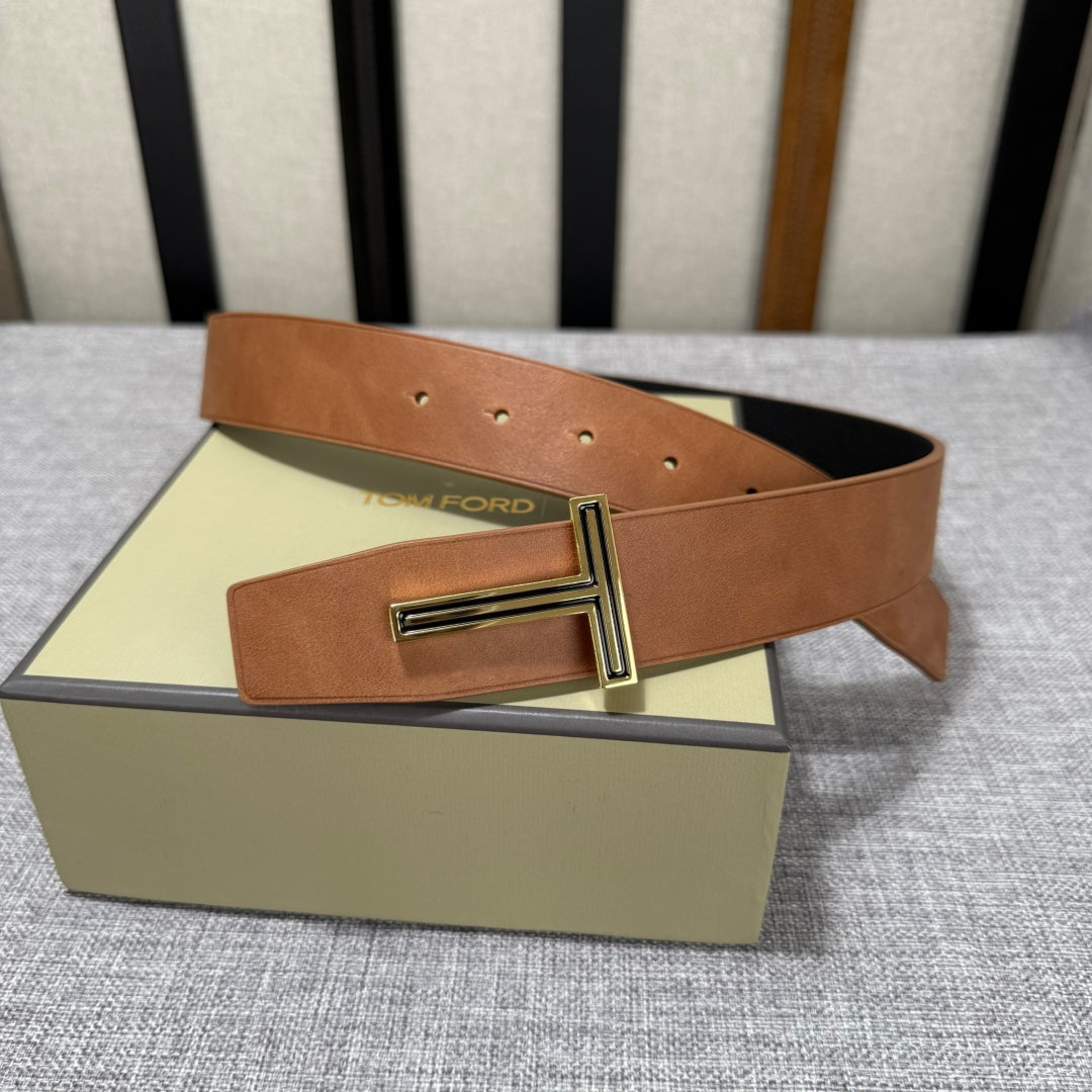Tom Ford Double-Sided First-Layer Cowhide Belt with Copper Buckles