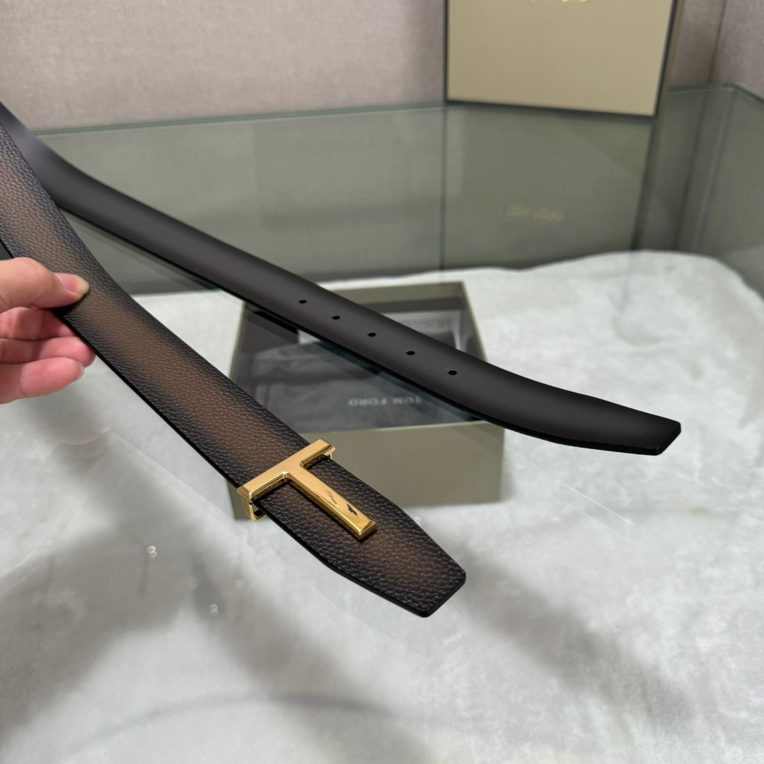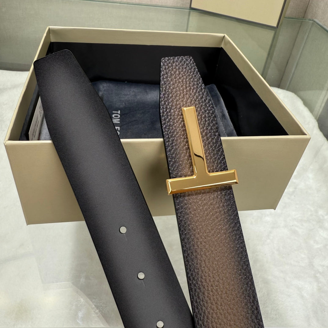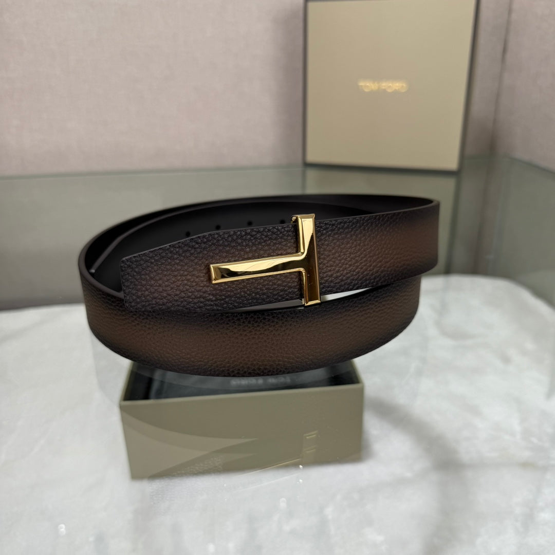 Tom Ford Double-Sided First-Layer Cowhide Belt with Copper Buckles - 3.5 Width