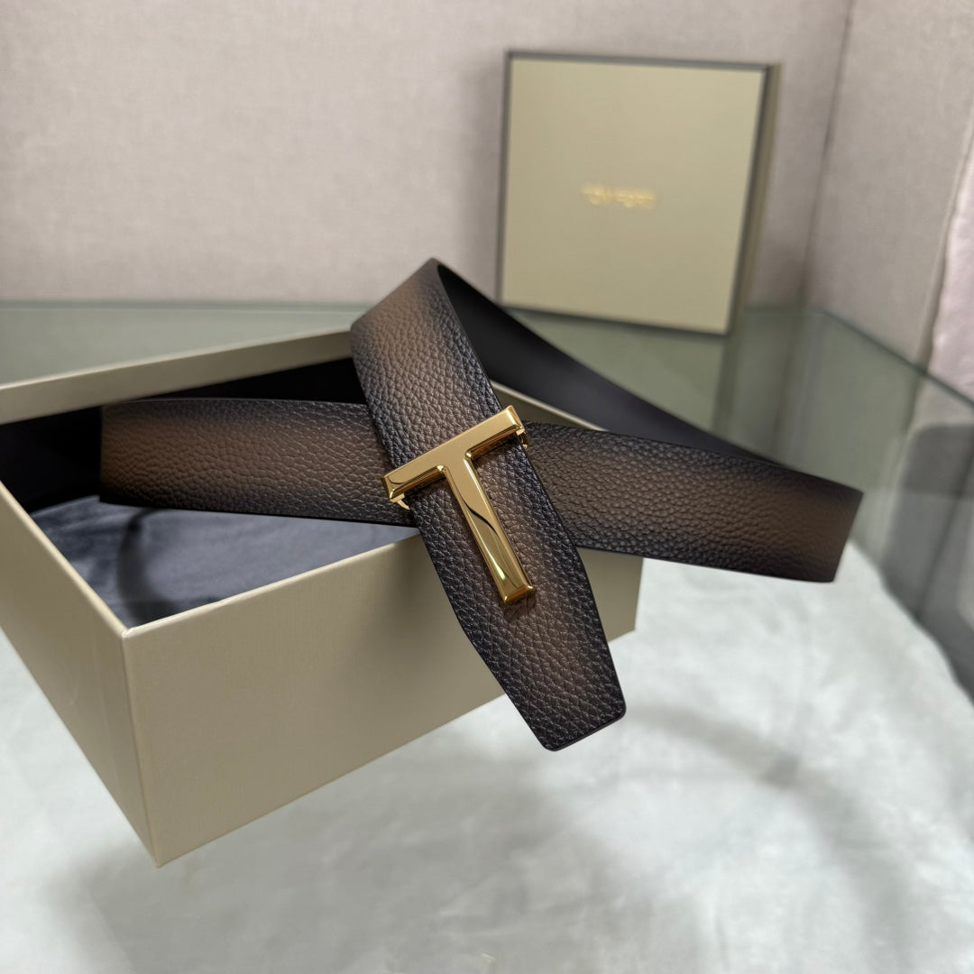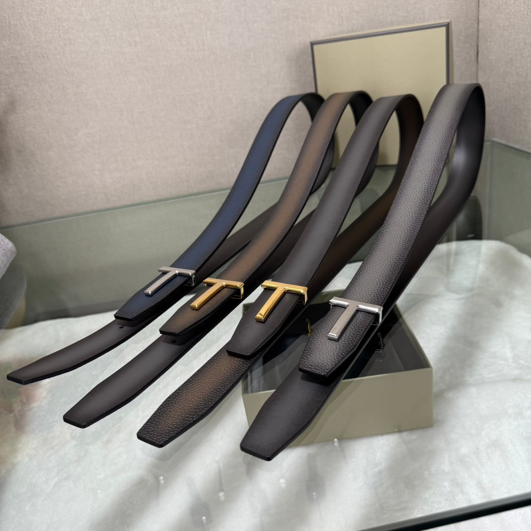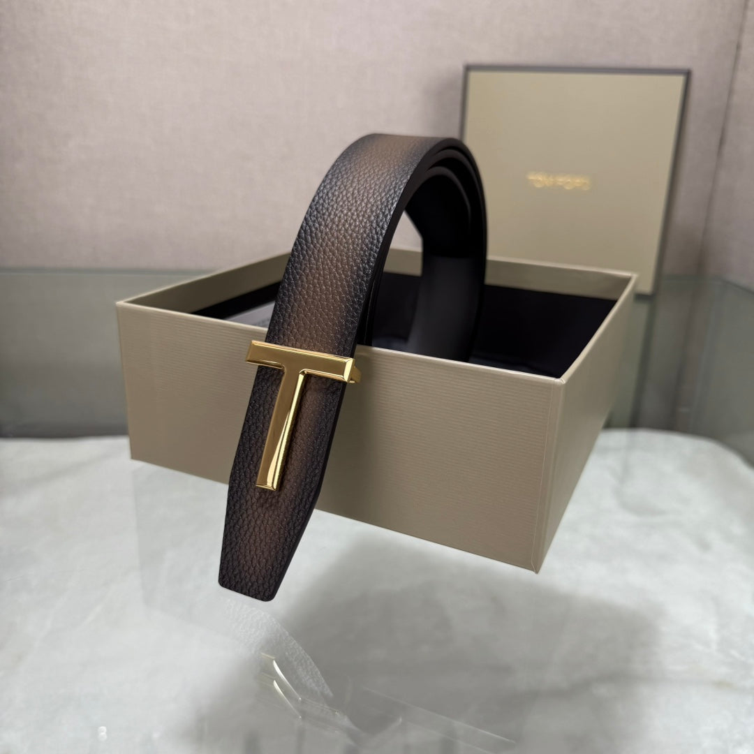 Tom Ford Double-Sided First-Layer Cowhide Belt with Copper Buckles - 3.5 Width