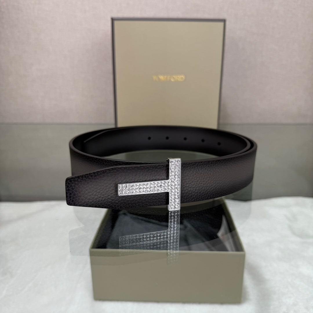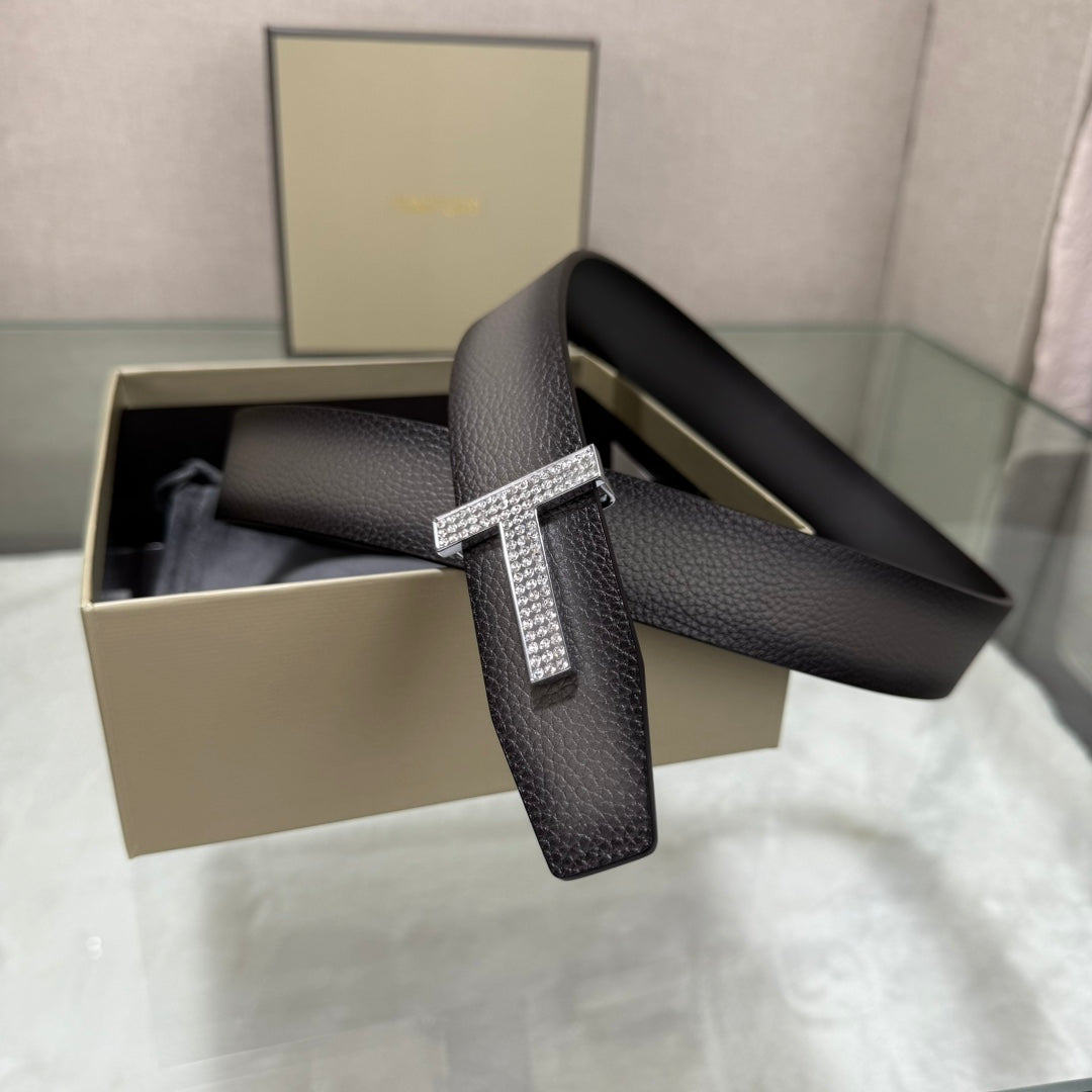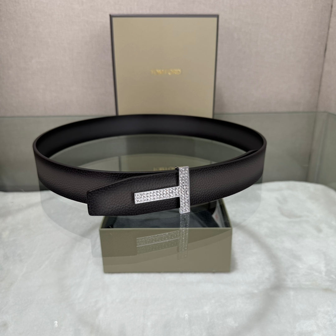 Discover the elegance of Tom Ford's latest double-sided belt, crafted from premium first-layer cowhide. With a versatile 3.5-inch width, this luxury accessory features durable copper buckles for easy wear. Perfect for any occasion, this belt combines functionality with sophistication, making it a must-have addition to your wardrobe. Enhance your style effortlessly with this timeless piece.