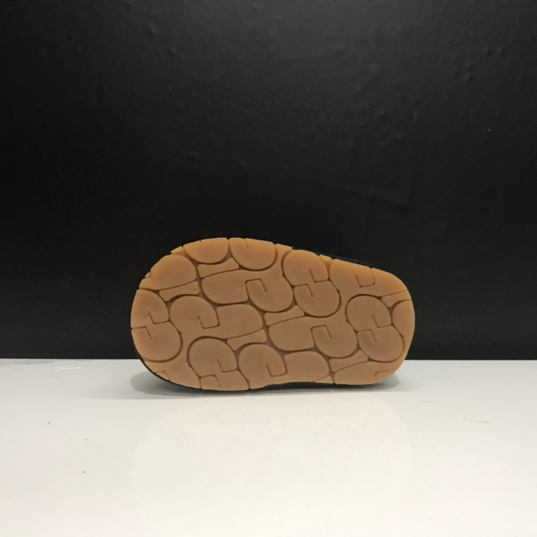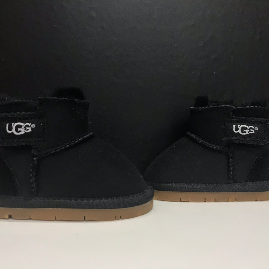 Keep your child's feet warm and protected this winter with UGG's Velcro Snow Boots. Available in sizes 14 to 18, these boots feature an integrated fur lining for added warmth and comfort. The durable rubber outsole ensures superior wear-resistance and anti-slip performance, making them perfect for winter adventures. Designed specifically for young ones, these boots provide optimal support for tender feet. Equip your little ones with the best in winter footwear!