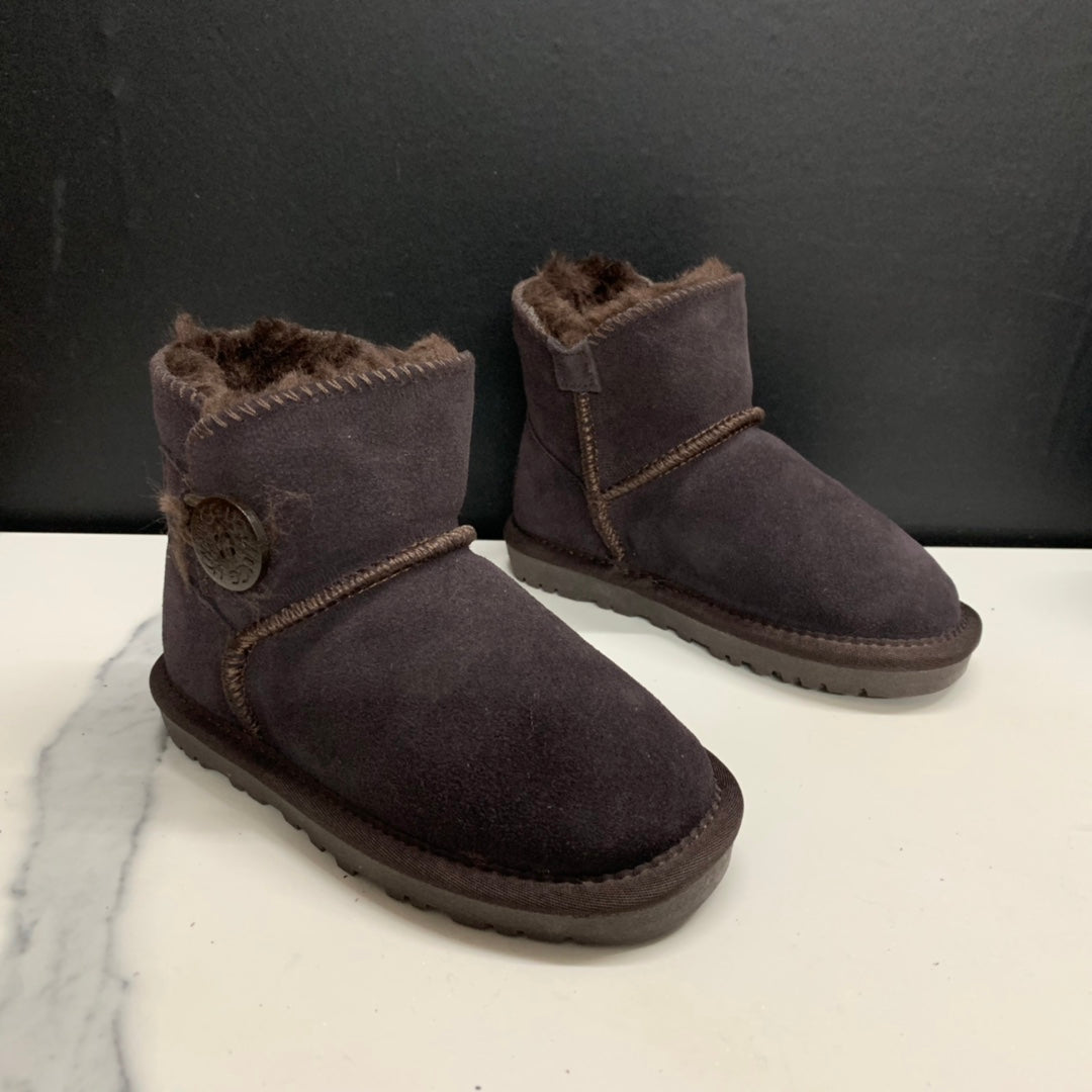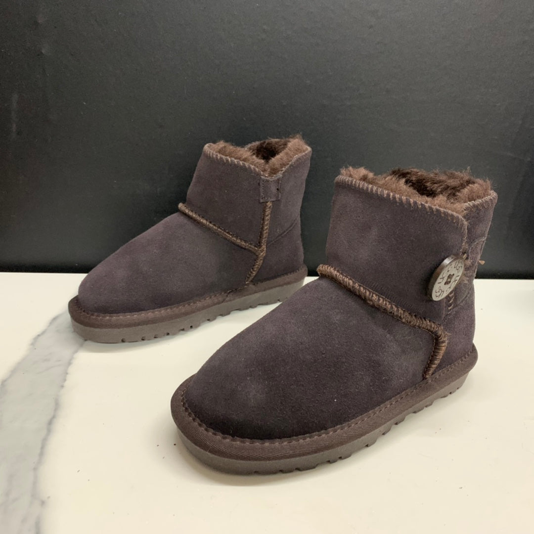 Keep your little ones warm and stylish this winter with the UGG Mahogany Buckle Children's Snow Boots. Available in sizes 21-35, these boots feature a cozy artificial fur lining, ensuring every step is both warm and environmentally friendly. The durable cowhide upper provides optimal comfort, while the beef tendon rubber outsole offers excellent wear resistance and slip protection. Perfect for snowy adventures, these boots are designed for both style and functionality, making them a must-have for every child's winter wardrobe.