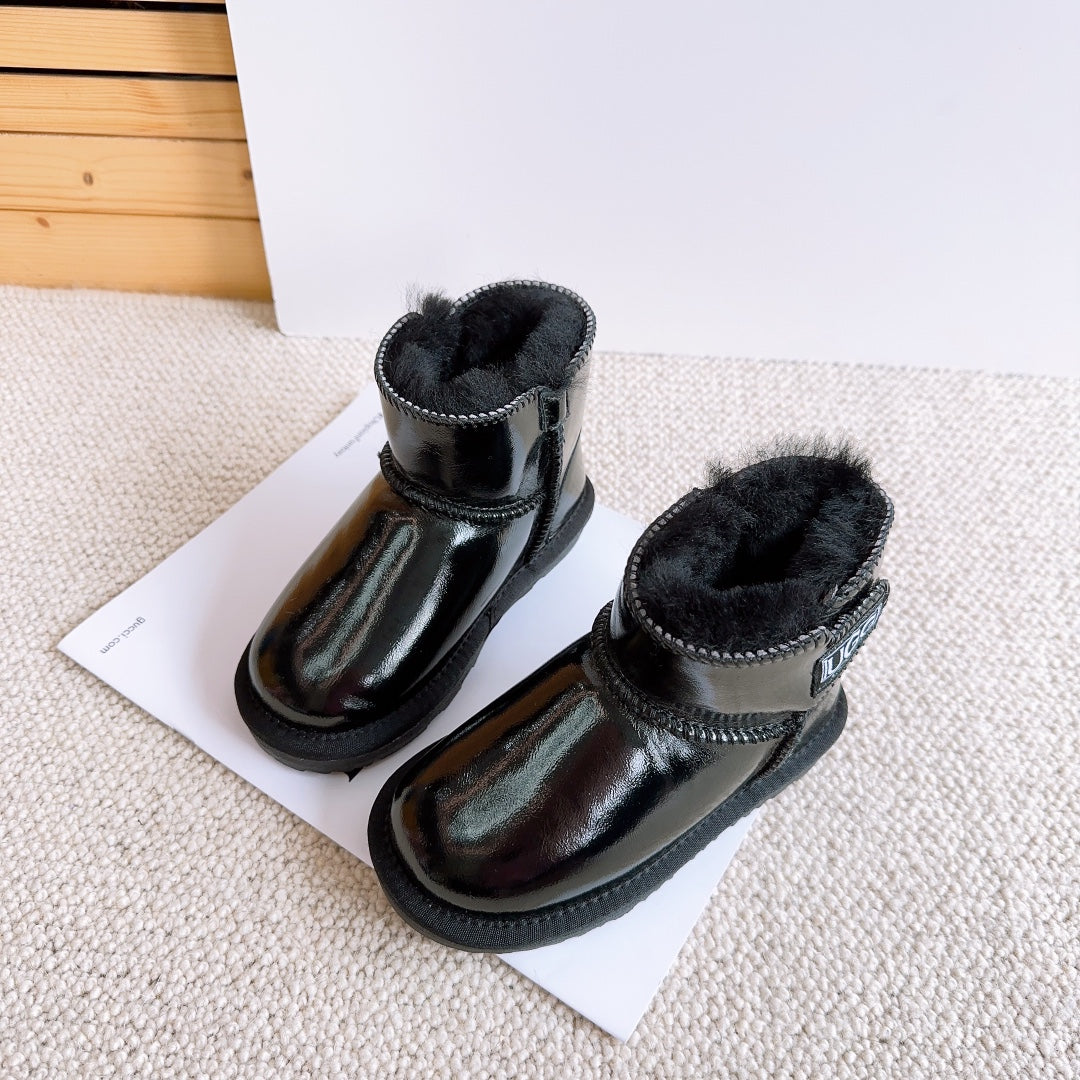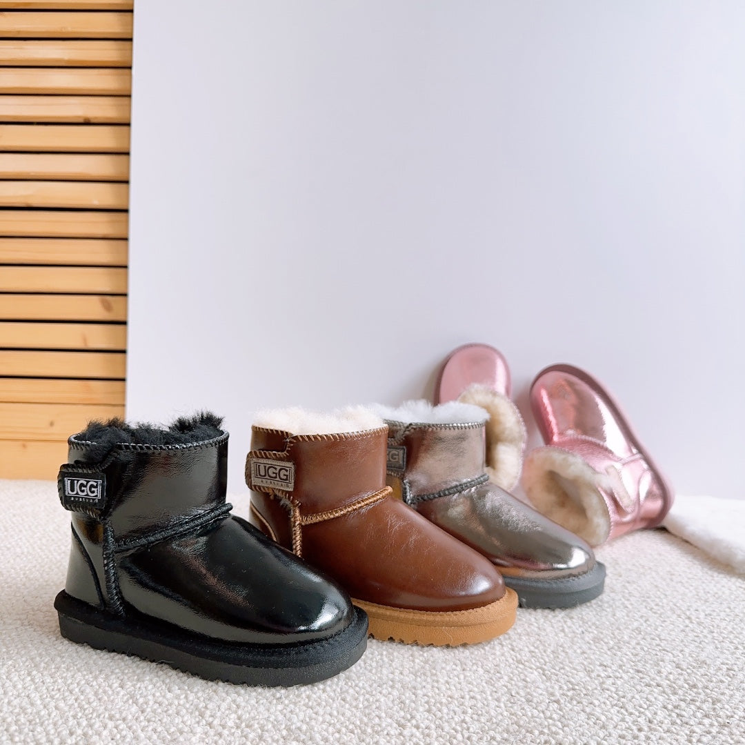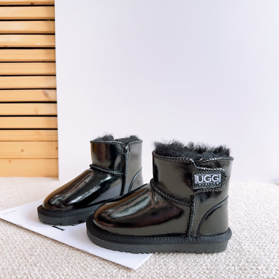 Discover the perfect blend of style and functionality with our UGG Waterproof Children's Snow Boots. Featuring integrated fur side patches and a durable, shiny leather exterior, these boots offer both comfort and protection against the elements. The soft wool lining ensures warmth and coziness, making them ideal for winter adventures. Available in sizes 25–35, these snow boots are designed to keep your child's feet warm and dry while they explore the snowy outdoors.