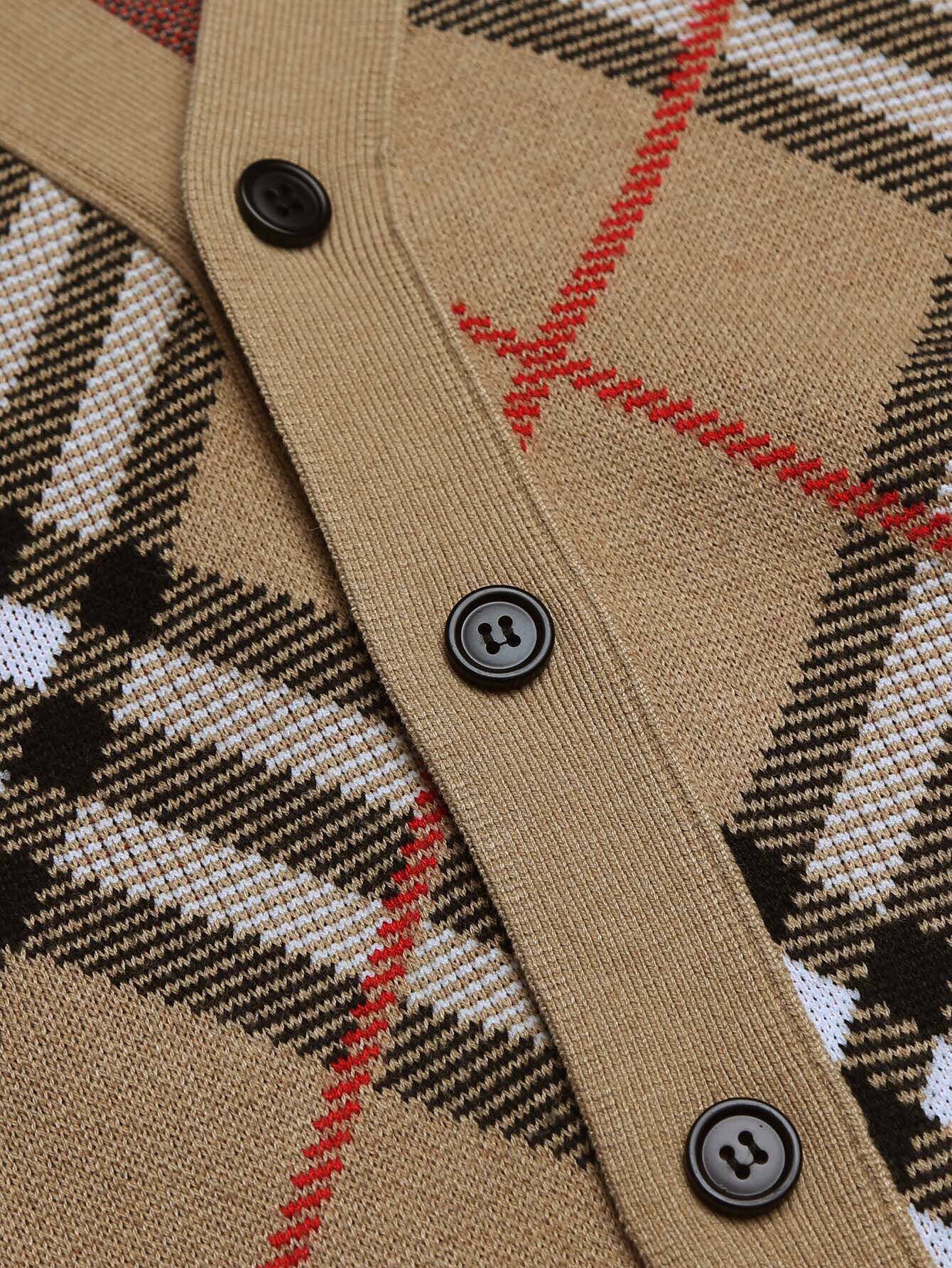 Elevate your wardrobe with our Classic Wool Blended Plaid V-Neck Cardigan, available on the BUR official website. Designed for both men and women, this thickened sweater features a timeless plaid pattern in an elegant khaki color that is perfect for any occasion.