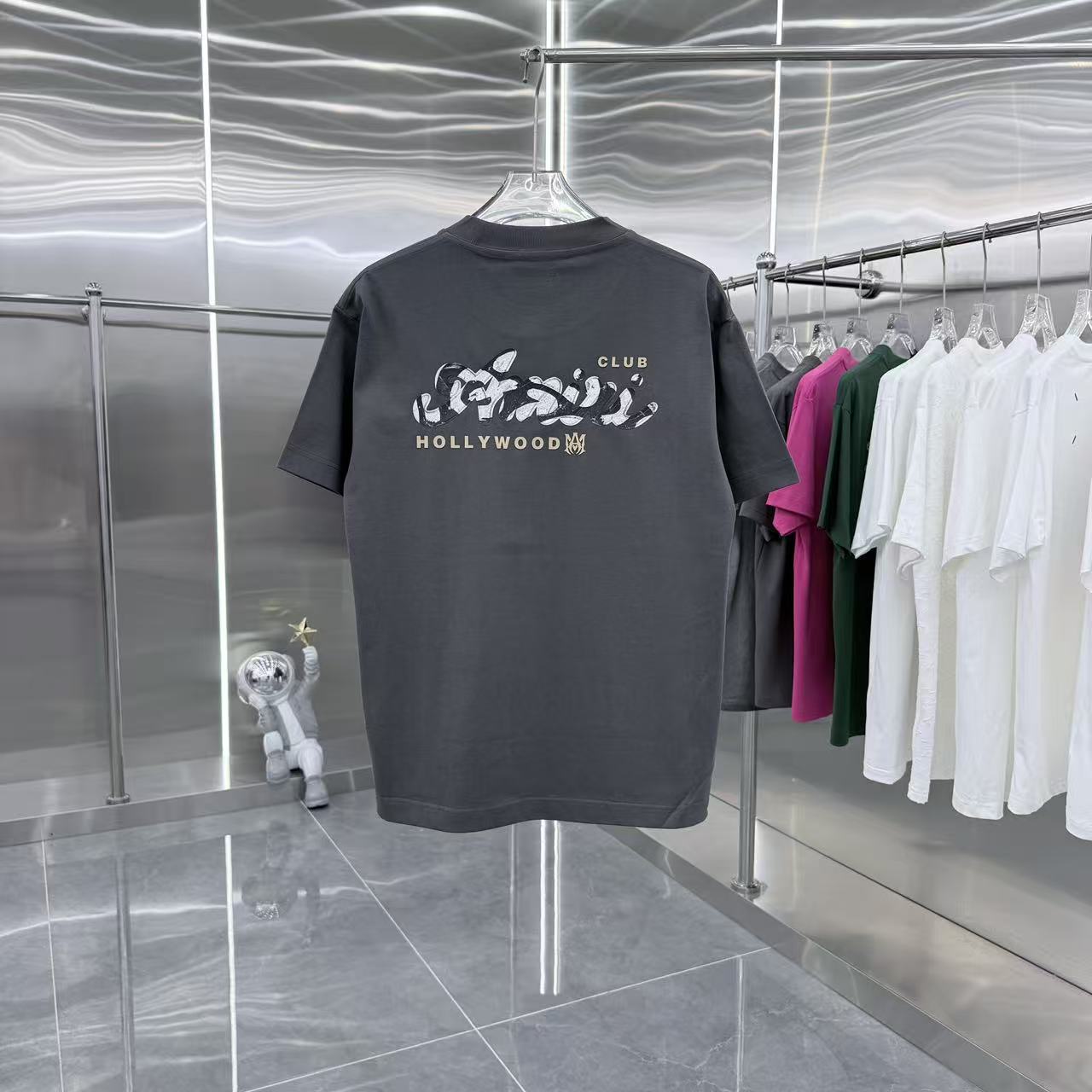 Unisex Flocking Lettering Tee - Custom 320g Fabric in Black, White, and Gray
