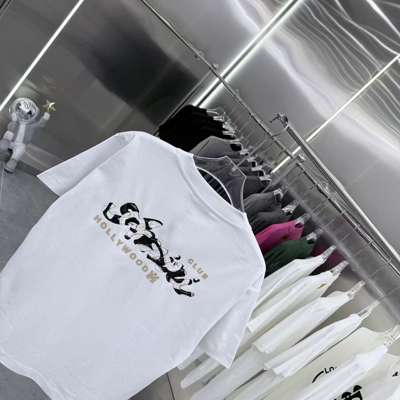 Unisex Round Neck Short Sleeve Flocking T-Shirt - Custom Fabric, 320g