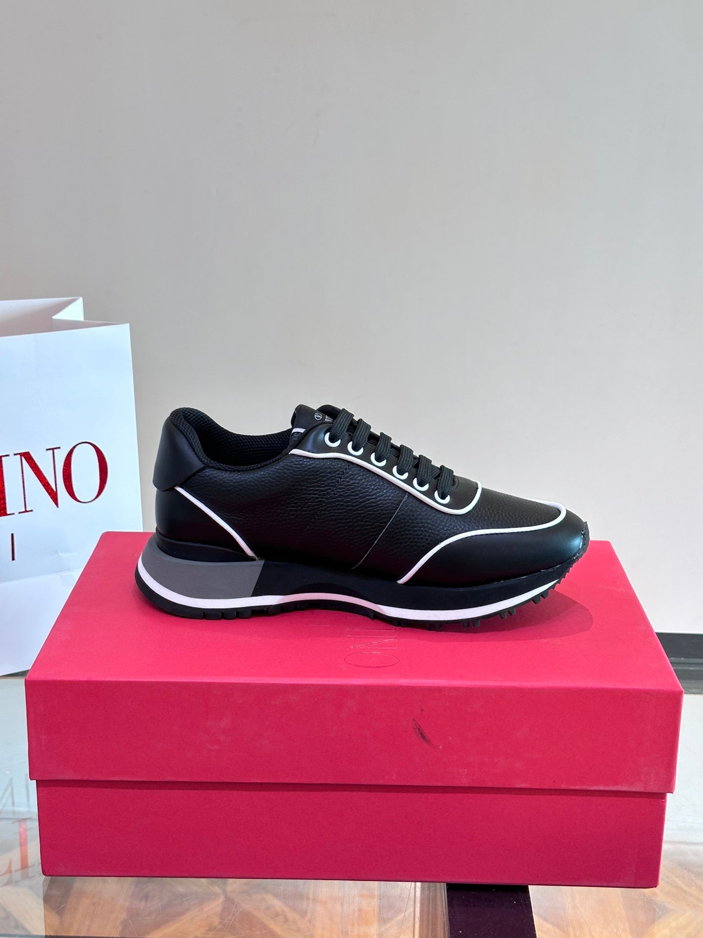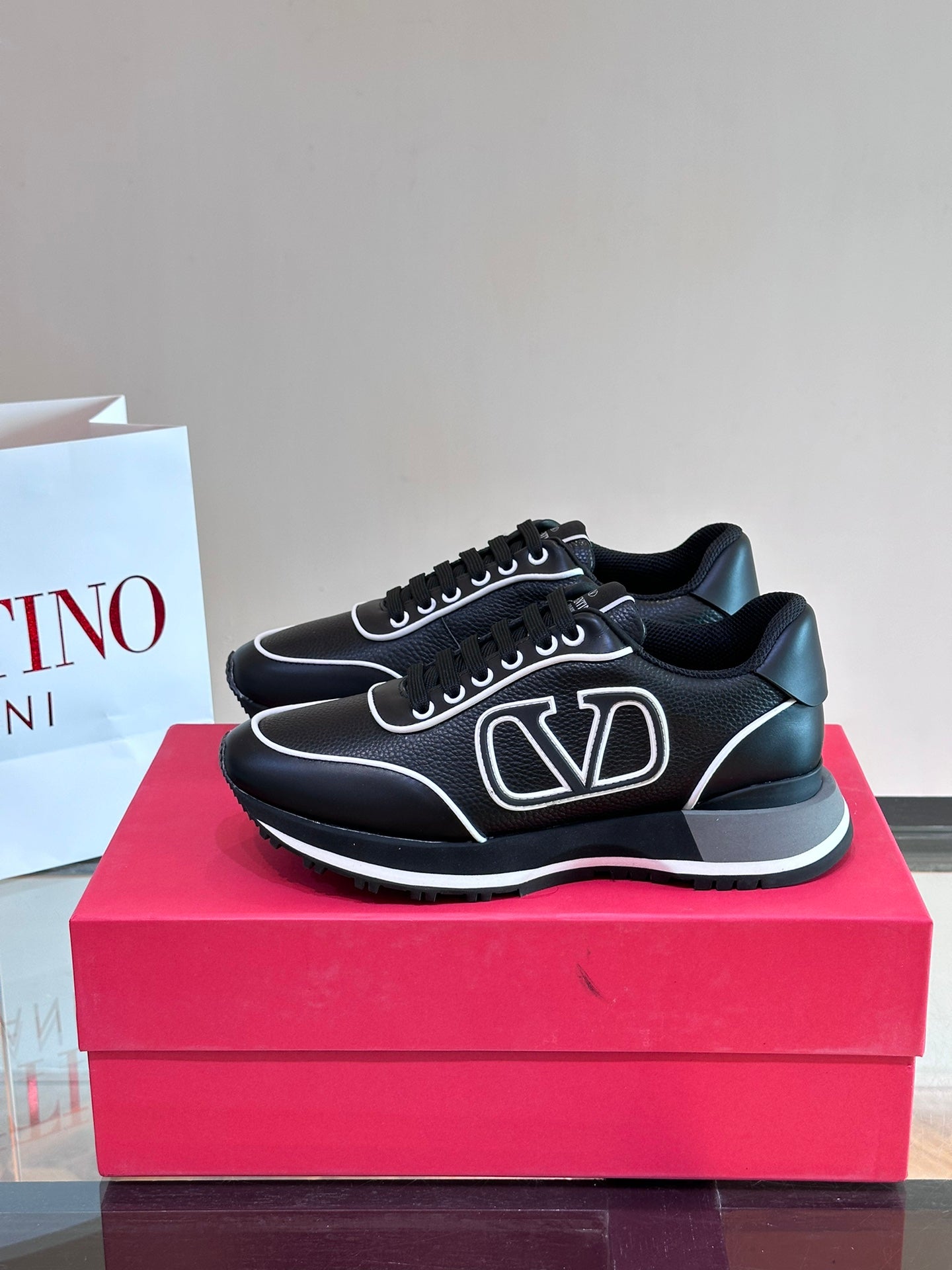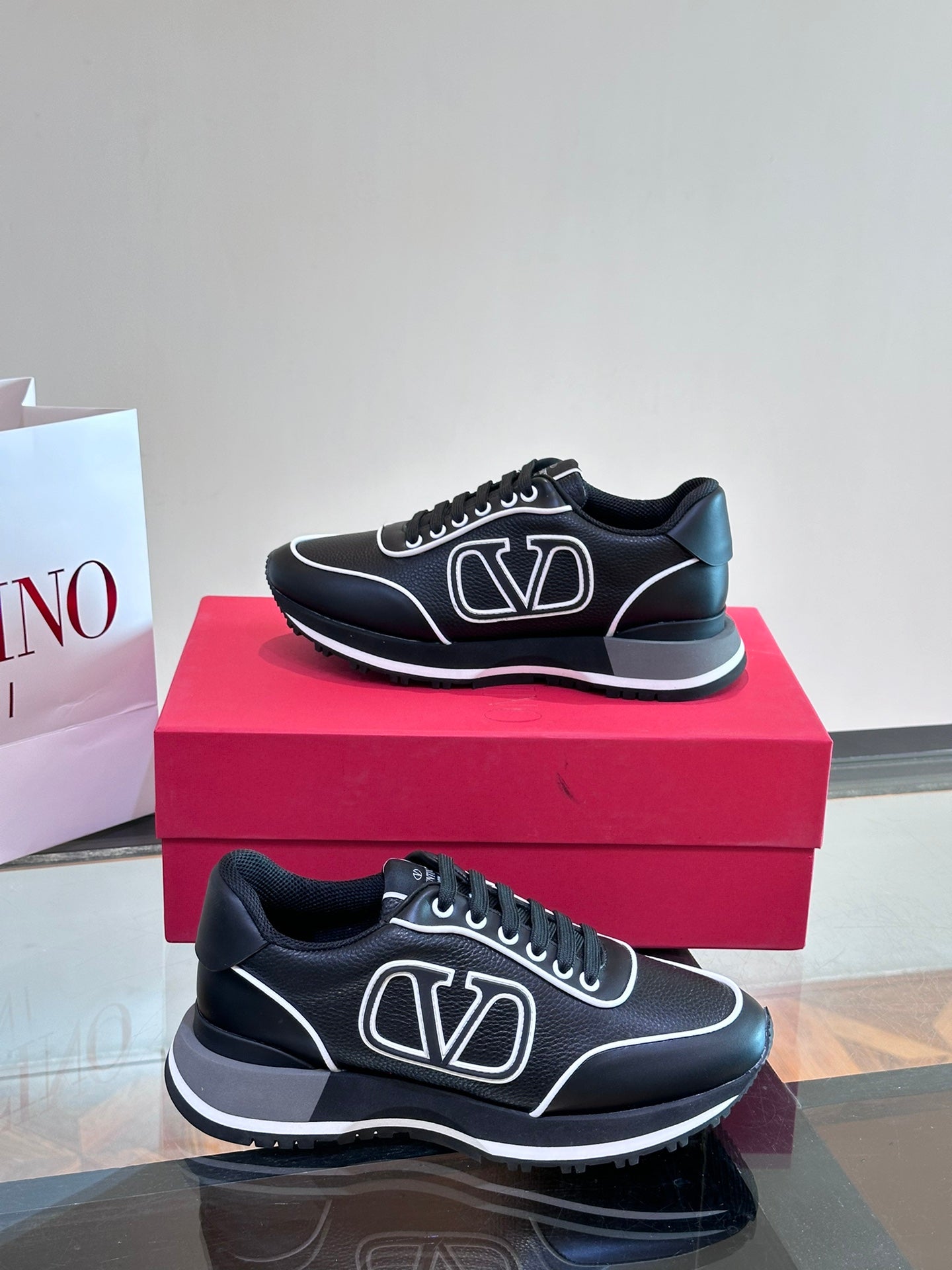 Discover the perfect blend of style and comfort with VALENTIN Men's Casual Sports Shoes. Crafted from durable heavy-duty calfskin, these shoes are designed for versatility, making them an ideal choice for any casual outing. The rubber sole features the iconic VLogo Signature and bold logo detailing, ensuring you step out in style. With a breathable mesh lining, these shoes provide all-day comfort without compromising on fashion. Available in multiple colors and sizes ranging from 38-45, each pair comes packaged in its original box. Elevate your footwear collection today!