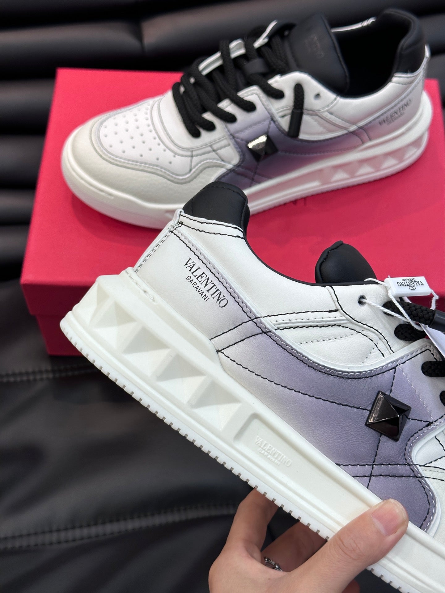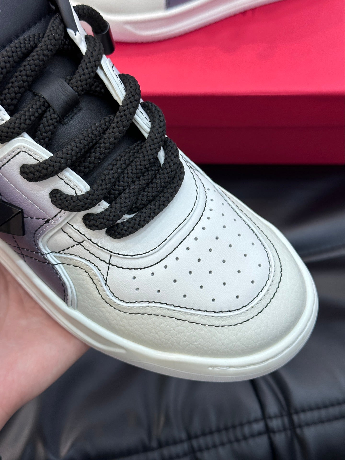 Introducing the Valentin One Stud Thick-Soled Sneakers, a perfect blend of style and comfort. Featuring a minimalist design accentuated by quilted plaid and oversized rivets, these sneakers embody a contemporary punk aesthetic. Crafted from premium leather, their sleek silhouette and smooth lines ensure a sharp and cool appearance.