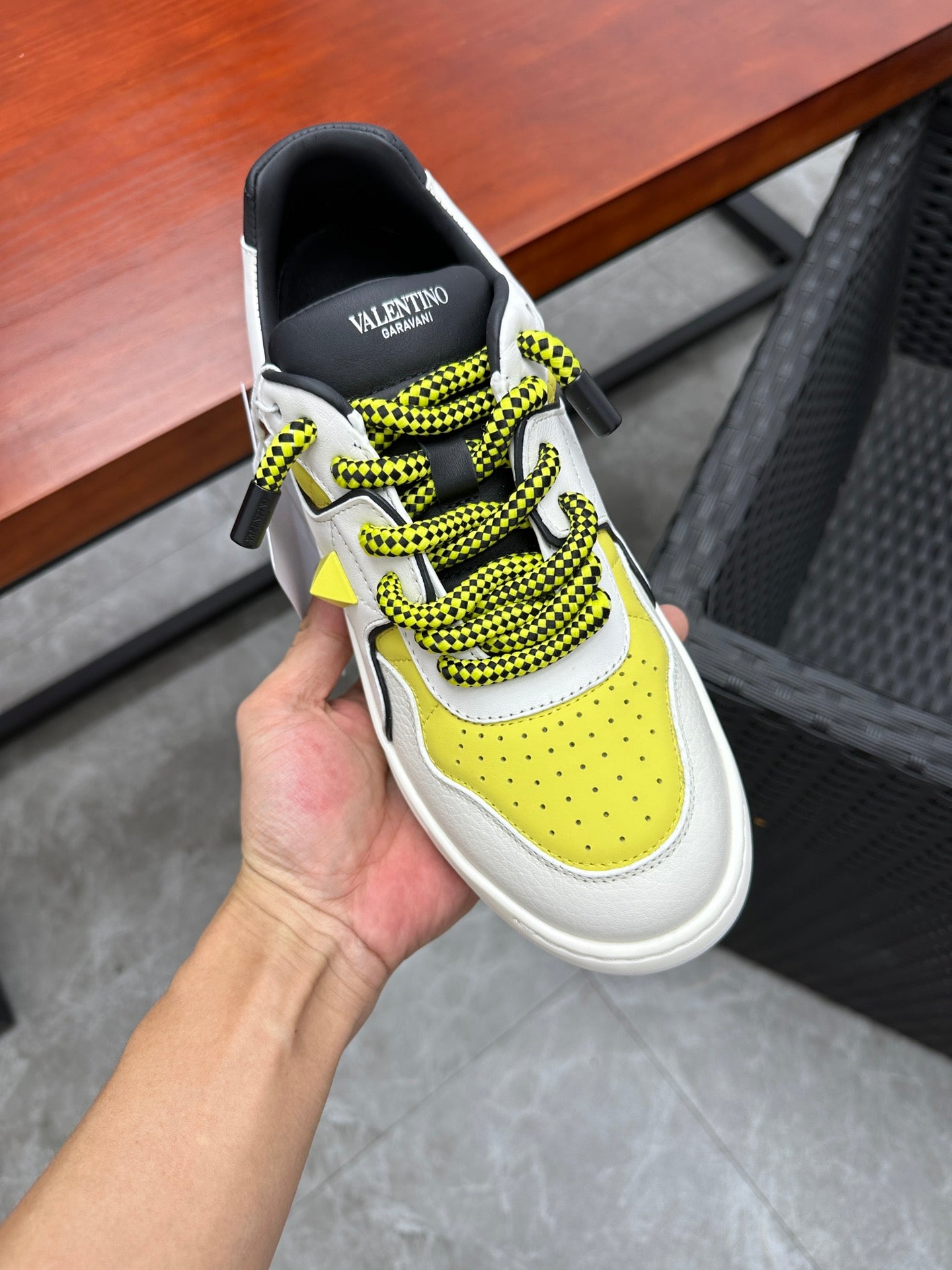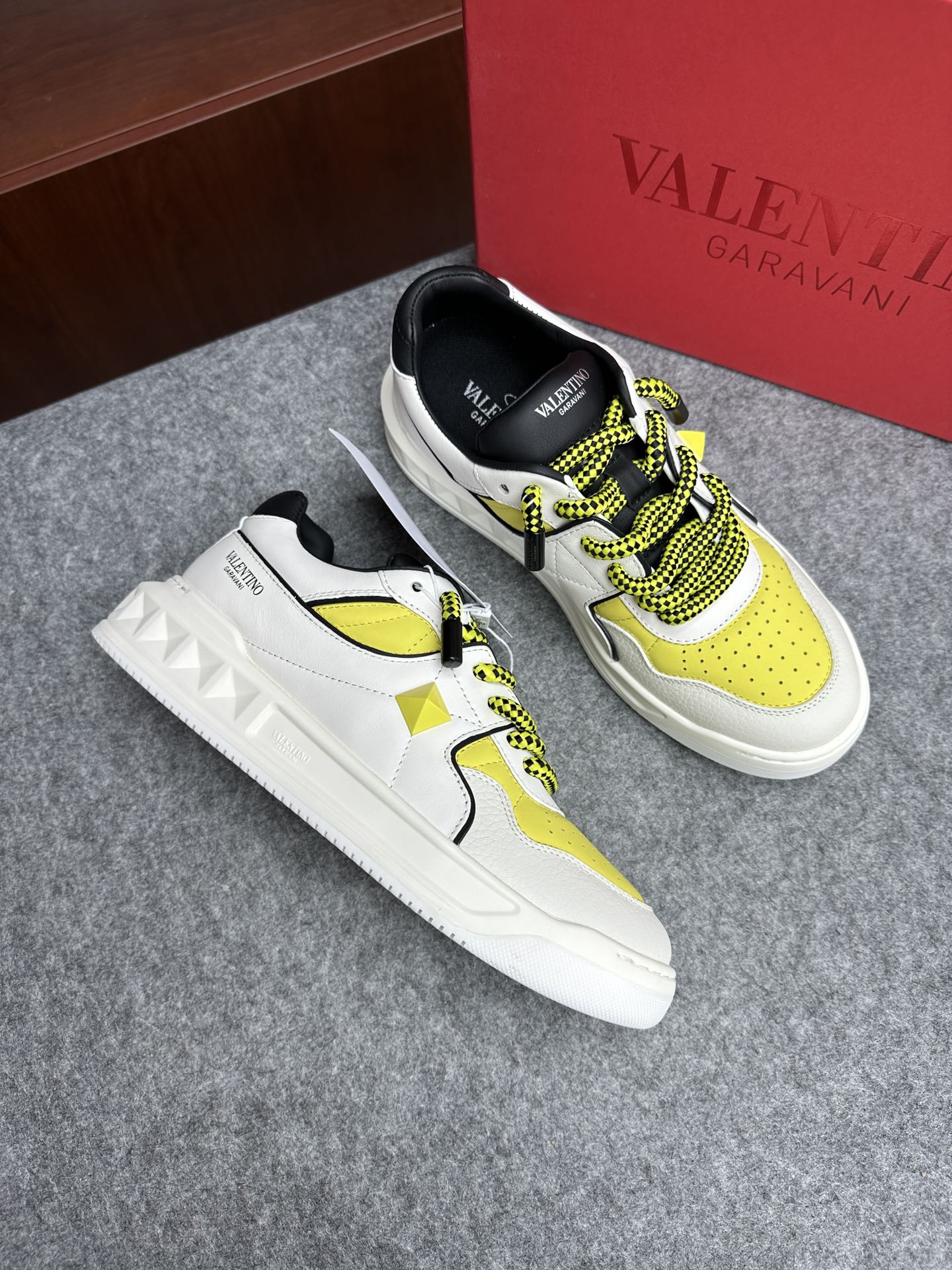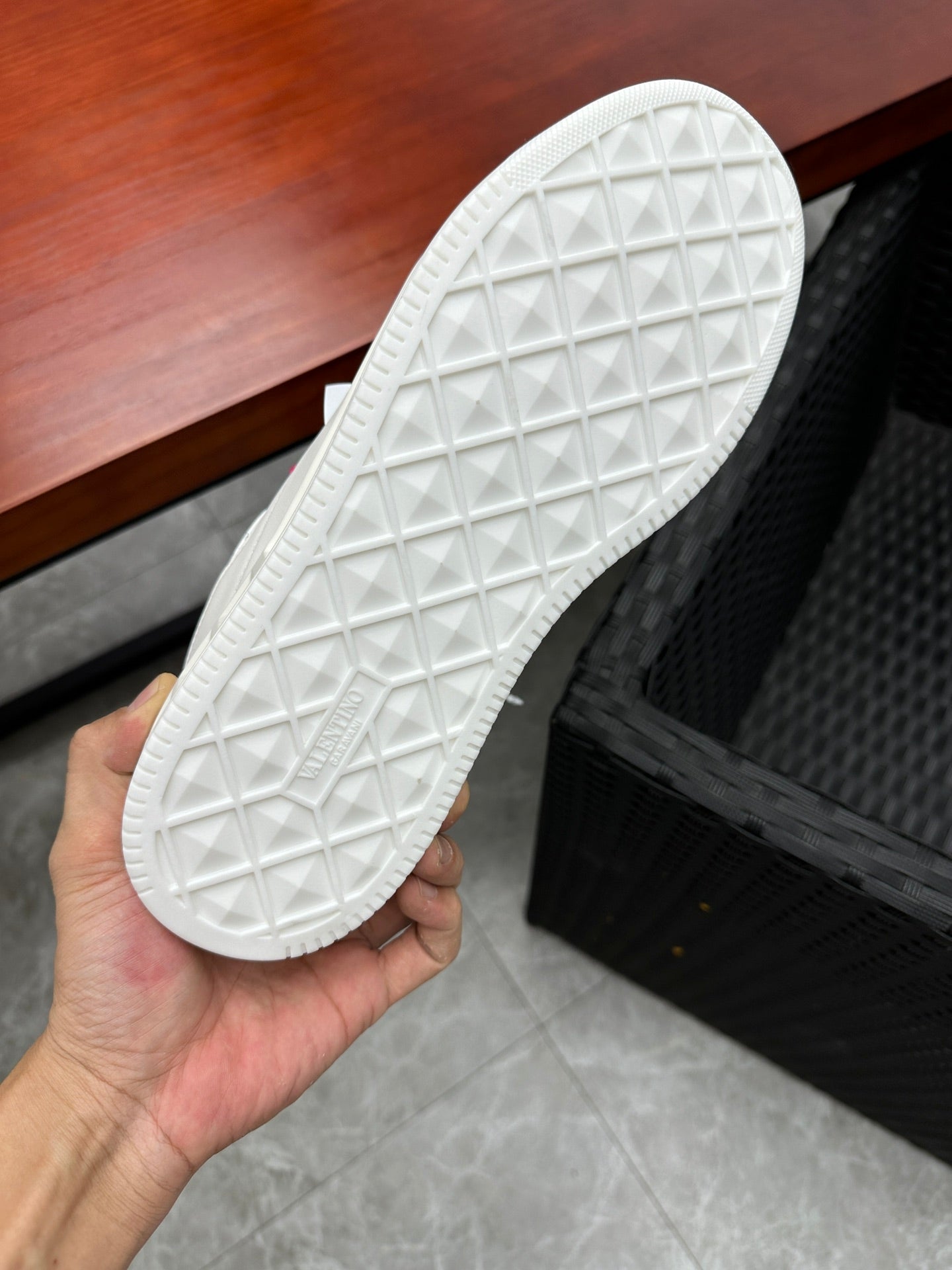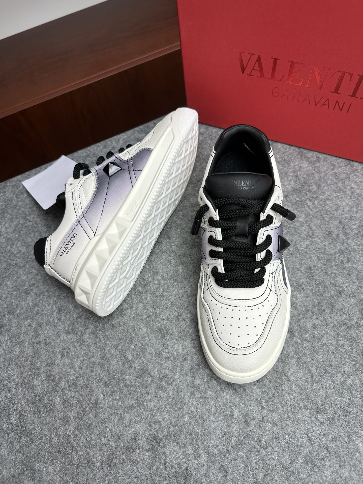 Elevate your footwear collection with the Valentino Garavani ONE STUD low-top calfskin sneakers. Featuring a sleek semi-matte finish, these sneakers boast oversized rivet details that make a bold statement. The heel and tongue are adorned with the iconic Valentino Garavani screen-printed logo, adding a touch of luxury. Designed for comfort and style, the rubber sole is also enhanced with bas-relief oversized rivet details. Available in sizes 38-44, with custom options for size 45. Step out in style with these chic and contemporary sneakers.