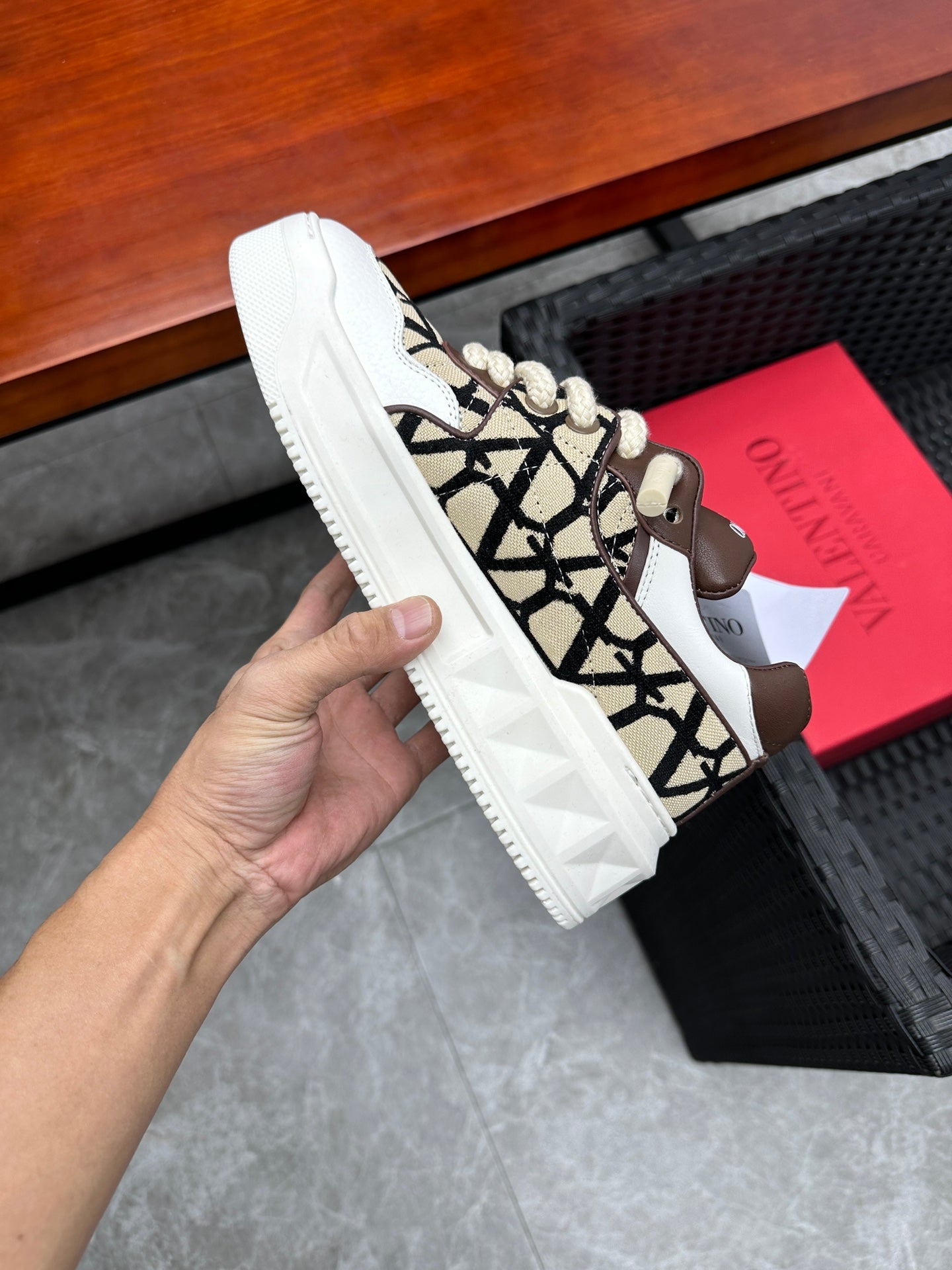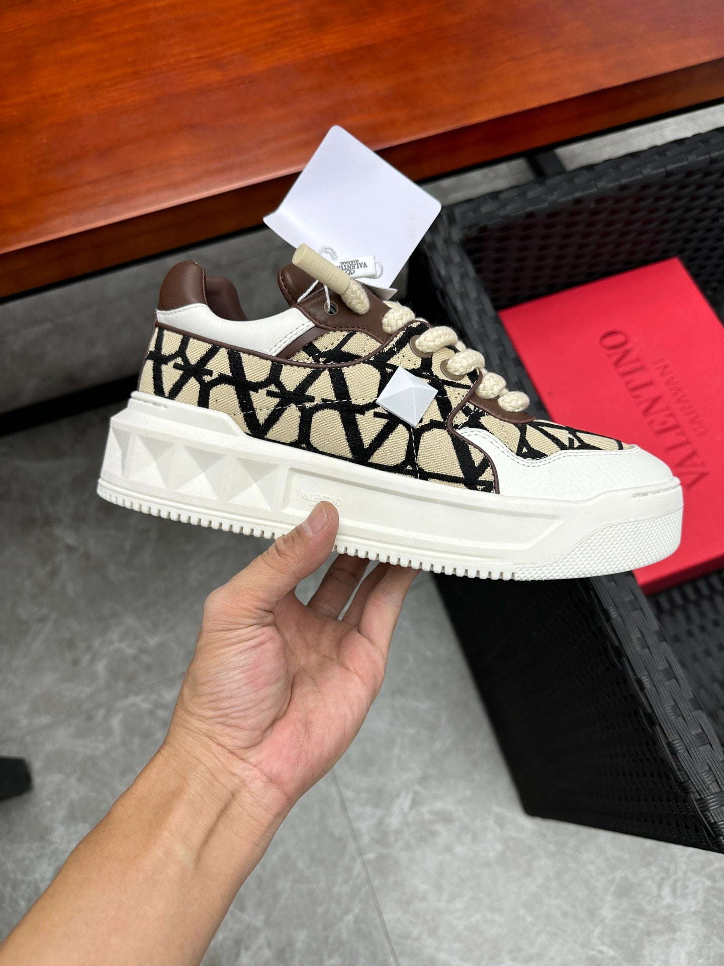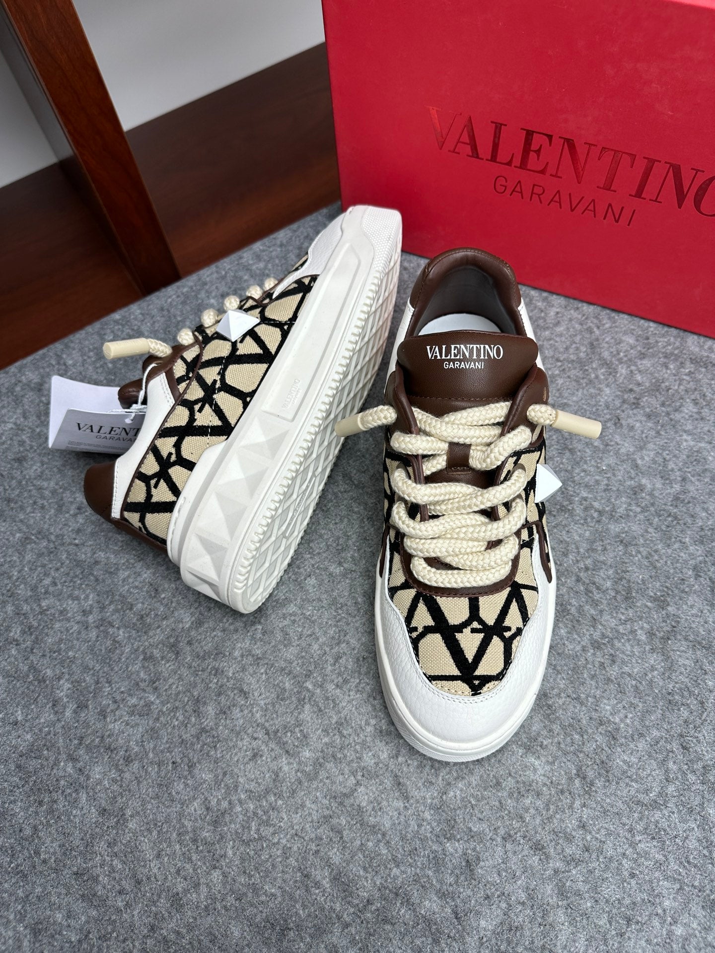 Valentino Garavani ONE STUD Low-Top Sneakers - Premium Calfskin & Jacquard Fabric