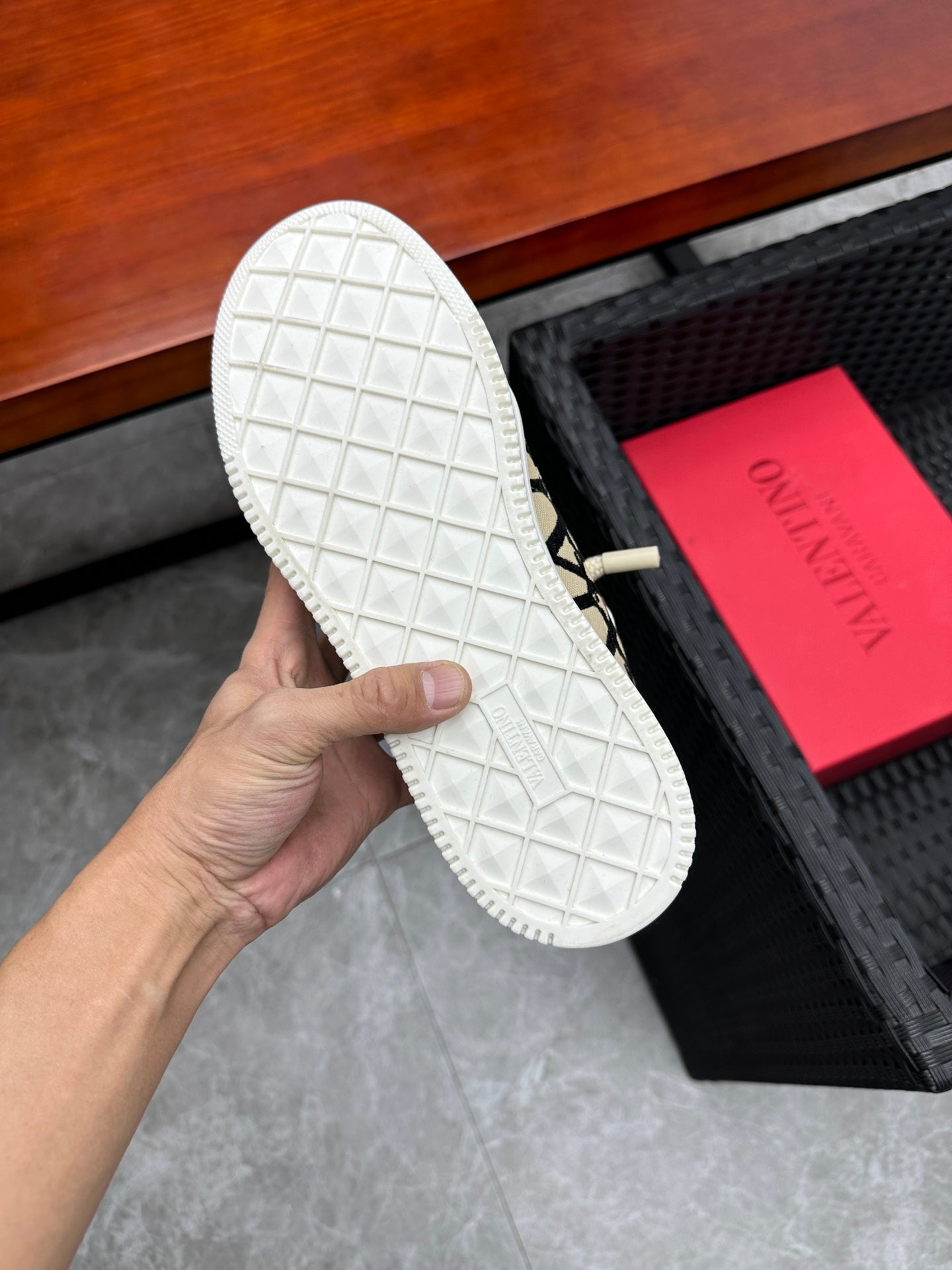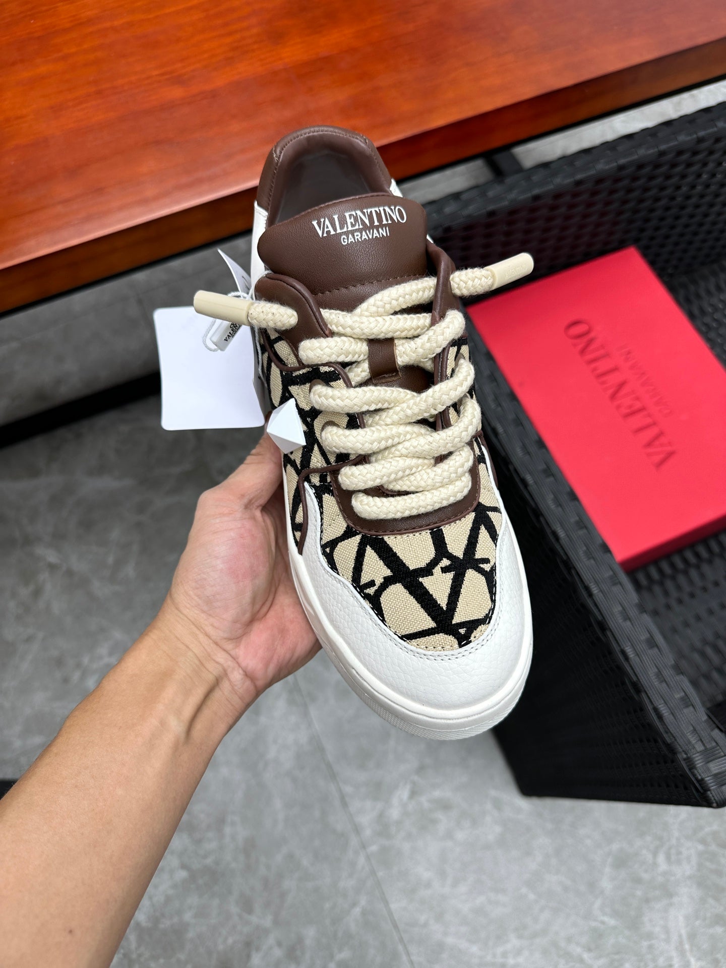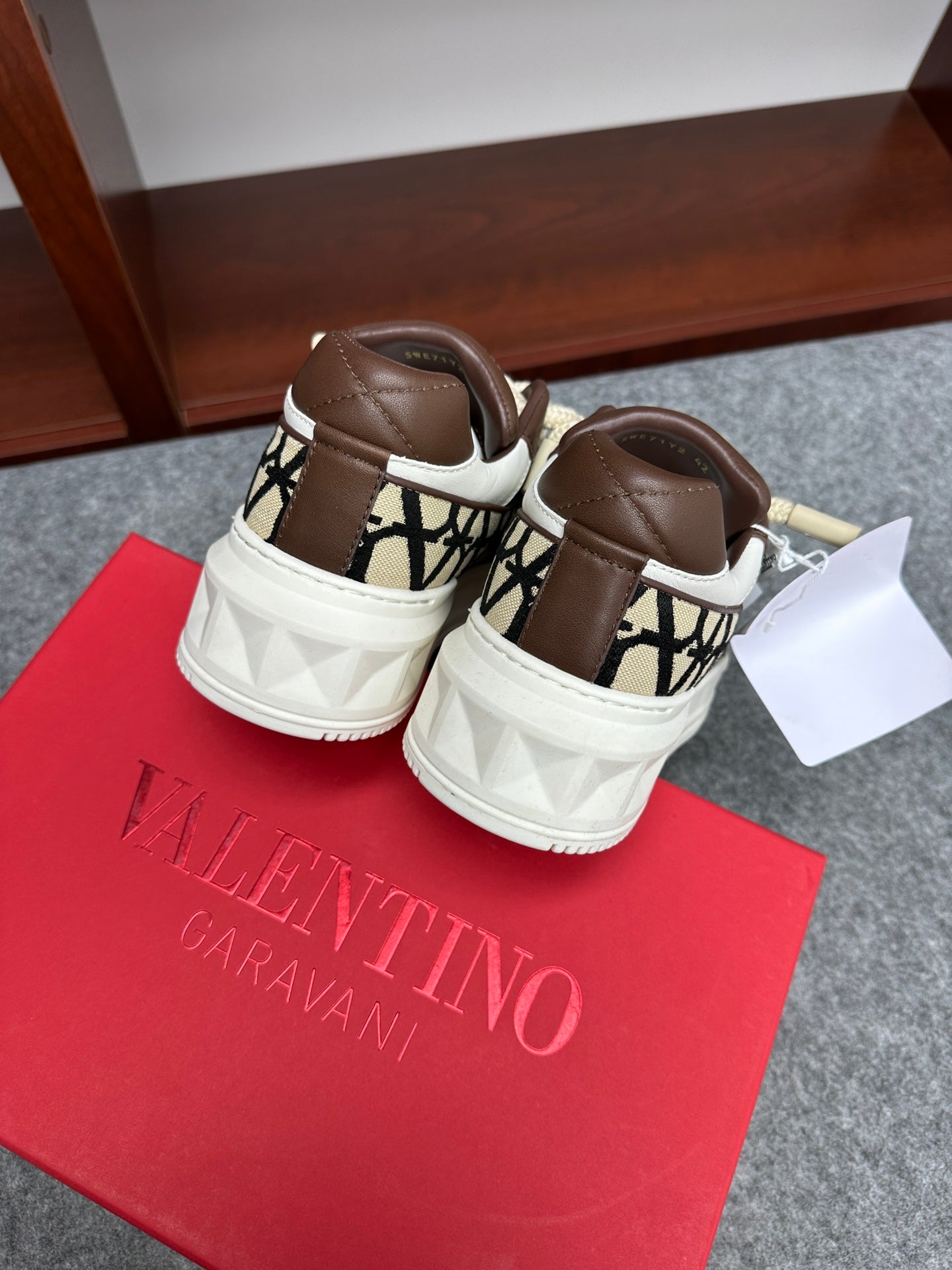 Valentino Garavani ONE STUD Low-Top Sneakers - Premium Calfskin & Jacquard Fabric