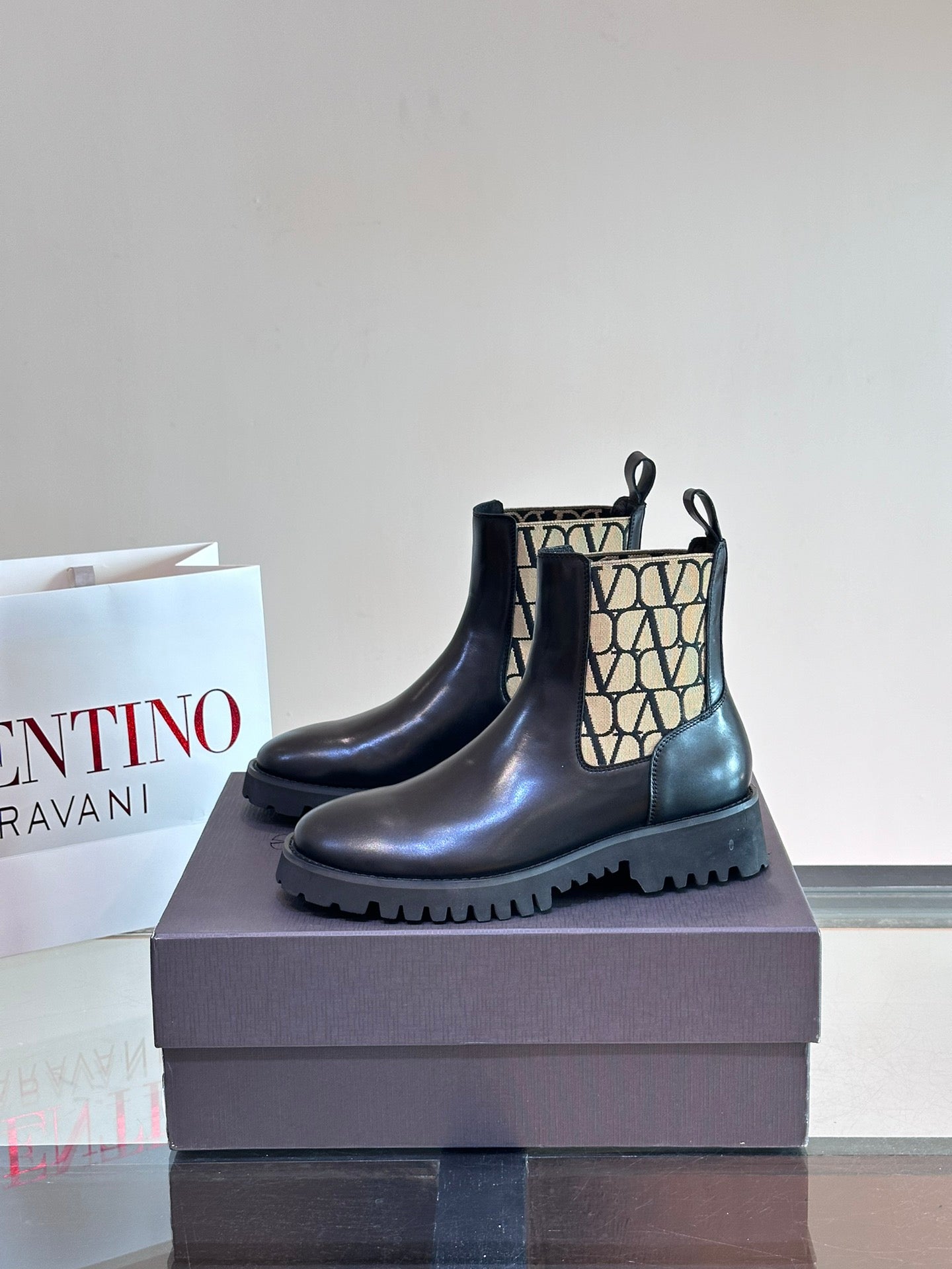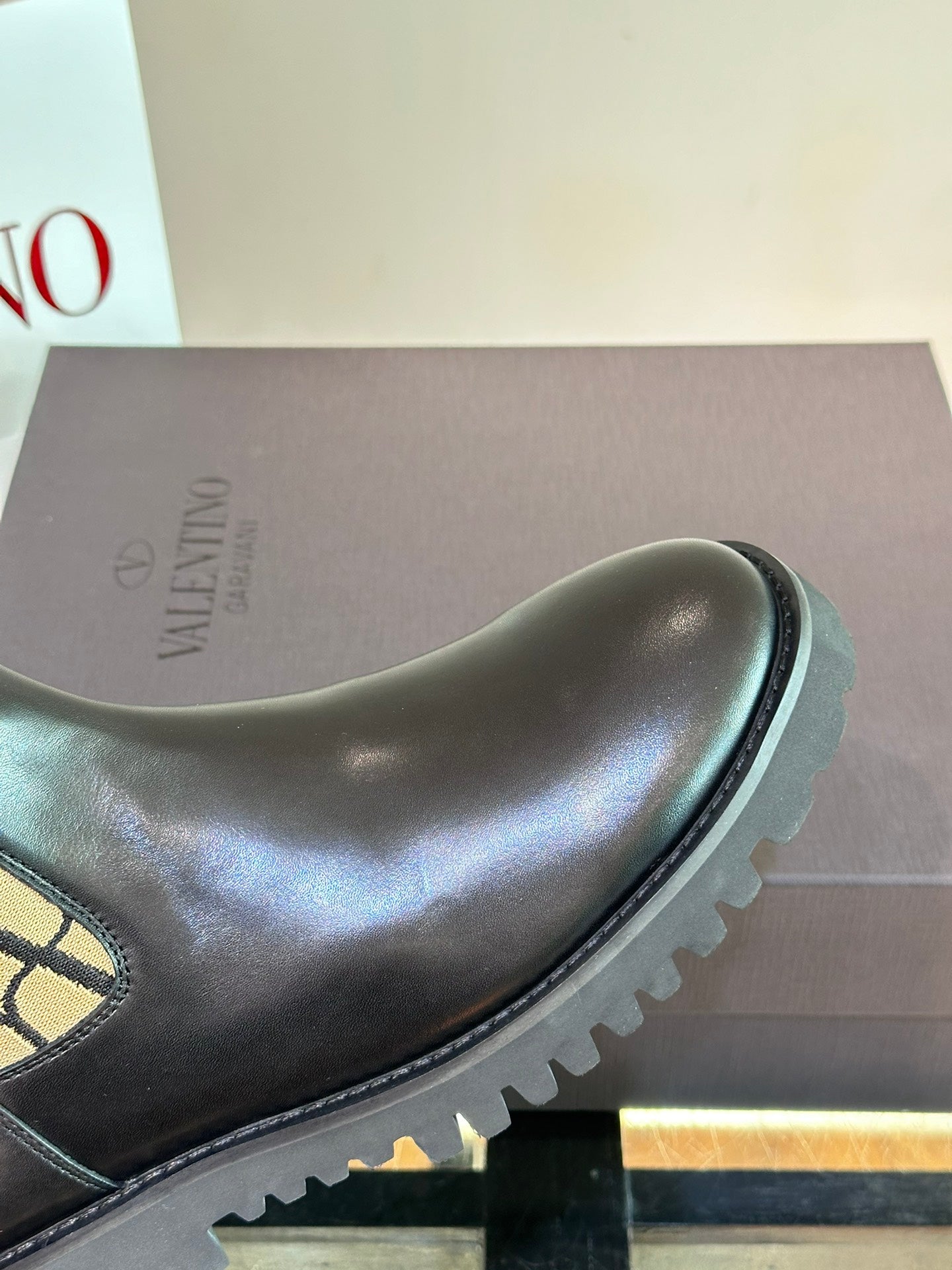 Discover the elegance of Valentino Men's Short Boots, crafted from premium imported cowhide leather. These stylish boots feature a smooth dyed calfskin lining and soft calfskin insoles, ensuring maximum comfort and breathability for all-day wear. Each pair comes complete with its original packaging, showcasing the meticulous attention to detail and high-quality construction. Available in sizes 39-44, with custom options for sizes 38, 45, and 46. Step into luxury with Valentino's impeccable craftsmanship.