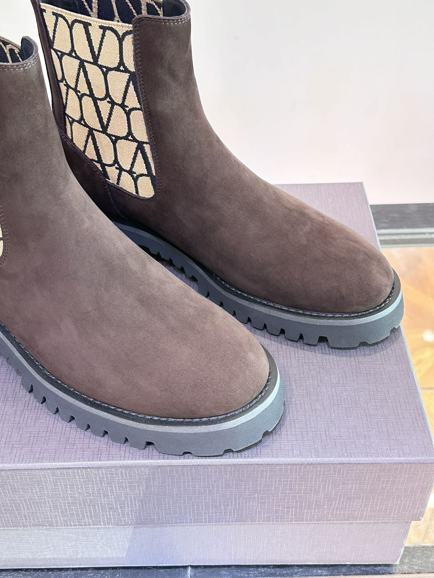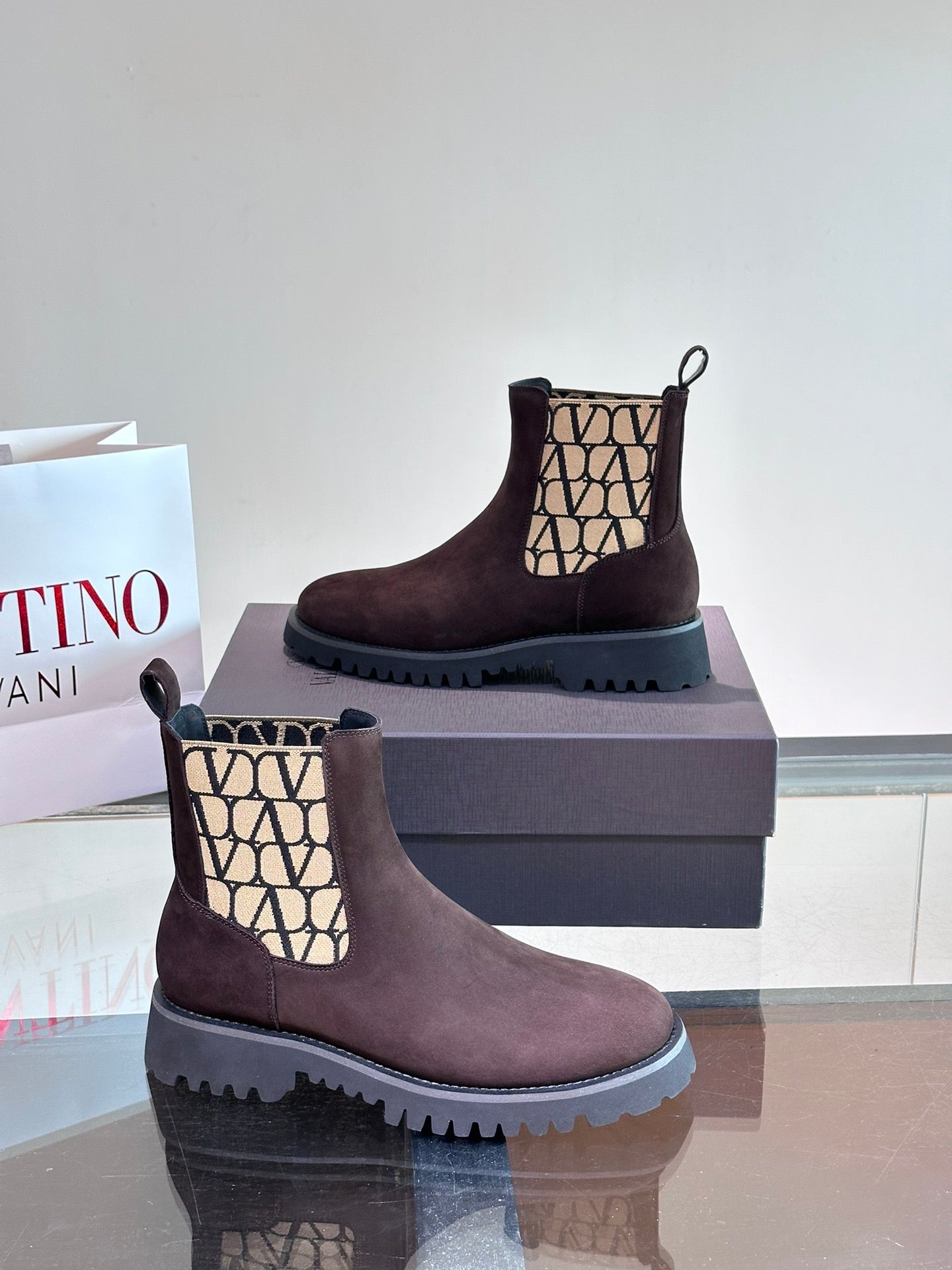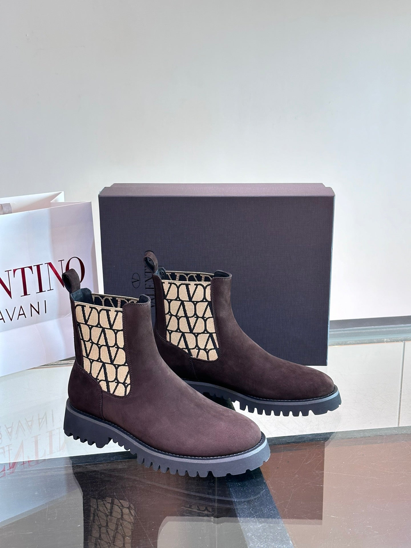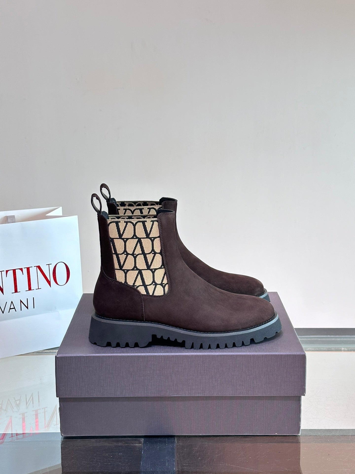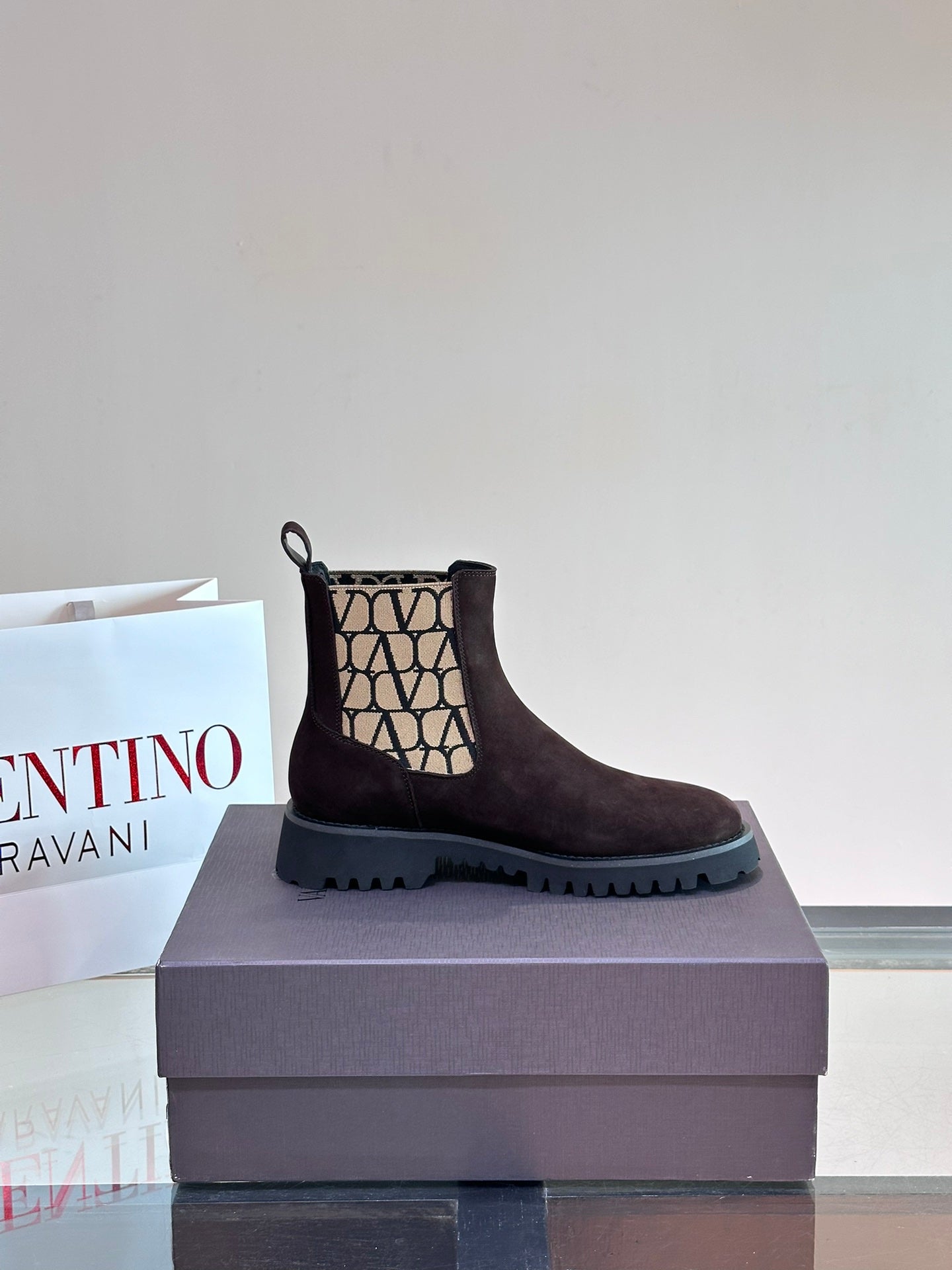 Step into elegance with VALENTINO’s new men's short boots. Crafted from premium imported cowhide leather, these boots feature a dyed calfskin lining and soft calfskin insoles, ensuring comfort and breathability for all-day wear. Each pair comes beautifully packaged in its original box, showcasing the attention to detail and superior quality that VALENTINO is known for. Available in European sizes 39-44, with customization options for sizes 38, 45, and 46. Upgrade your footwear collection with these stylish and sophisticated short boots.