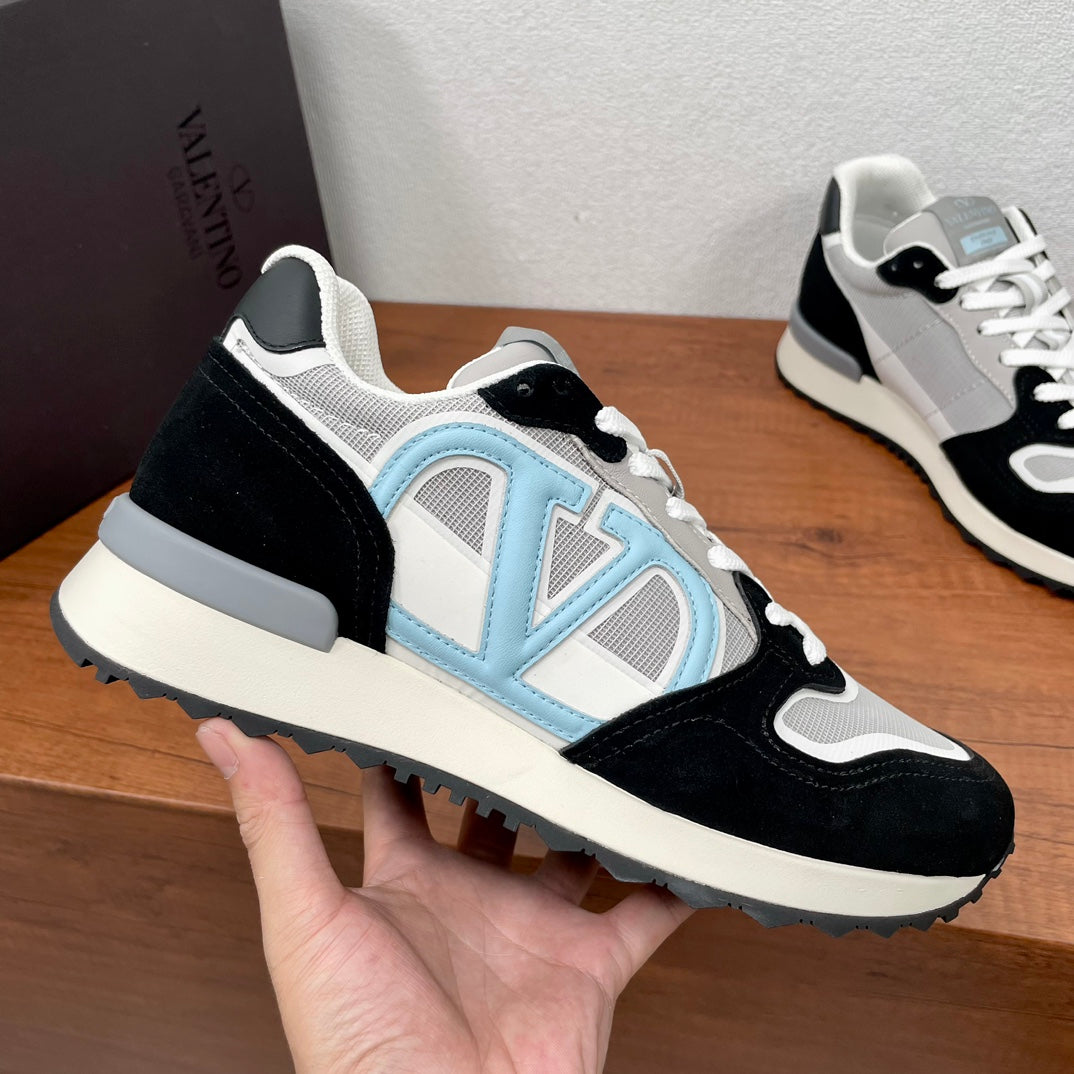 Introducing the Valentino VLOGO Pace Men's Low-Top Sneakers, a perfect blend of style and comfort. Crafted with a unique multi-material design, these sneakers feature contrasting splicing of premium cowhide suede, customer-supplied mesh, and calfskin.