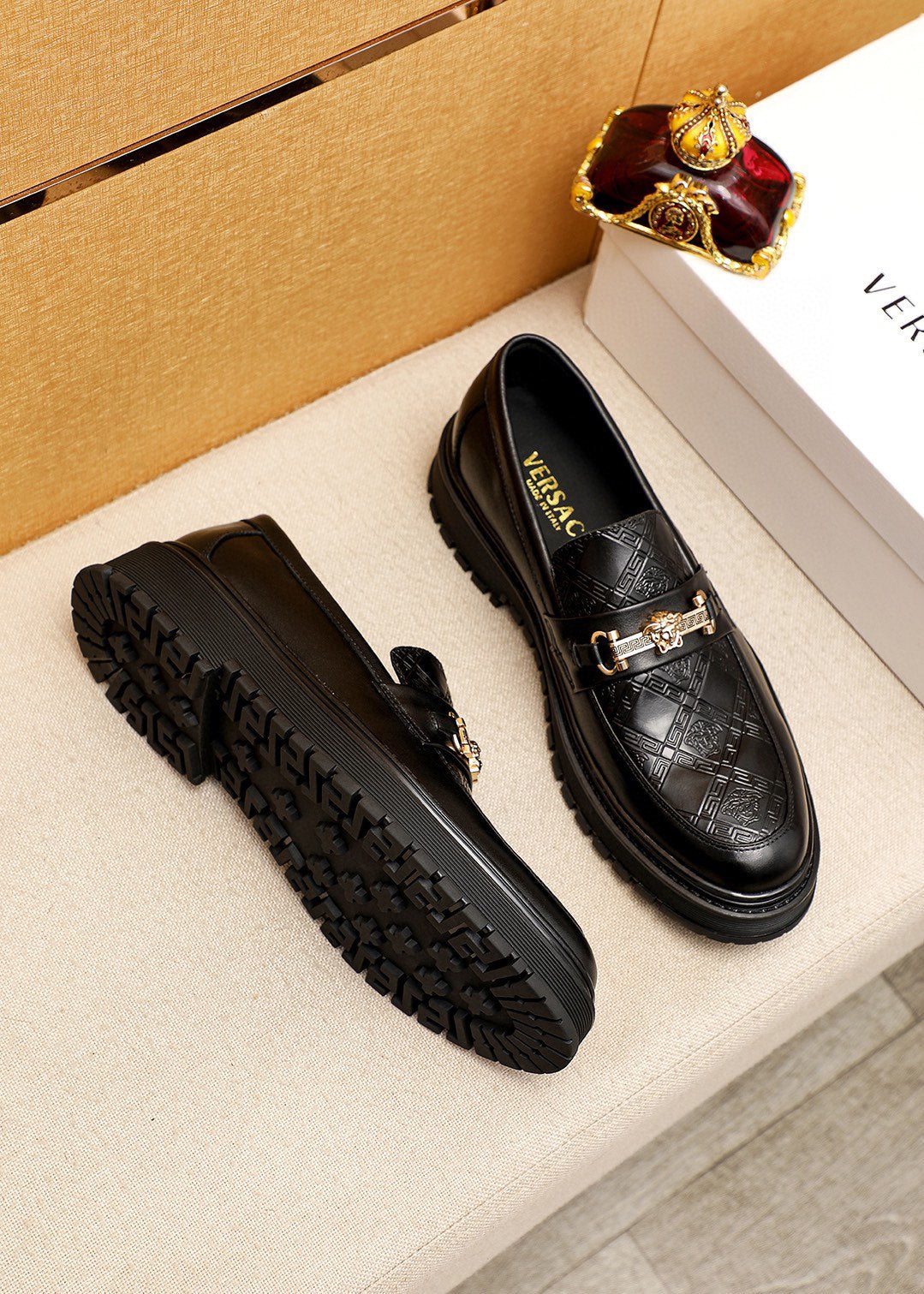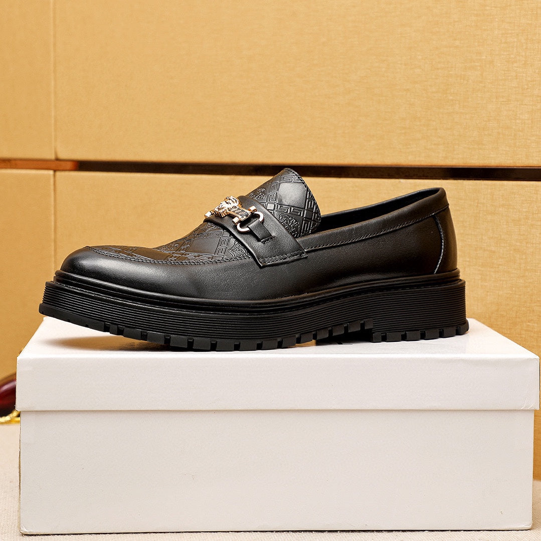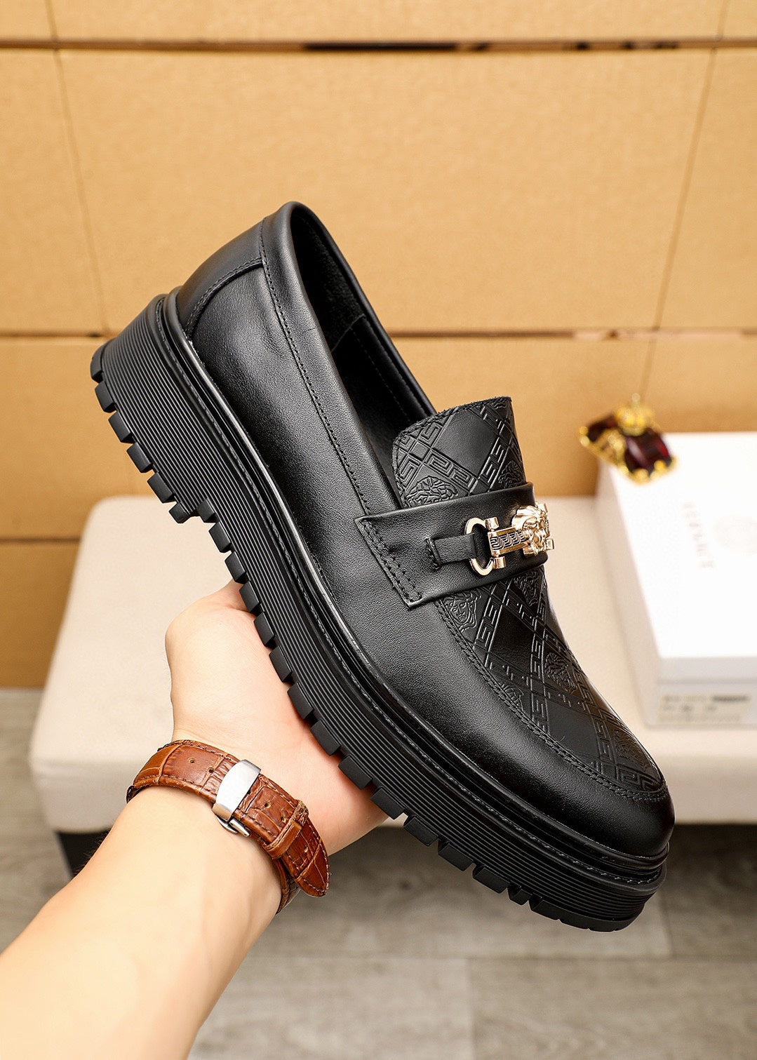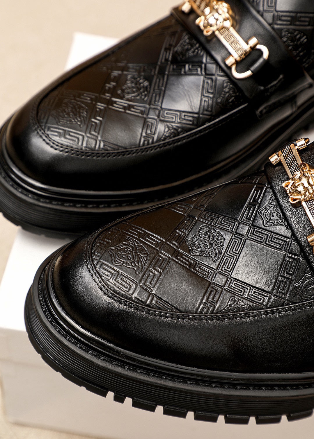Elevate your footwear collection with the Versace Casual Leather Shoes, expertly crafted from premium first-layer calfskin embossed leather. The luxurious hardware buckle adds a touch of sophistication, while the imported water-dyed cowhide leather lining ensures lasting comfort. Designed for a striking three-dimensional visual effect and paired with a durable rubber outsole, these shoes are perfect for both casual outings and stylish occasions. Available in sizes 38-44, with customization options for sizes 45 and 46. Choose from one elegant color option to complement your wardrobe. Step out in confidence with Versace.
