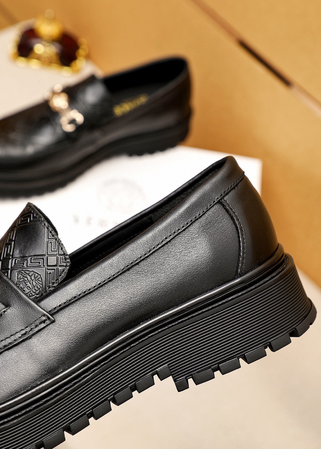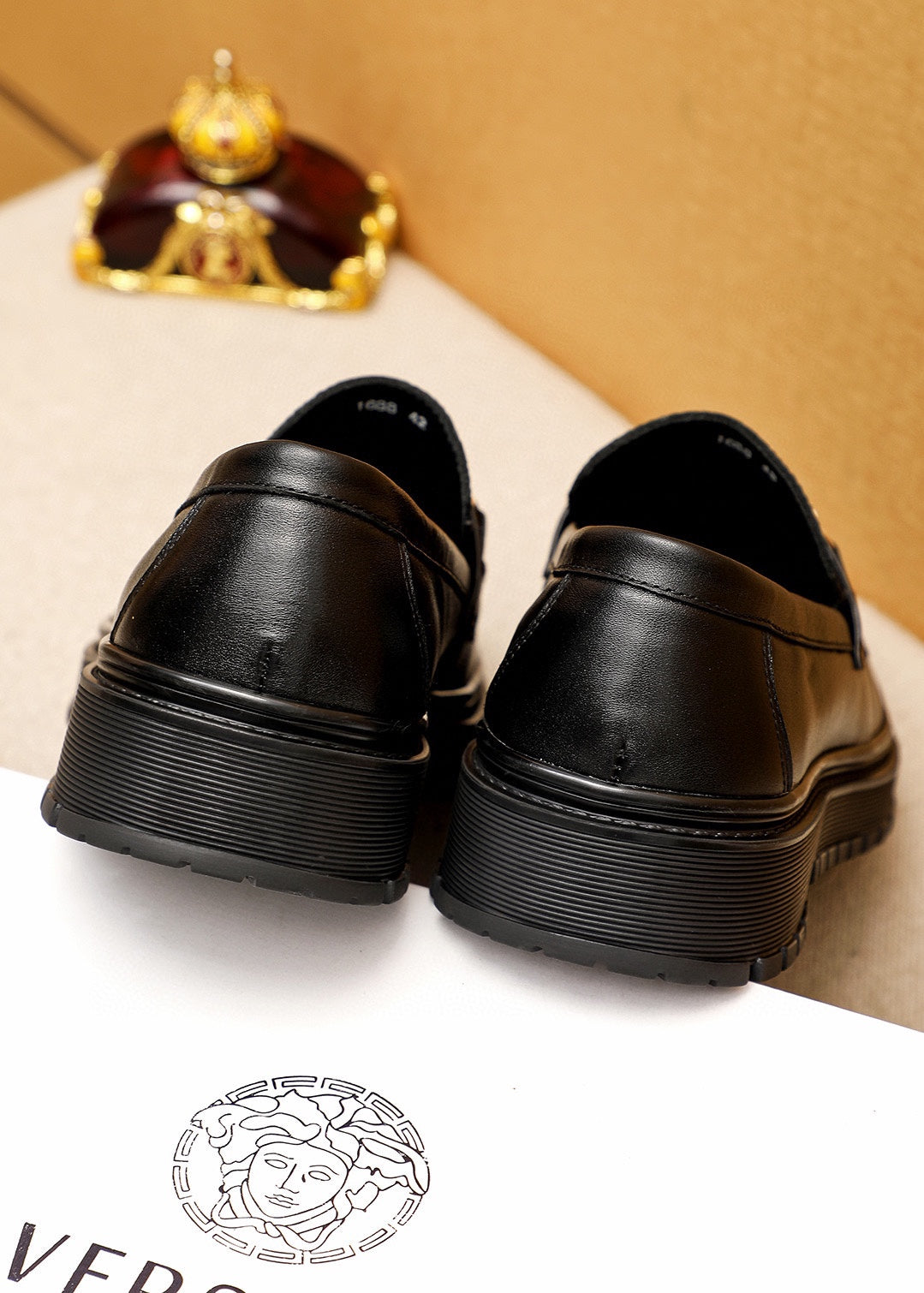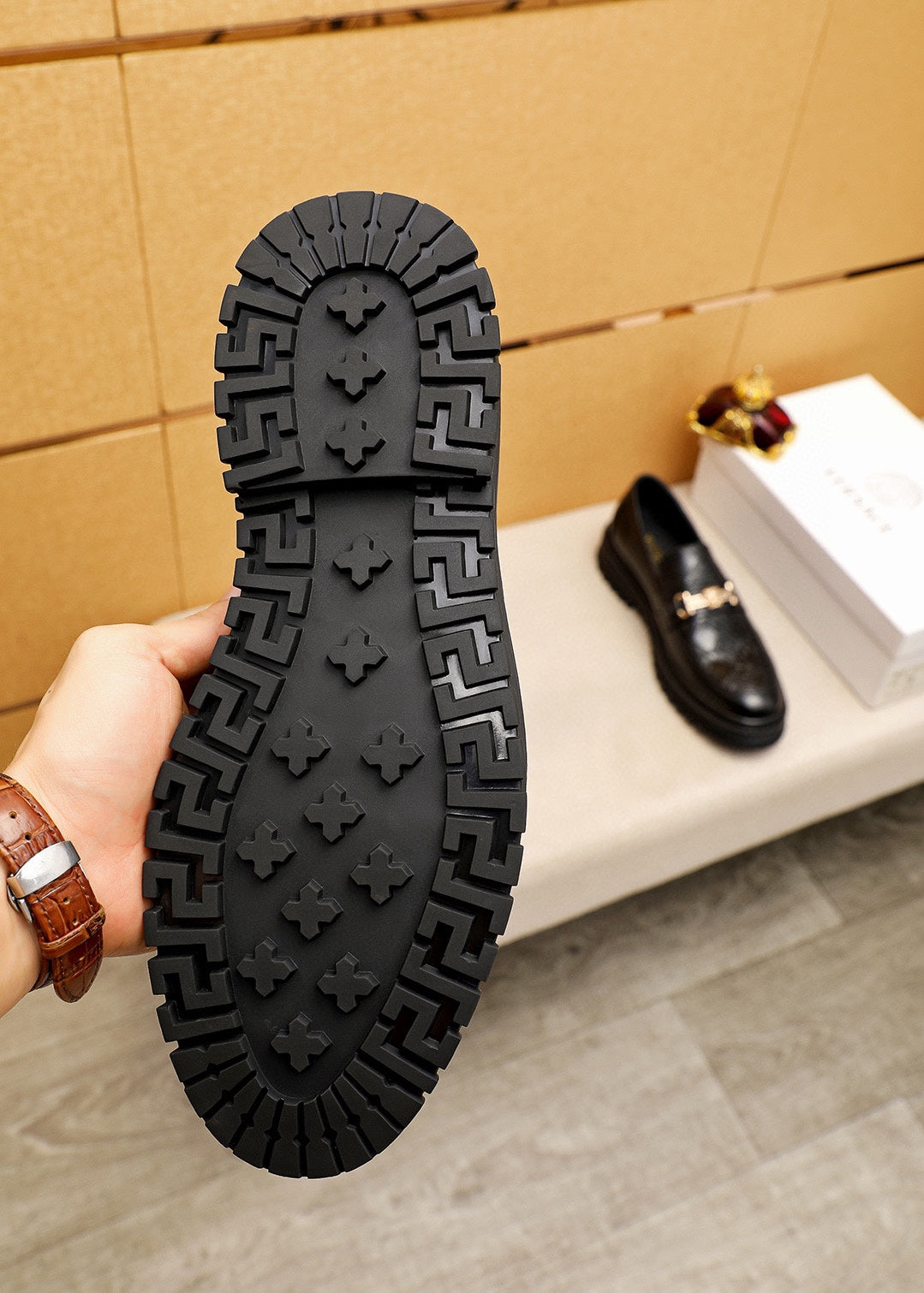 Elevate your footwear collection with the Versace Casual Leather Shoes, expertly crafted from premium first-layer calfskin embossed leather. The luxurious hardware buckle adds a touch of sophistication, while the imported water-dyed cowhide leather lining ensures lasting comfort. Designed for a striking three-dimensional visual effect and paired with a durable rubber outsole, these shoes are perfect for both casual outings and stylish occasions. Available in sizes 38-44, with customization options for sizes 45 and 46. Choose from one elegant color option to complement your wardrobe. Step out in confidence with Versace.