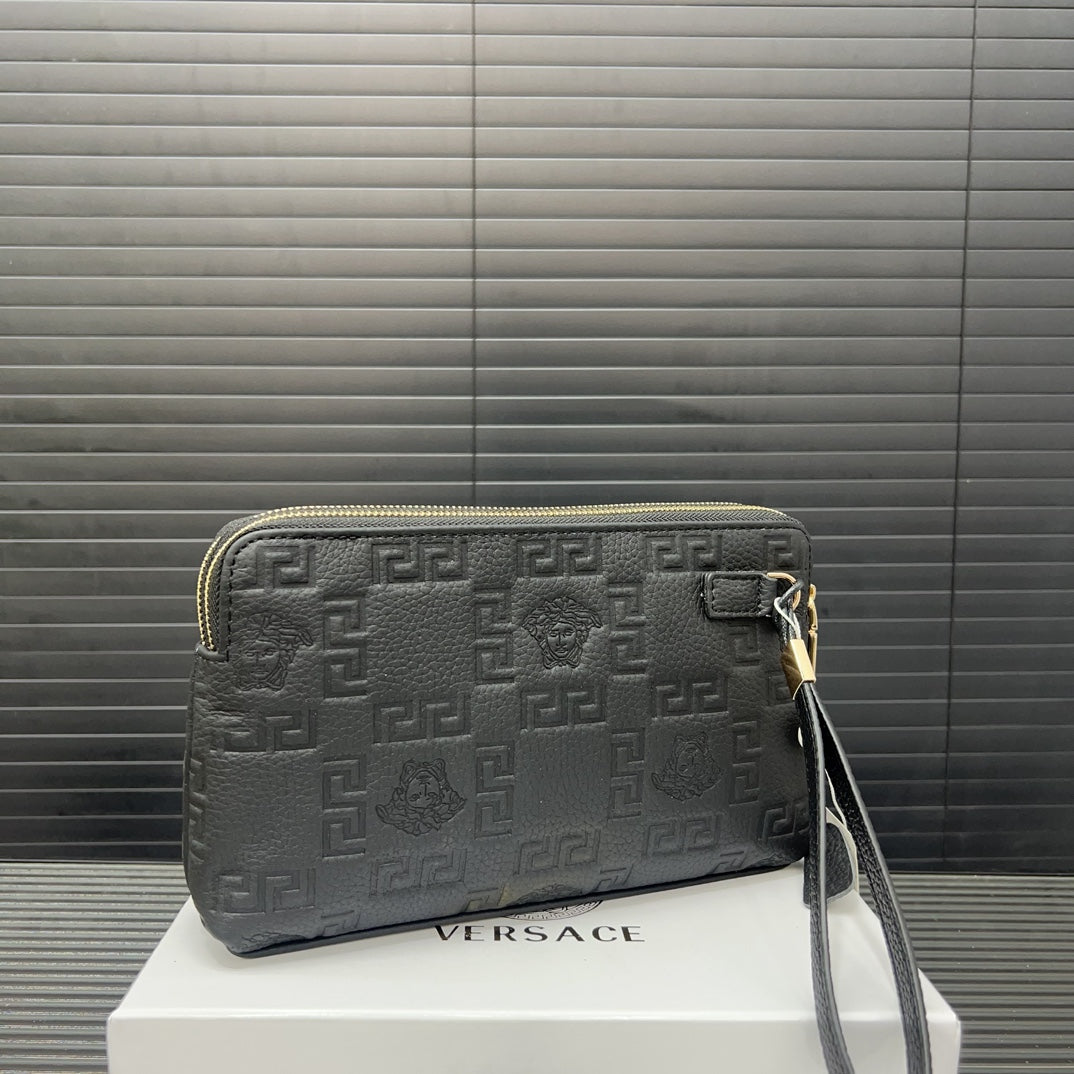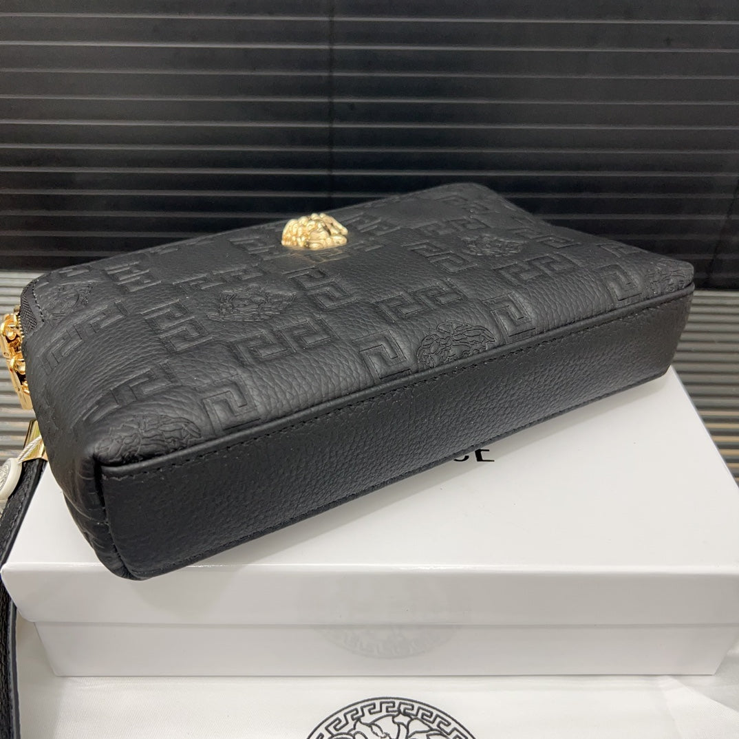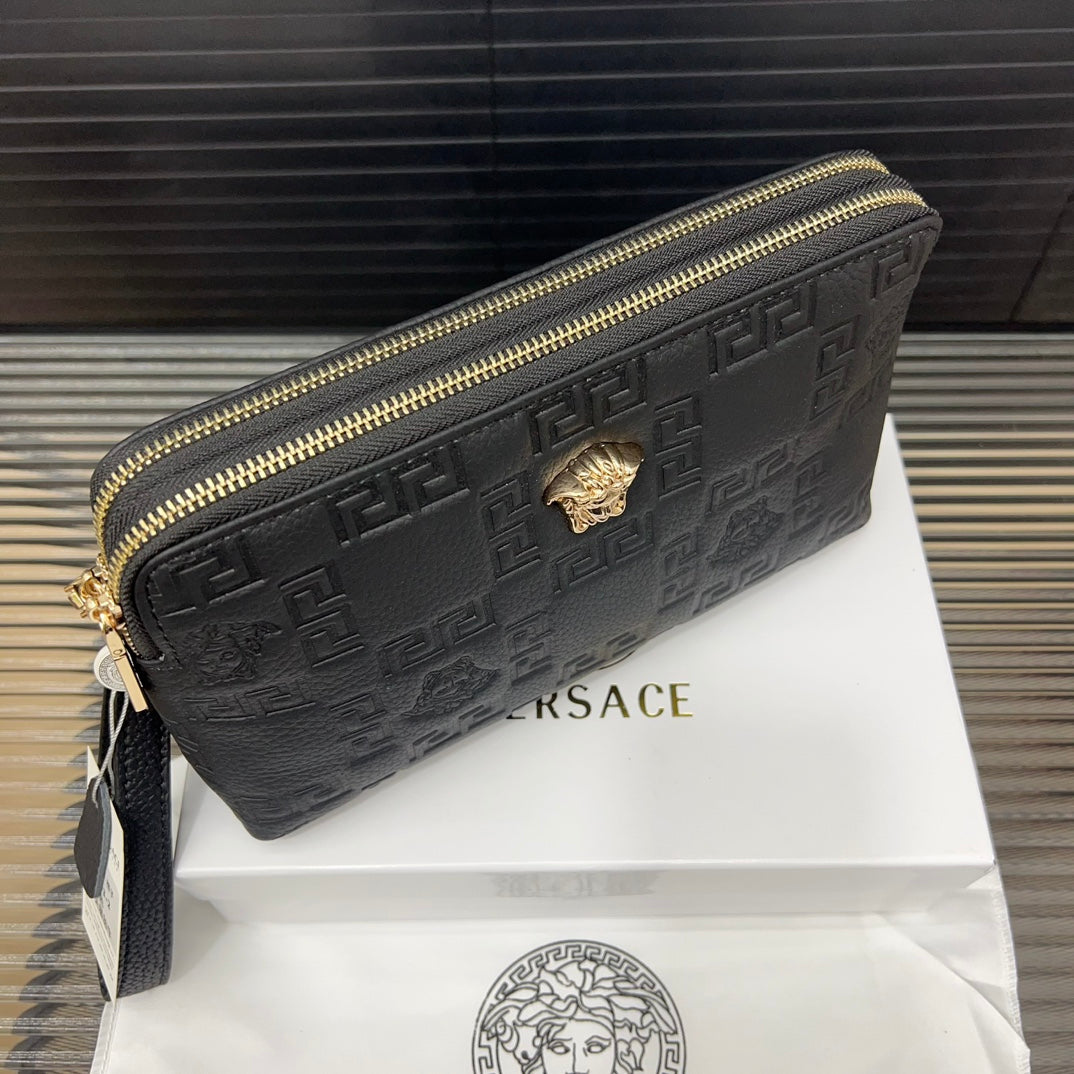 Versace Double Zipper Cowhide Clutch Bag - Multi-Functional Men's Wallet