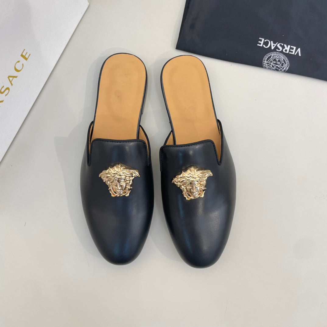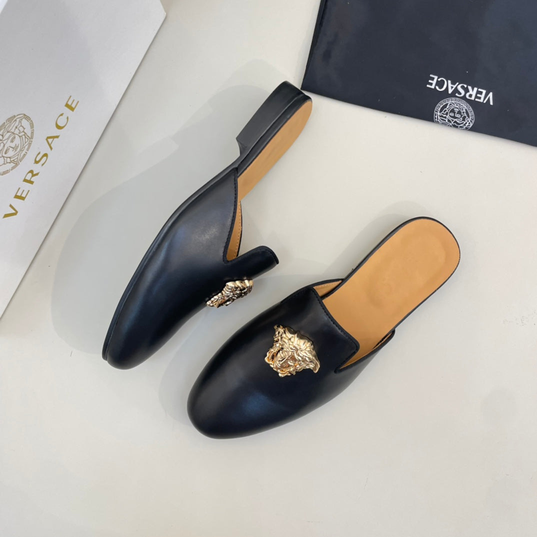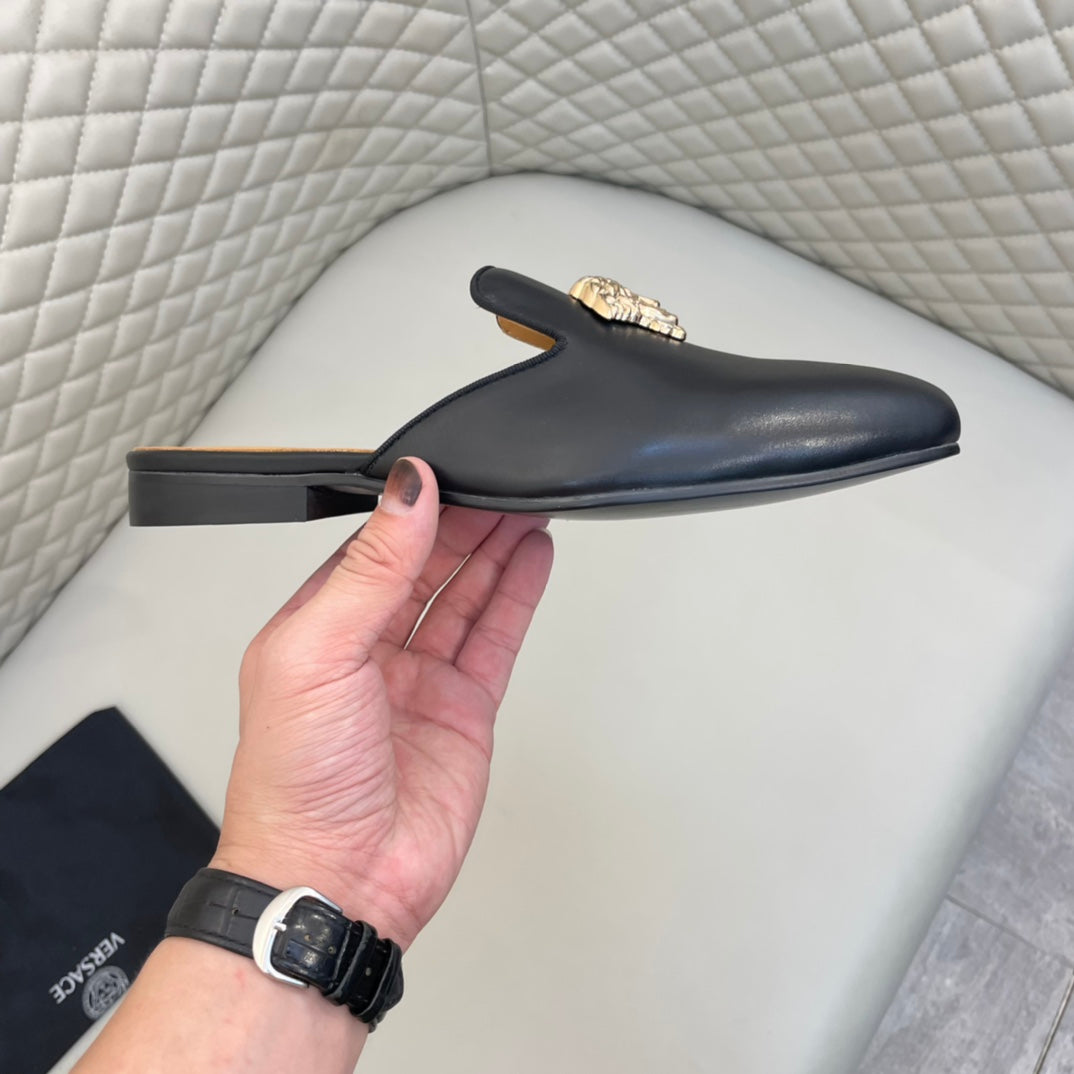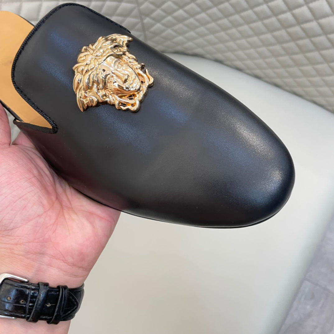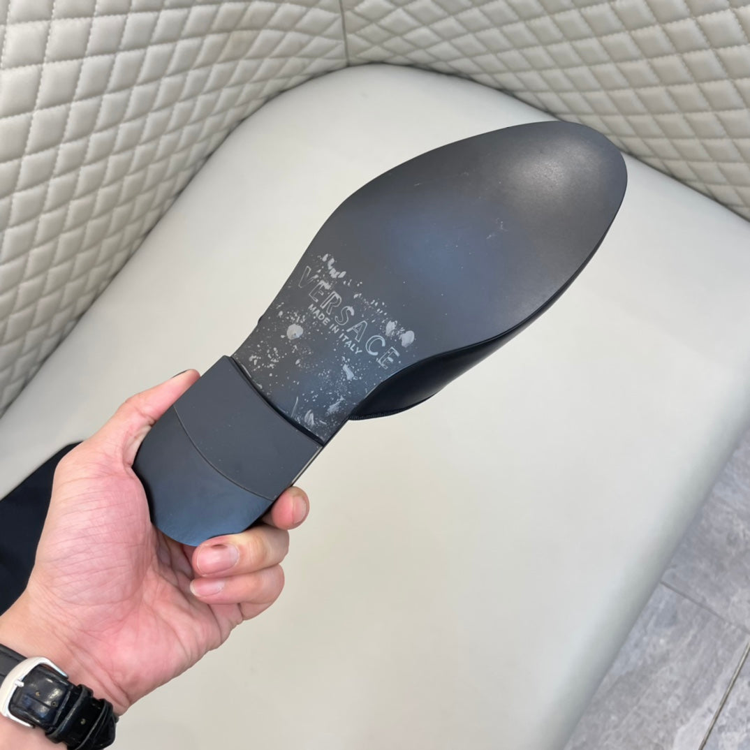 Elevate your wardrobe with these premium Versace half-pants. Crafted from imported cowhide leather and lined with luxurious sheepskin, these stylish pants combine comfort and sophistication. Designed for sizes 38-44, with customized options available up to size 45. Featuring an original outsole, these half-pants are perfect for any fashionable occasion. Make a statement with Versace.